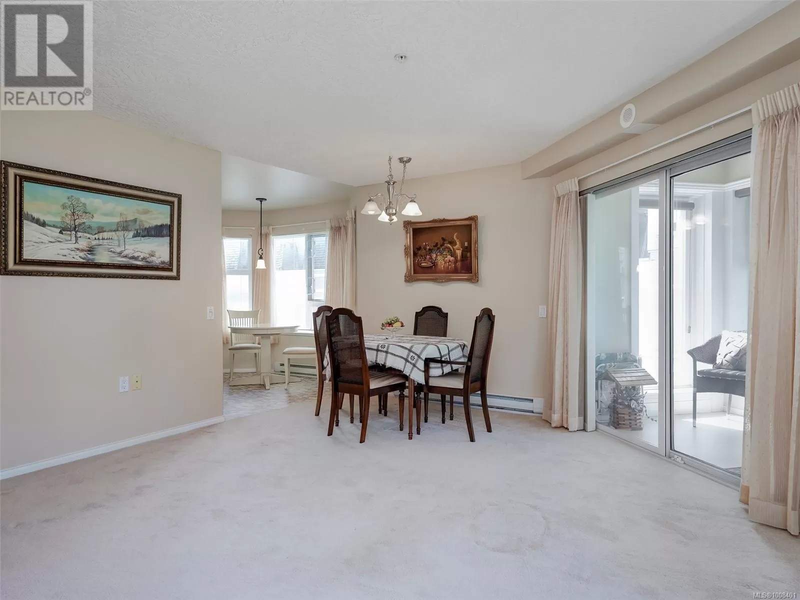Welcome to this lovely South facing open floor plan which is wheelchair friendly with extra wide doors and a spacious layout. Features include in-suite laundry, spacious Primary as well as a second bedroom,entertainment size living room and Dining. Bright eat-in kitchen with plenty of cabinets and an Enclosed sun room to enjoy year round with access to private sunny terrace! .The complex offers a guest suite, exercise rm, hobby & game rm with pool table..i Pets are allowed,55+ and all in a very popular & friendly building.Close to shops medical, banks & transportation.Strata fees include Hot water,basic phone,internet and cable. (id:27476)