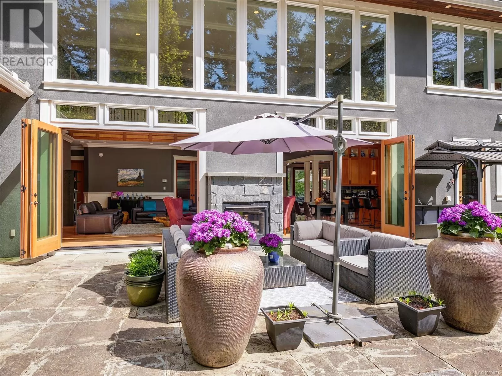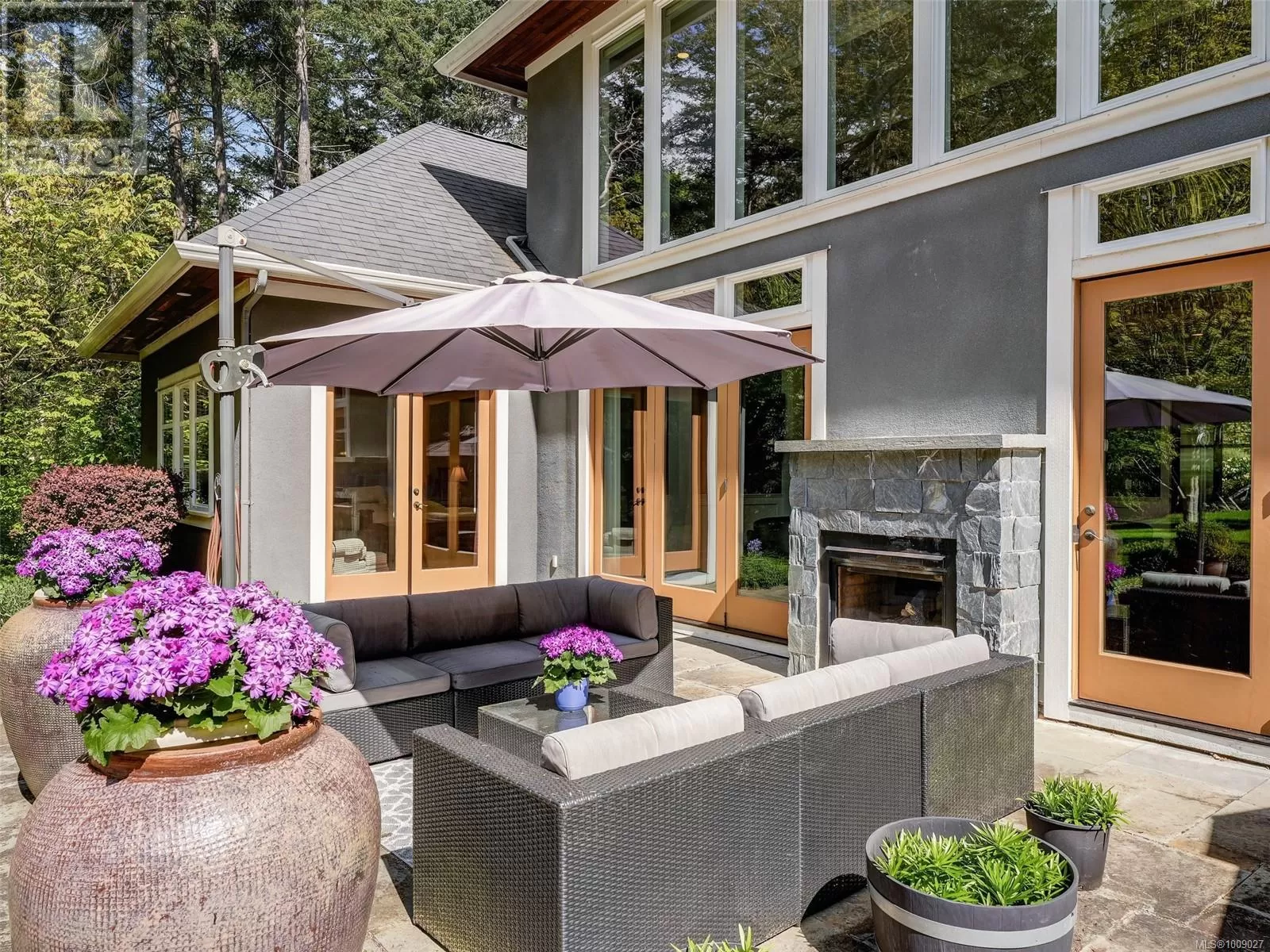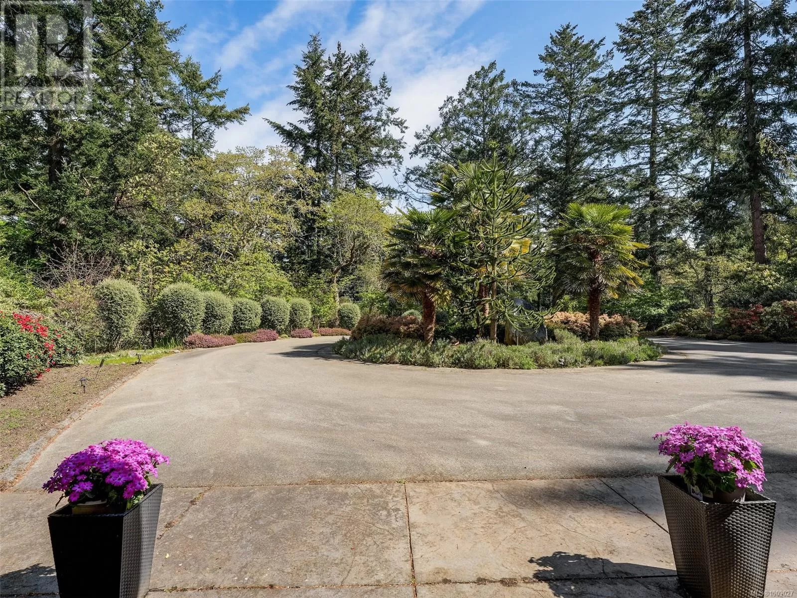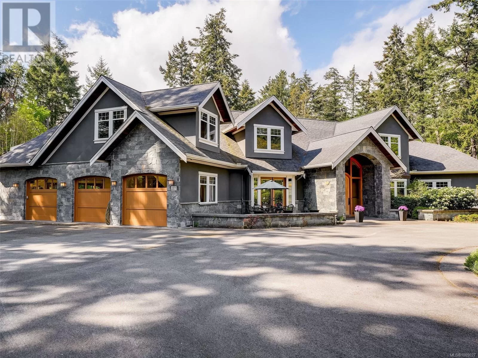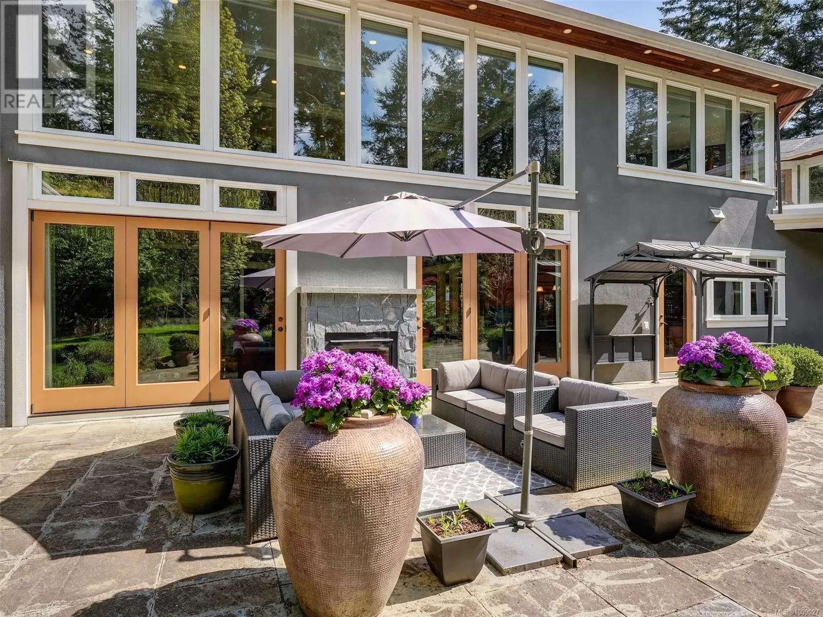 Tucked away in the sought-after Queenswood neighbourhood, this custom-built home offers a rare blend of luxury, privacy, and natural beauty. Built in 2012 with steel beam construction designed to withstand seismic activity, it combines exceptional style, comfort, and peace of mind. Connected to municipal water, sewer, and natural gas, itâs a true modern retreat. Set on a sun-drenched, fully fenced 1.6-acre estate, the property offers privacy amidst mature landscaping and lush, seasonal gardens. Whether enjoying a quiet morning or hosting gatherings, the setting is magical. Inside, soaring 20-foot ceilings and accordion-style glass doors in the great room invite the outdoors in, leading to a 2,300-square-foot terrace with an indoor/outdoor fireplaceâideal for seamless living. The gourmet kitchen, with a spacious eating bar and walk-in pantry, opens to the formal dining and living areas, all featuring exquisite custom millwork. The main floor primary suite is a private retreat with terrace access and garden views. Each additional bedroom includes an ensuite, ensuring comfort and privacy for family and guests. The Control4 smart home system integrates lighting, media, climate, and security, all easily controlled via your phone. This home is designed for living wellâentertain in the custom theatre, challenge friends in the expansive games room with full bar, or focus in the exercise studio. Additional features include a 5-car garage, air conditioning, 400-amp underground electrical service, security system, and space for RV or boat parking. Ideally located near beach access, parks, trails, top-rated schools, and Cadboro Bay Village, this home combines seclusion with convenience. More than a beautiful home, itâs a resilient, smart sanctuary built to stand the test of time. (id:27476)