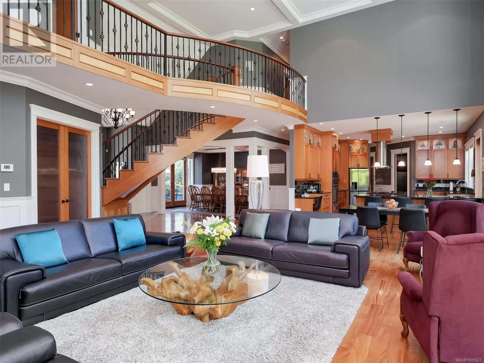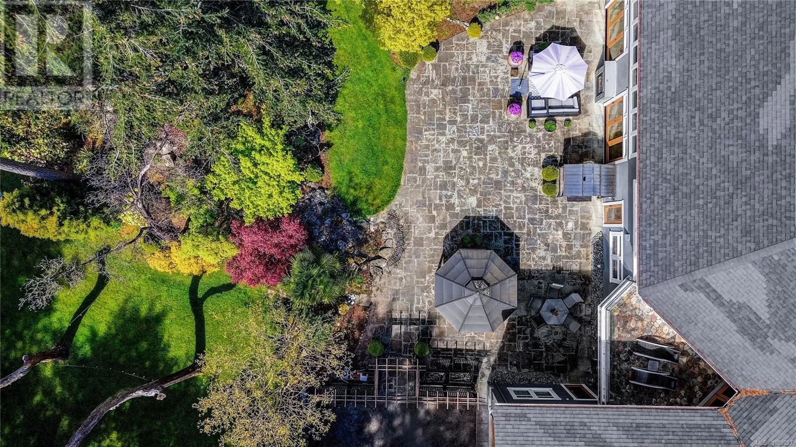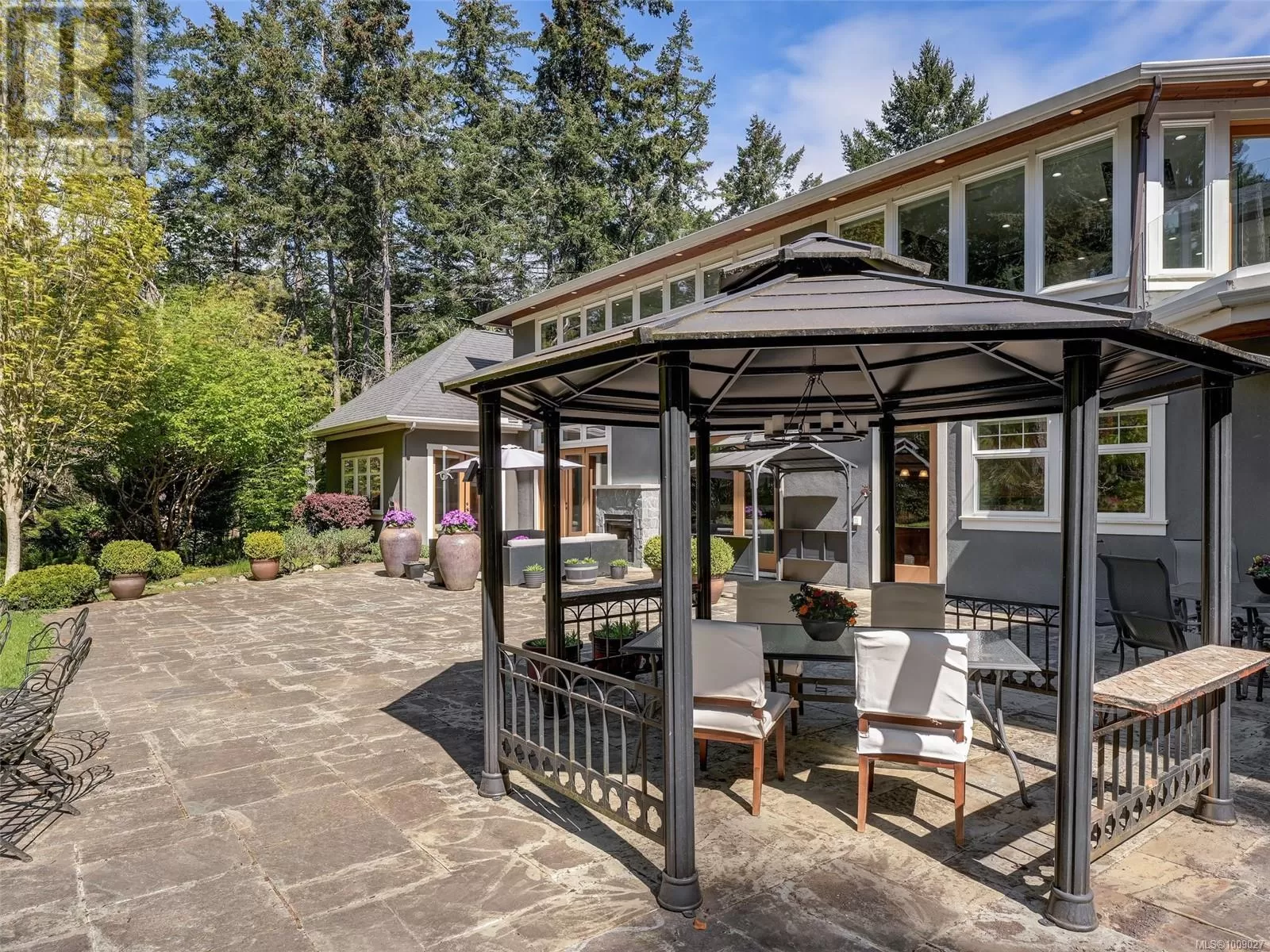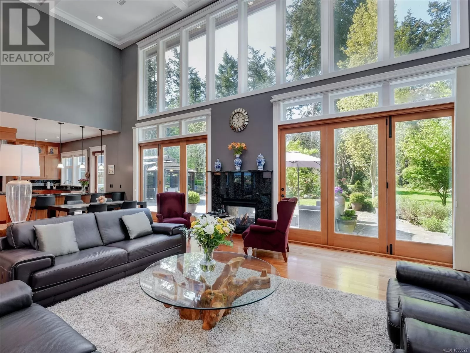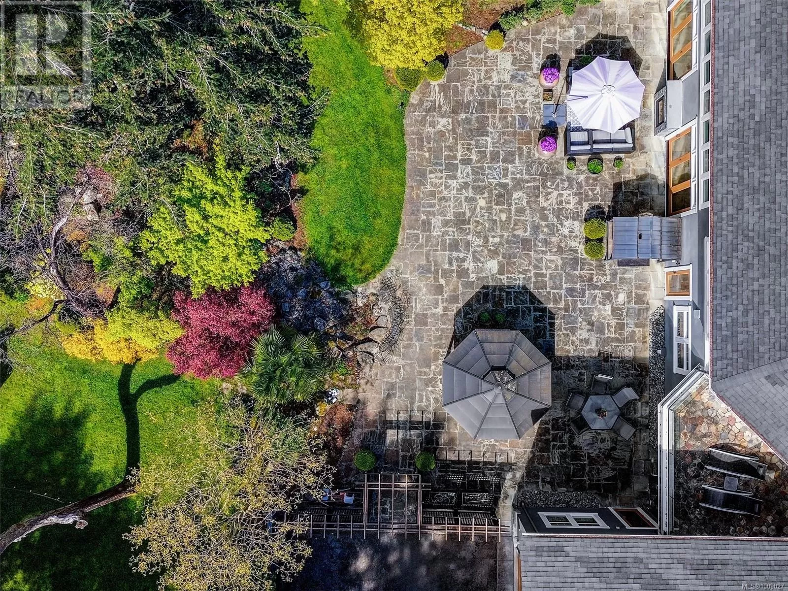 Tucked away in the sought-after Queenswood neighbourhood, this custom-built home offers a rare blend of luxury, privacy, and natural beauty. Built in 2012 with steel beam construction designed to withstand seismic activity, it combines exceptional style, comfort, and peace of mind. Connected to municipal water, sewer, and natural gas, itâs a true modern retreat. Set on a sun-drenched, fully fenced 1.6-acre estate, the property offers privacy amidst mature landscaping and lush, seasonal gardens. Whether enjoying a quiet morning or hosting gatherings, the setting is magical. Inside, soaring 20-foot ceilings and accordion-style glass doors in the great room invite the outdoors in, leading to a 2,300-square-foot terrace with an indoor/outdoor fireplaceâideal for seamless living. The gourmet kitchen, with a spacious eating bar and walk-in pantry, opens to the formal dining and living areas, all featuring exquisite custom millwork. The main floor primary suite is a private retreat with terrace access and garden views. Each additional bedroom includes an ensuite, ensuring comfort and privacy for family and guests. The Control4 smart home system integrates lighting, media, climate, and security, all easily controlled via your phone. This home is designed for living wellâentertain in the custom theatre, challenge friends in the expansive games room with full bar, or focus in the exercise studio. Additional features include a 5-car garage, air conditioning, 400-amp underground electrical service, security system, and space for RV or boat parking. Ideally located near beach access, parks, trails, top-rated schools, and Cadboro Bay Village, this home combines seclusion with convenience. More than a beautiful home, itâs a resilient, smart sanctuary built to stand the test of time. (id:27476)