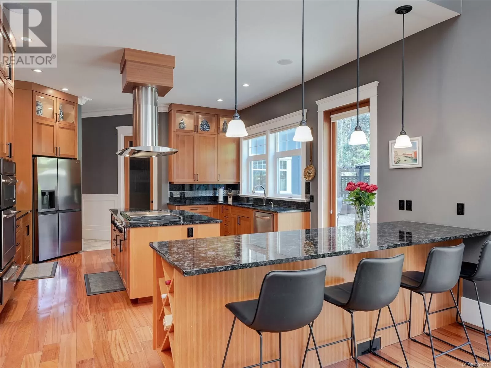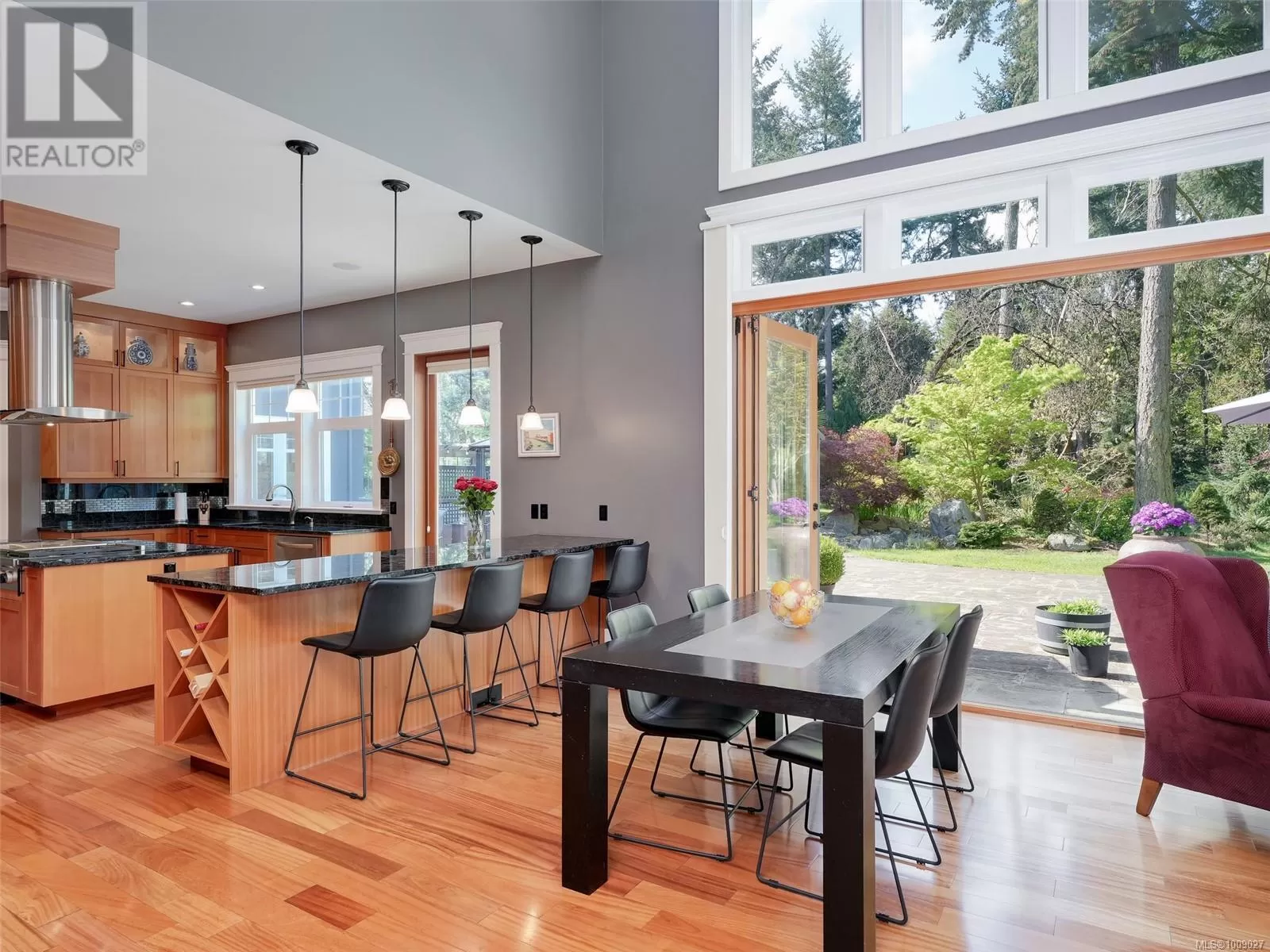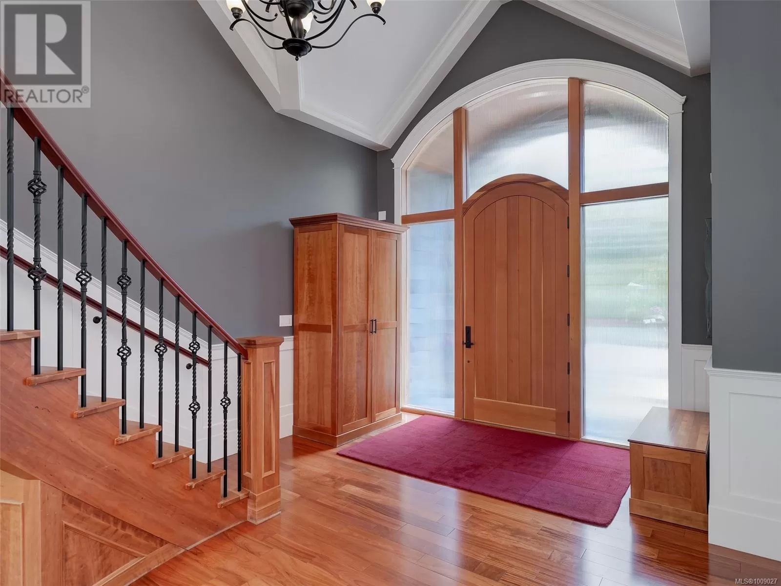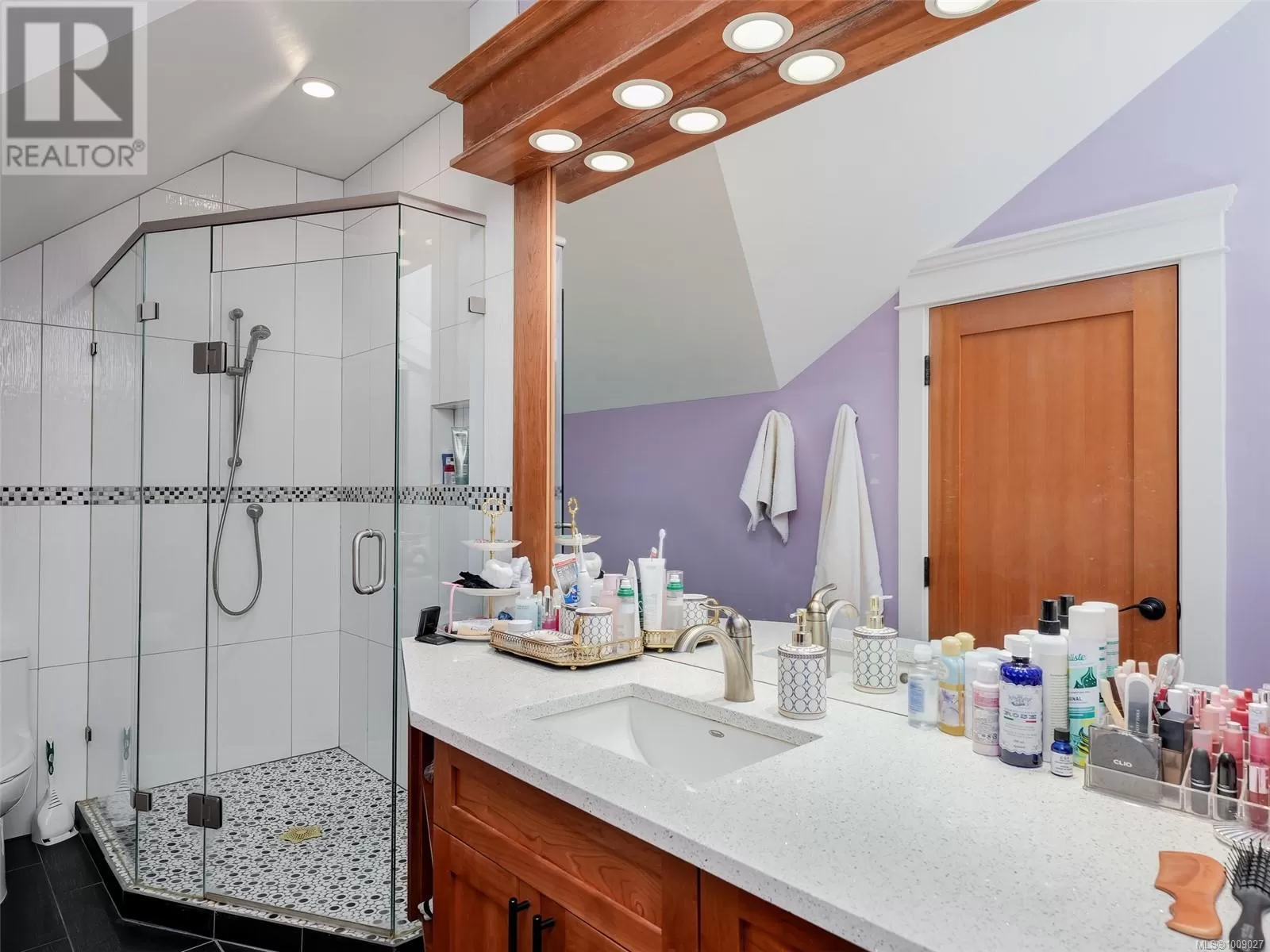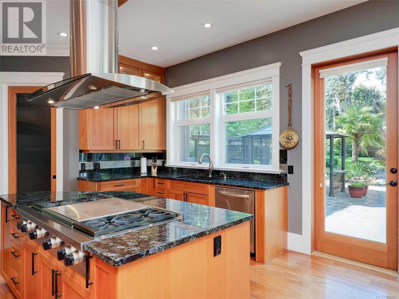 Tucked away in the sought-after Queenswood neighbourhood, this custom-built home offers a rare blend of luxury, privacy, and natural beauty. Built in 2012 with steel beam construction designed to withstand seismic activity, it combines exceptional style, comfort, and peace of mind. Connected to municipal water, sewer, and natural gas, itâs a true modern retreat. Set on a sun-drenched, fully fenced 1.6-acre estate, the property offers privacy amidst mature landscaping and lush, seasonal gardens. Whether enjoying a quiet morning or hosting gatherings, the setting is magical. Inside, soaring 20-foot ceilings and accordion-style glass doors in the great room invite the outdoors in, leading to a 2,300-square-foot terrace with an indoor/outdoor fireplaceâideal for seamless living. The gourmet kitchen, with a spacious eating bar and walk-in pantry, opens to the formal dining and living areas, all featuring exquisite custom millwork. The main floor primary suite is a private retreat with terrace access and garden views. Each additional bedroom includes an ensuite, ensuring comfort and privacy for family and guests. The Control4 smart home system integrates lighting, media, climate, and security, all easily controlled via your phone. This home is designed for living wellâentertain in the custom theatre, challenge friends in the expansive games room with full bar, or focus in the exercise studio. Additional features include a 5-car garage, air conditioning, 400-amp underground electrical service, security system, and space for RV or boat parking. Ideally located near beach access, parks, trails, top-rated schools, and Cadboro Bay Village, this home combines seclusion with convenience. More than a beautiful home, itâs a resilient, smart sanctuary built to stand the test of time. (id:27476)
