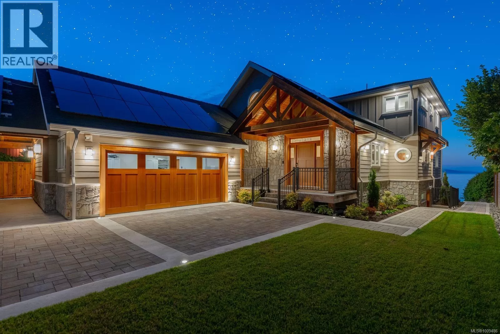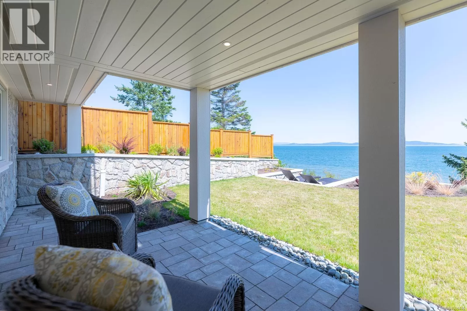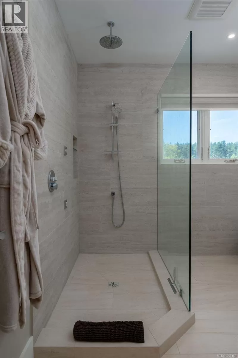 A spectacular vista awaits at this waterfront West Coast masterpiece in Cordova Bay. Situated on a 0.40-acre lot with 70 feet of beach access on Victoria's ''Street of Dreams,'' this 4,800 sq ft home features distinctive cedar timber frame architecture and luxury Loewen windows. The interior boasts a soaring two-story foyer, natural limestone flooring, and an elevator to all three floors. The gourmet kitchen is a chef's delight with a quartz island, 48'' Refrigerator/Freezer, dual fuel range, multiple dishwashers, and a butler's pantry. Entertain in the separate dining room with a built-in wine fridge or the living room with its wood-burning fireplace. The main floor also includes a bedroom with ensuite access and two spa bathrooms. The upstairs master suite features awe-inspiring views, motorized Lutron blinds, a lavish walk-in dressing room, and a ''his and her'' ensuite with a freestanding tub and two-person body sprays. Two additional bedrooms, another spa bathroom, and a full laundry room complete the upper level. The lower floor offers a custom fir wine cellar and a self-contained 2-bedroom ocean-view suite with its own kitchen, laundry, walkout patio, and hot tub. Eco-conscious buyers will appreciate the 14kW solar system and EV charger. The property includes a heated double garage, a double carport, radiant heating, heat pump A/C, and a masterpiece of masonry featuring Basalt stone walls and living wall softscaping. An offering of this calibre is a truly extraordinary treasure. (id:27476)