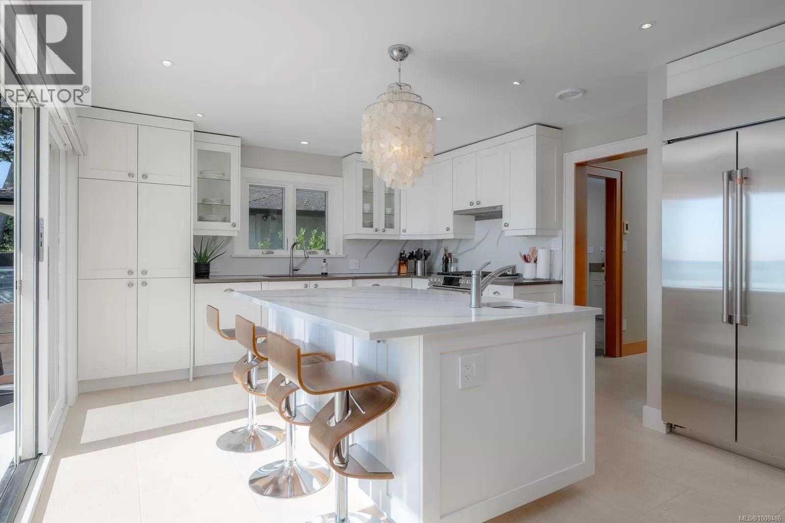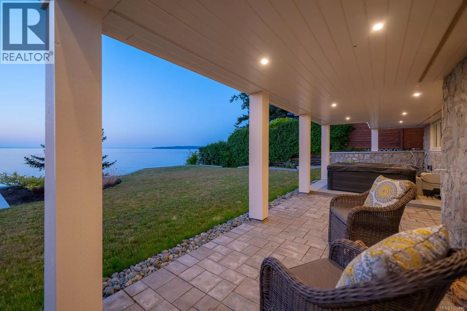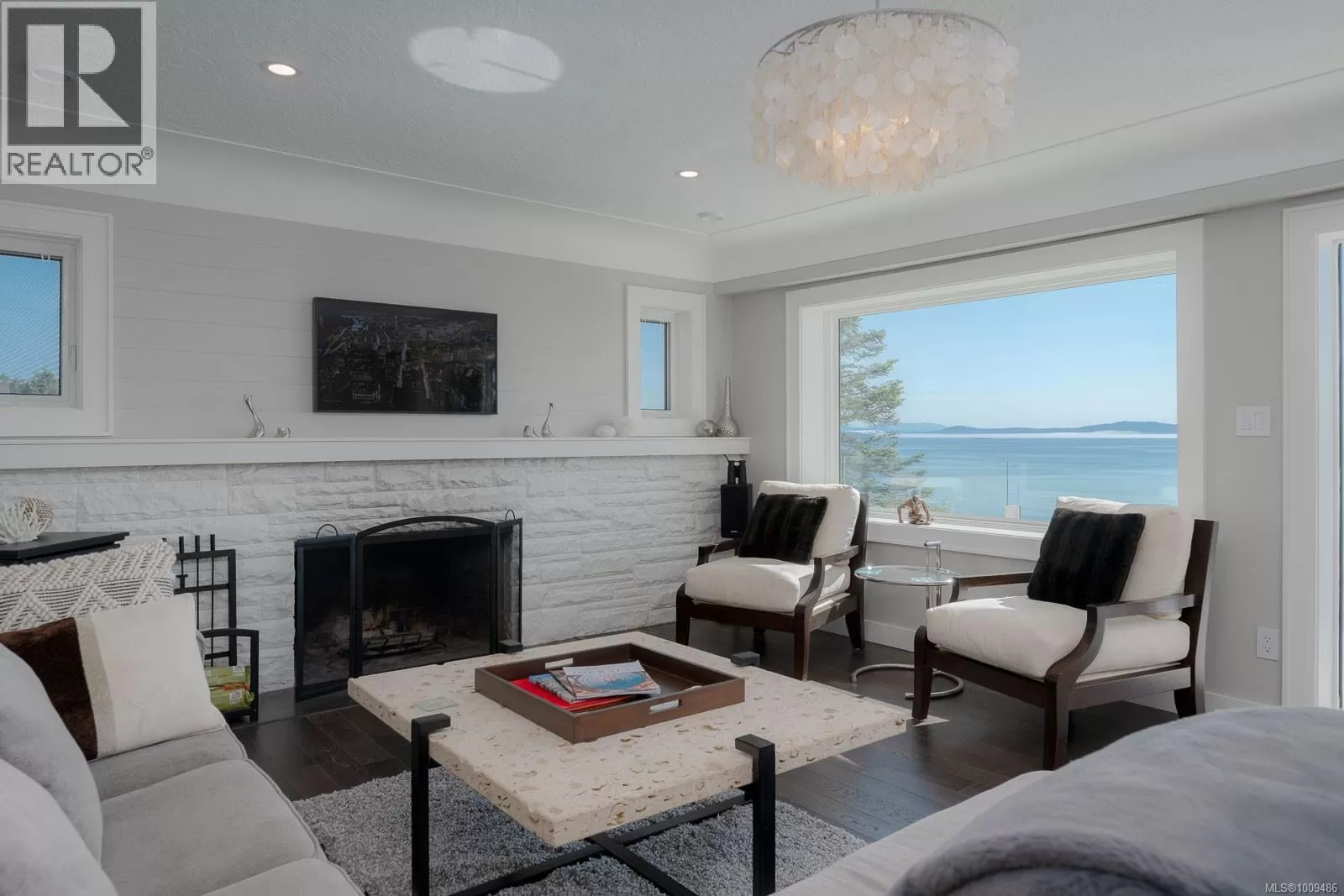 A spectacular vista awaits at this waterfront West Coast masterpiece in Cordova Bay. Situated on a 0.40-acre lot with 70 feet of beach access on Victoria's ''Street of Dreams,'' this 4,800 sq ft home features distinctive cedar timber frame architecture and luxury Loewen windows. The interior boasts a soaring two-story foyer, natural limestone flooring, and an elevator to all three floors. The gourmet kitchen is a chef's delight with a quartz island, 48'' Refrigerator/Freezer, dual fuel range, multiple dishwashers, and a butler's pantry. Entertain in the separate dining room with a built-in wine fridge or the living room with its wood-burning fireplace. The main floor also includes a bedroom with ensuite access and two spa bathrooms. The upstairs master suite features awe-inspiring views, motorized Lutron blinds, a lavish walk-in dressing room, and a ''his and her'' ensuite with a freestanding tub and two-person body sprays. Two additional bedrooms, another spa bathroom, and a full laundry room complete the upper level. The lower floor offers a custom fir wine cellar and a self-contained 2-bedroom ocean-view suite with its own kitchen, laundry, walkout patio, and hot tub. Eco-conscious buyers will appreciate the 14kW solar system and EV charger. The property includes a heated double garage, a double carport, radiant heating, heat pump A/C, and a masterpiece of masonry featuring Basalt stone walls and living wall softscaping. An offering of this calibre is a truly extraordinary treasure. (id:27476)