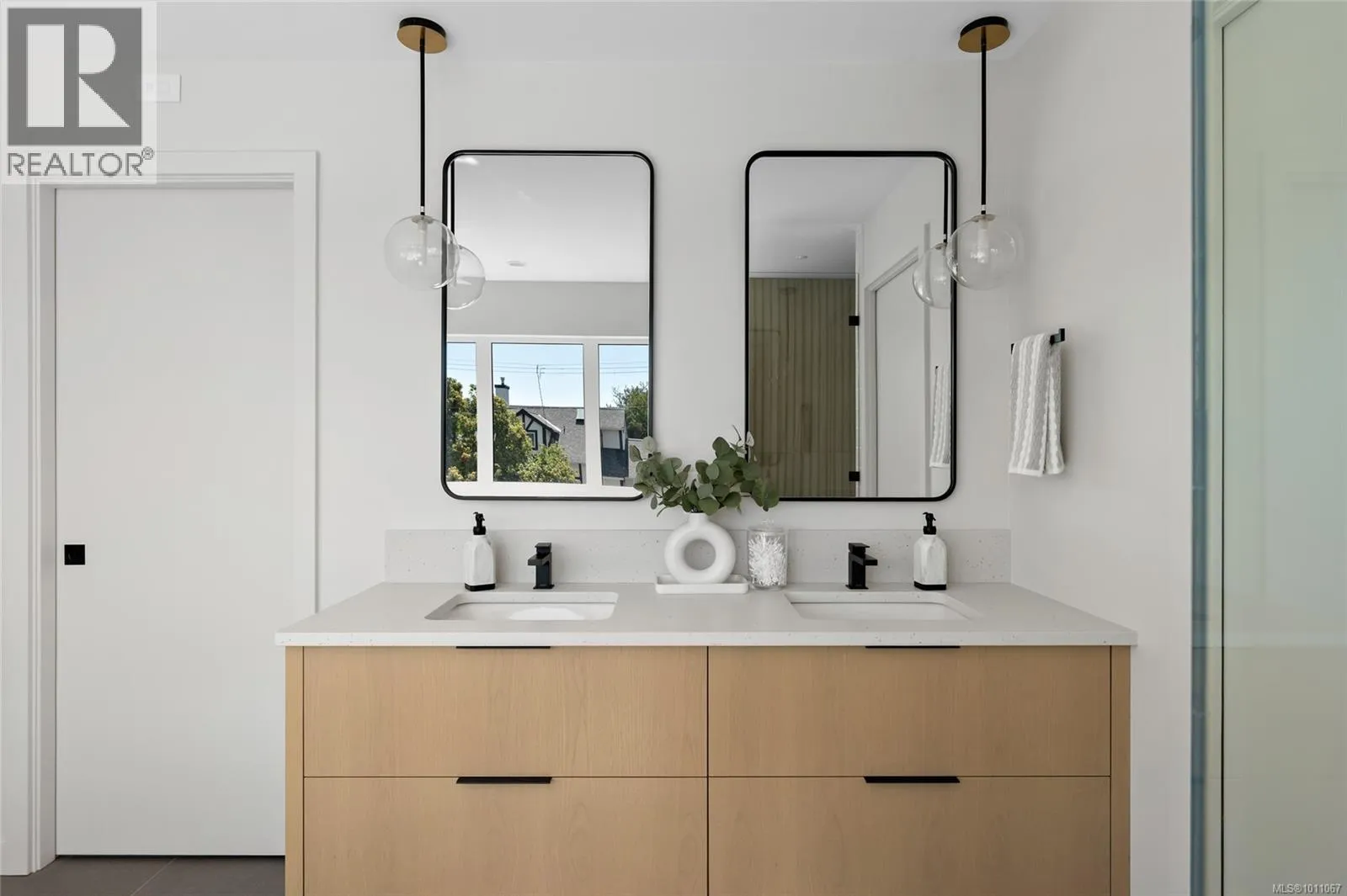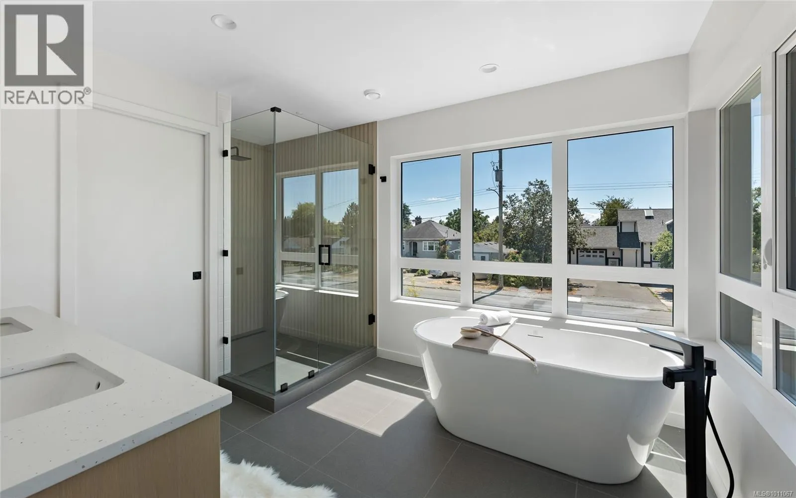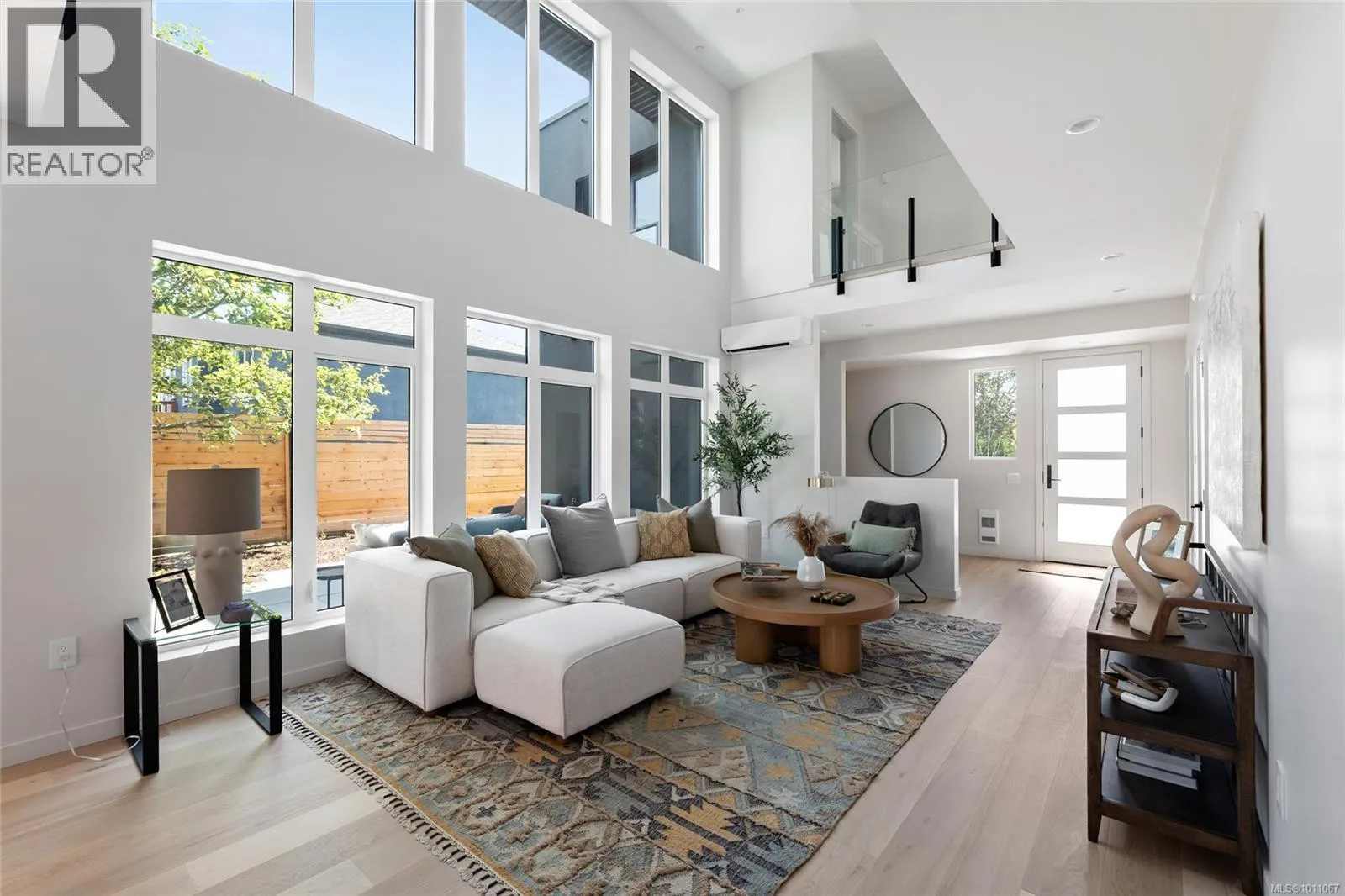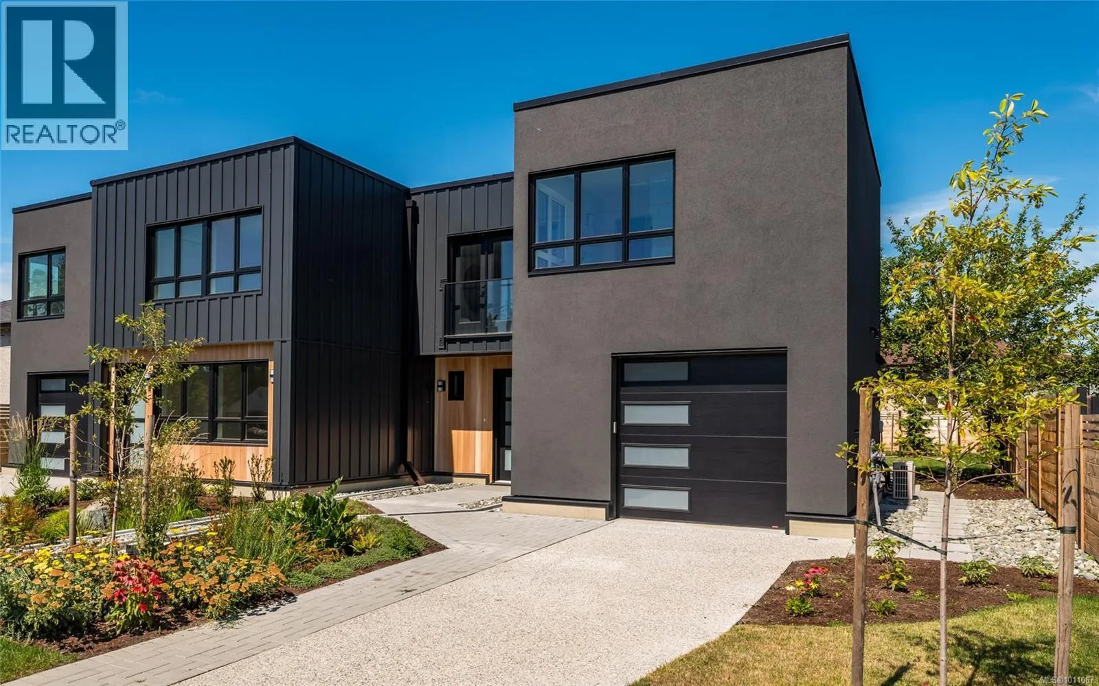 Welcome to Oakhurst, an exclusive collection of 2 luxury half-duplexes built by the highly regarded Villamar Homes. Situated just steps to Oak Bay's border, these homes are elegantly designed w/TWO custom floorplans, clean modern lines & warm finishes. 1970 boasts a Modern open layout w/18' soaring ceilings accented by expansive windows that create a seamless transition to the outdoors. At the heart, a gourmet kitchen showcases custom cabs, quartz counters, high-end appliances & an oversized island-ideal for gatherings. The South facing primary is a true retreat w/a spa-inspired ensuite & generous walk-in. 2 more beds & extra office space provide comfort & flexibility for family, guests or any extra personal needs. The garage, private outdoor space & heat pump all add to the appeal. Steps to Willows Beach, Estevan Village, OB Rec & High School, Royal Jubilee & Carnarvon Park. Oakhurst combines elegance, convenience & exceptional value â delivering an incomparable turnkey lifestyle! (id:27476)
