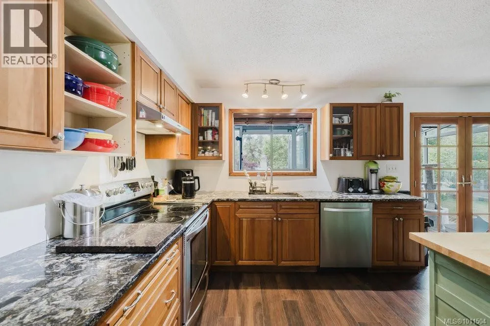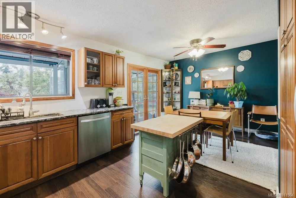 This spacious 5 bed 2 bath family home is on a quiet cul de sac in Gordon Head, situated on a large, level, fully fenced and sunny lot, with views of Mt Doug from the deck. Impressive kitchen with SS appliances, cherry cabinets w/soft-close hinges, dovetailed wood drawers & Cambria quartz countertops, which is open to the dining room with french doors to the cozy and private sunroom. In the living room, you'll enjoy the large south facing bay window to bring in the light and gas fireplace to cozy up to in the cold months. Upstairs you'll find two large bedrooms, a bathroom, and high end laminate floors. On the ground level entry you'll find 2 more bedrooms, a full bath, family room (5th bedroom), and large laundry/utility room. Close to fantastic schools, shops, and Mt. Doug Park. Suite potential or great for extended family - 2 full floors accessed by personal elevator! Heat pump and gas forced air furnace. RV parking too! Check out the media links for more! (id:27476)