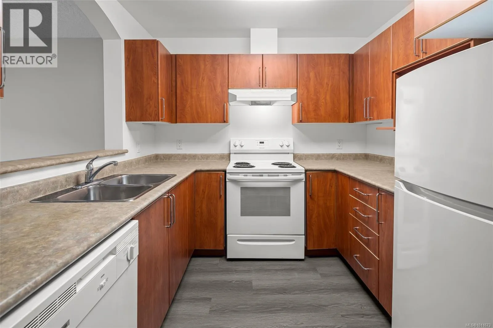 Looking to break into the market or expand your investment portfolio? This 2-bedroom apartment offers incredible potential in a sought-after, family-friendly location. The functional floor plan has two generous bedrooms, both on the quiet side of the building. The open plan living and dining area lead onto a covered balcony overlooking Garry Oaks and up Christmas Hill. New flooring and a renovated no-step shower in the ensuite, accessible through the large walk-thru closet. Easy access to the highway and Mackenzie for excellent transit options, or enjoy your underground secured parking space for your own ride. Stroll across to Rainbow Park and Swan Lake, or enjoy hiking through neighbouring oak meadows. Safe, secure building with a new roof recently completed and paid for. Ideal for first-time buyers looking to add value or investors seeking strong rental demand. Opportunities like this don't last - call Brock today 778-977-5852 (id:27476)