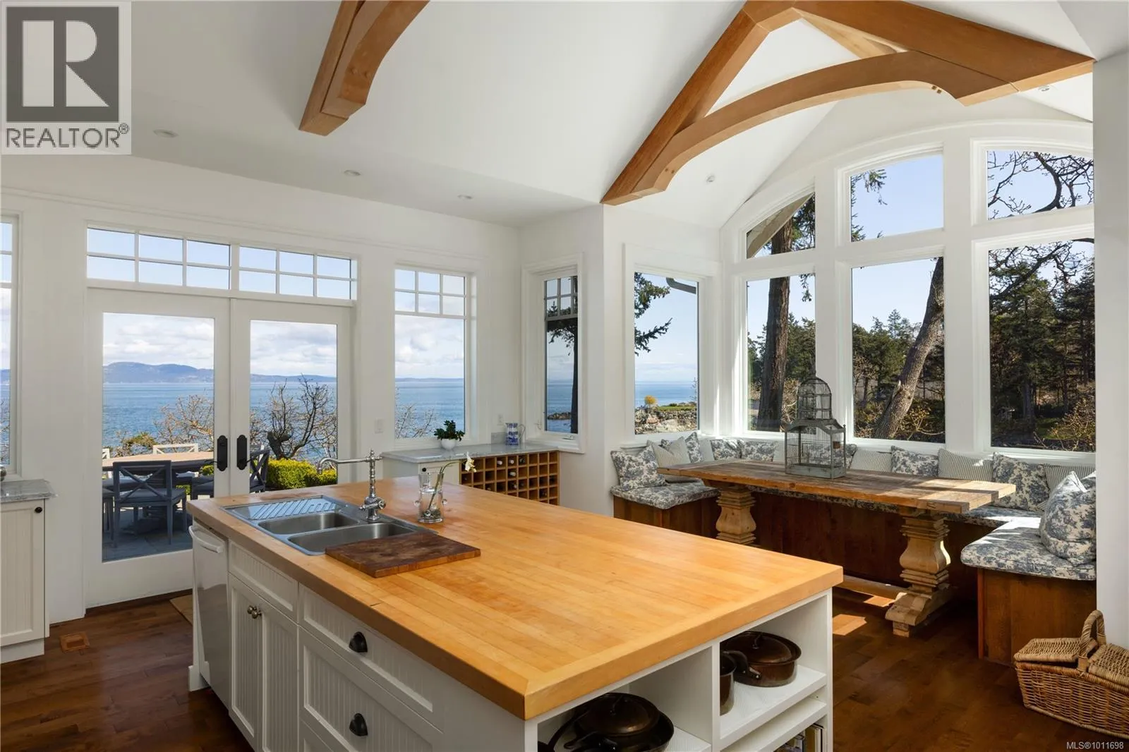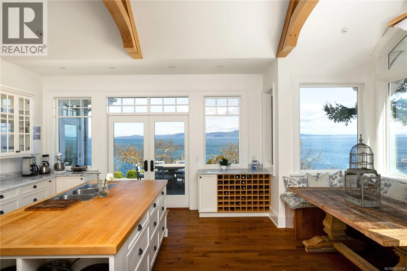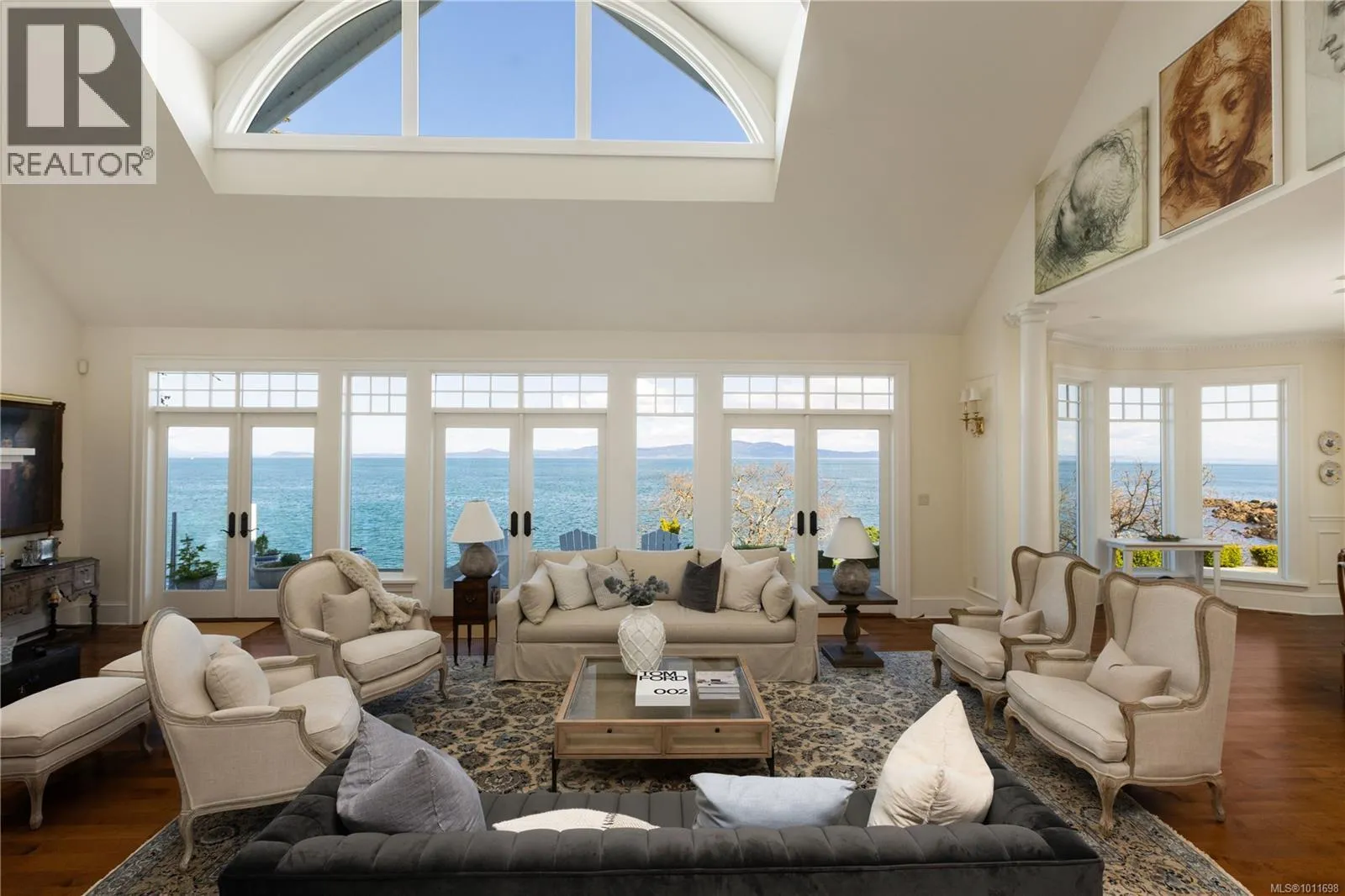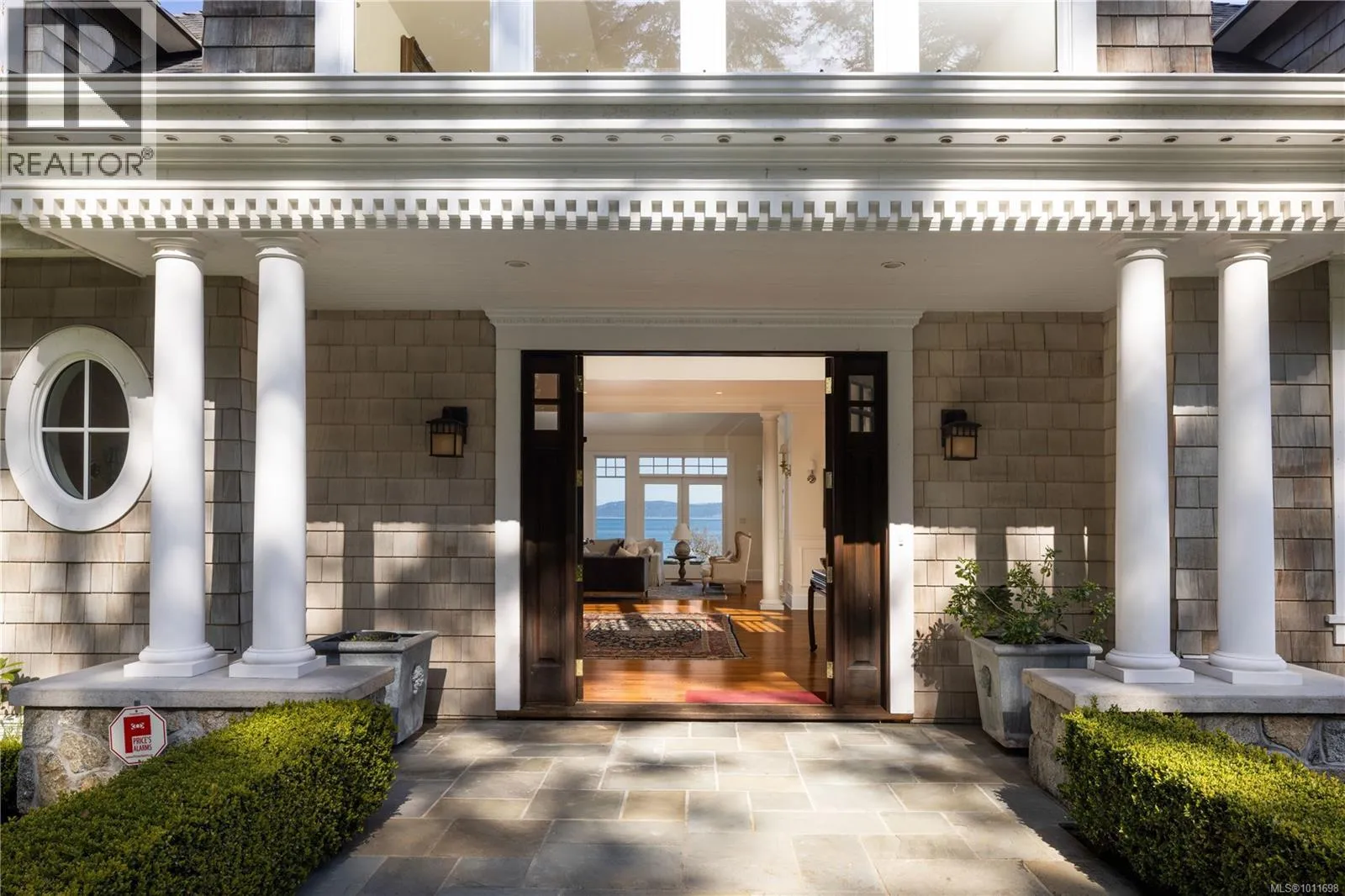 Welcome to 2600 Queenswood Drive, an extraordinary oceanfront retreat nestled on nearly 2.8 acres in one of Vancouver Islandâs most prestigious enclaves. Gated and private, with the potential to subdivide, this timeless estate offers panoramic views of the Haro Strait, Gulf Islands, and Mt. Baker. The Hamptons-style residence blends classic East Coast charm with West Coast ease, featuring more than 6,000 sqft of beautifully curated living space. Soaring ceilings, expansive windows, and a seamless connection to the outdoors define the main level, which includes a sophisticated living room, elegant dining area, a hand built Walnut library/media room, and a chefâs kitchen designed for both function and flair. The main floor primary suite is a true sanctuary, while the upper level offers 3 additional bedrooms, 2 with ensuite. A walkout lower level includes a flexible studio or guest quarters. Lush landscaping, stone pathways, a private launch point for kayaking, and a detached 3-car heated garage with gardenerâs toilet complete this rare seaside settingâjust minutes to Cadboro Bay Village and UVic. (id:27476)