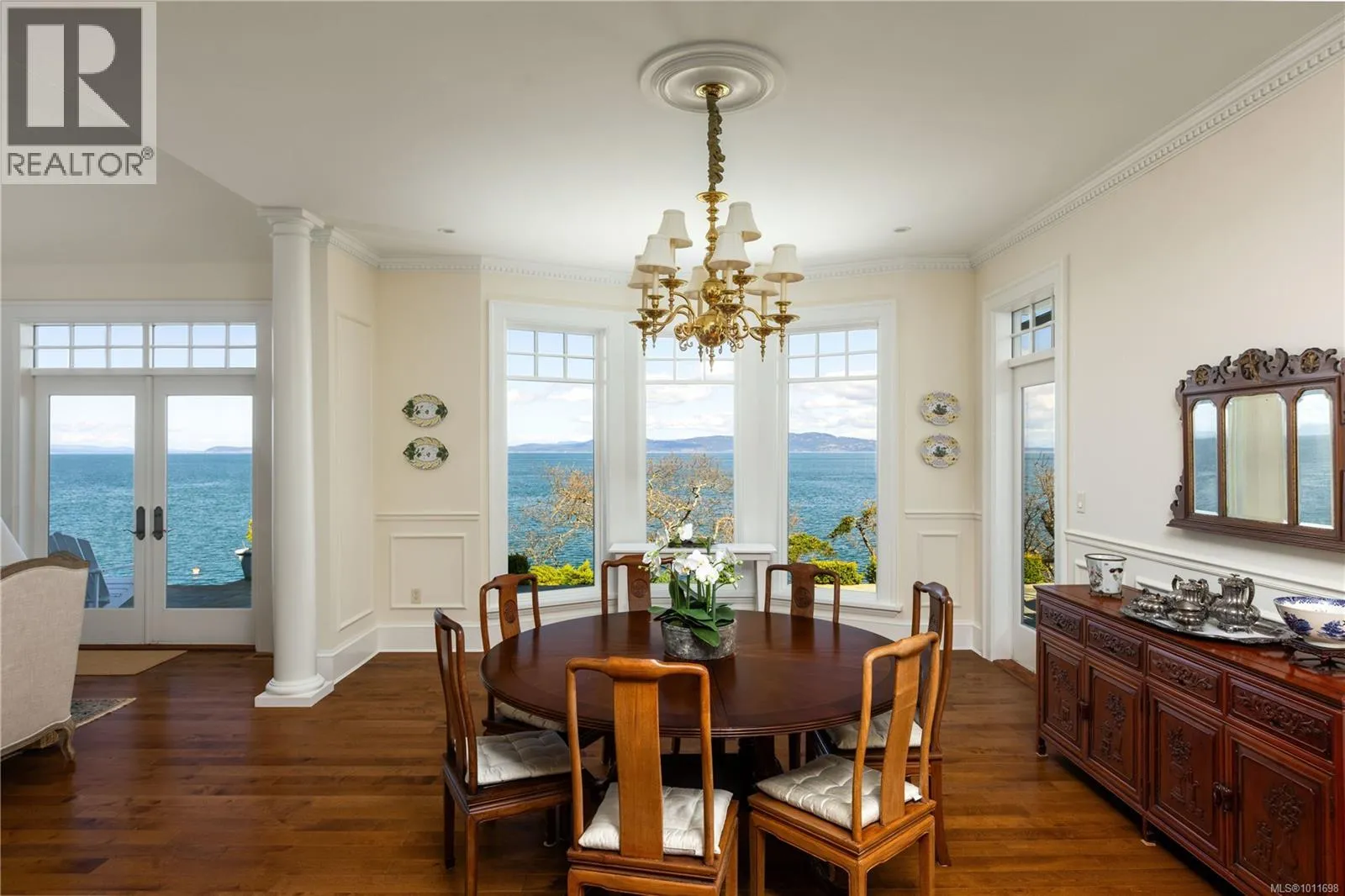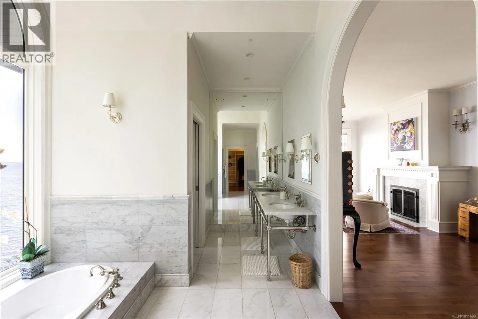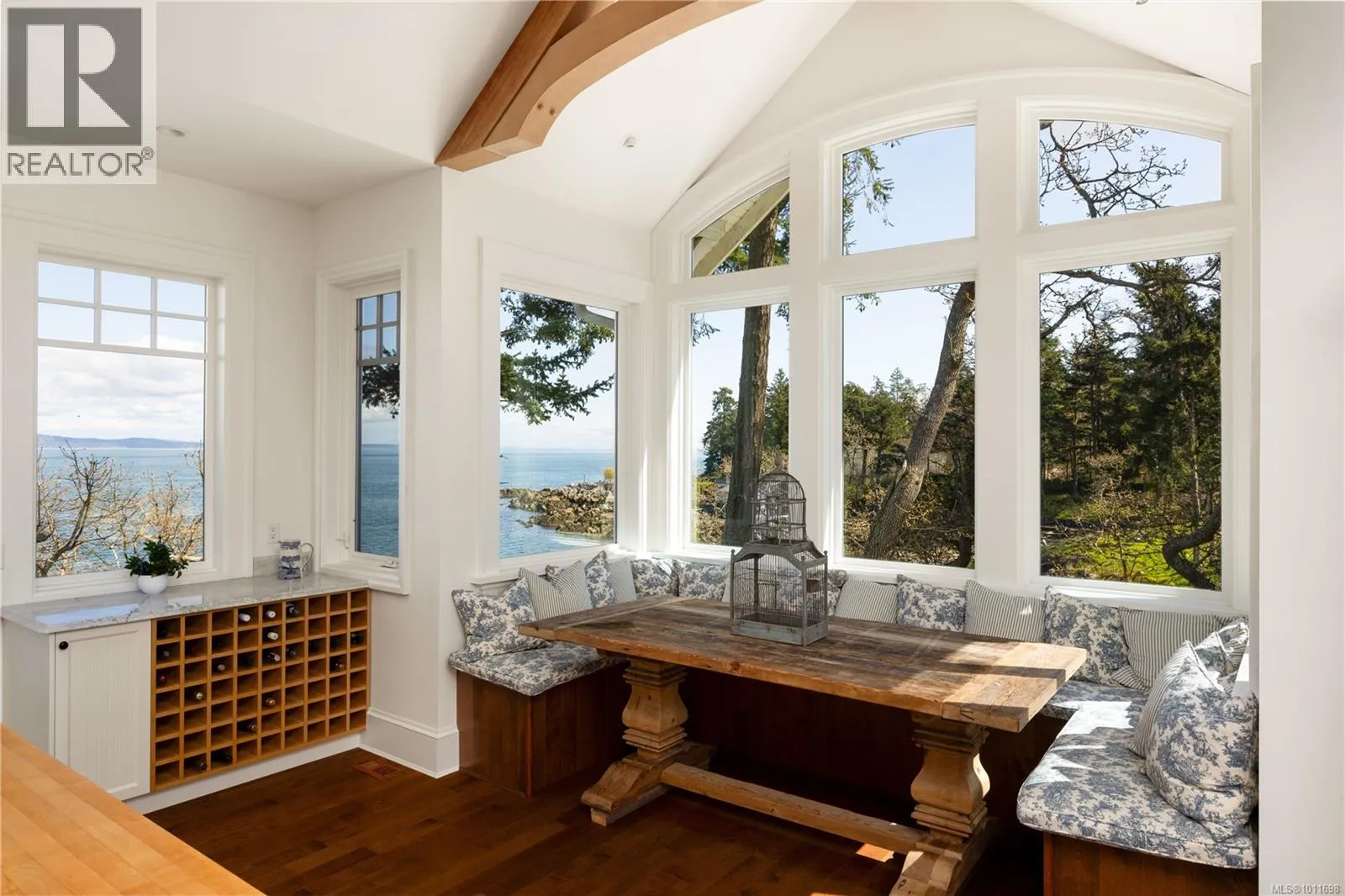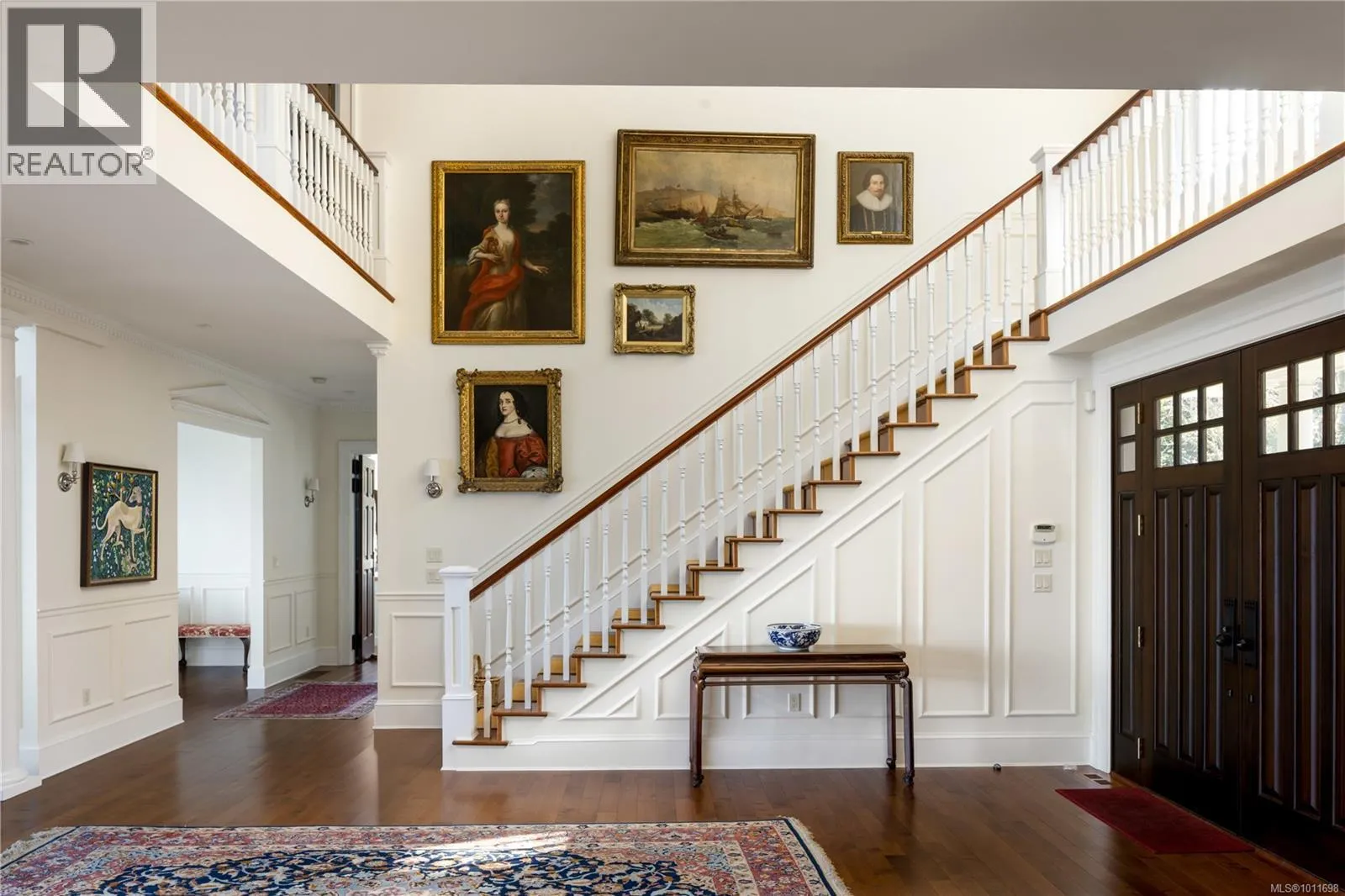 Welcome to 2600 Queenswood Drive, an extraordinary oceanfront retreat nestled on nearly 2.8 acres in one of Vancouver Islandâs most prestigious enclaves. Gated and private, with the potential to subdivide, this timeless estate offers panoramic views of the Haro Strait, Gulf Islands, and Mt. Baker. The Hamptons-style residence blends classic East Coast charm with West Coast ease, featuring more than 6,000 sqft of beautifully curated living space. Soaring ceilings, expansive windows, and a seamless connection to the outdoors define the main level, which includes a sophisticated living room, elegant dining area, a hand built Walnut library/media room, and a chefâs kitchen designed for both function and flair. The main floor primary suite is a true sanctuary, while the upper level offers 3 additional bedrooms, 2 with ensuite. A walkout lower level includes a flexible studio or guest quarters. Lush landscaping, stone pathways, a private launch point for kayaking, and a detached 3-car heated garage with gardenerâs toilet complete this rare seaside settingâjust minutes to Cadboro Bay Village and UVic. (id:27476)