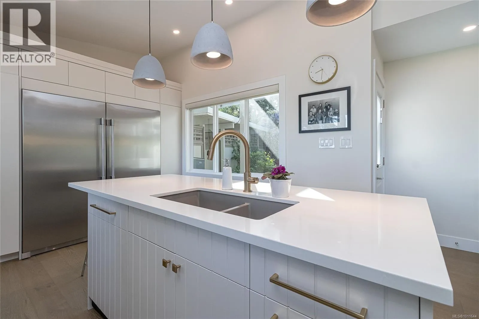 Welcome Home to Coastal Elegance â nestled on a beautiful (over 17,000sqft) lot! Step into this timelessly renovated home, designed by renowned Jenny Martin Design. Just mins from the beach, this gorgeous home provides for a single level living lifestyle with an open-concept layout that flows seamlessly onto a large deck overlooking your gorgeous yard & Views of Mt. Doug, the ocean down to Sidney & Cordova Bay. With a gourmet kitchen you'll be cooking all the time, high end appliances, ample cabinetry, large island & a wall of windows overlooking the lovely landscaped yard, ideal for garden enthusiasts or playing w/kids. Take in the morning sun on your large, private courtyard w/stunning Rhodos, wisteria & more. Downstairs, discover a versatile suite w/private access, offering potential for guests, extended family, or additional income. Don't miss this opportunity to make this home yours, and enjoy an all that this an amazing neighbourhood has to offer. (id:27476)