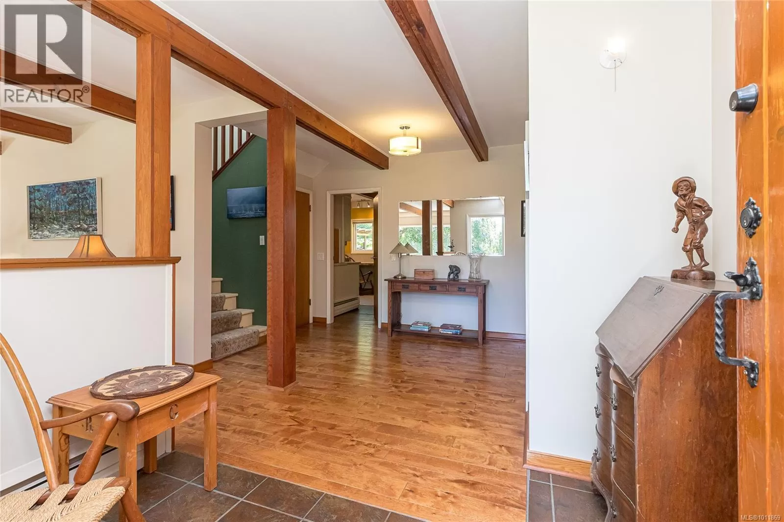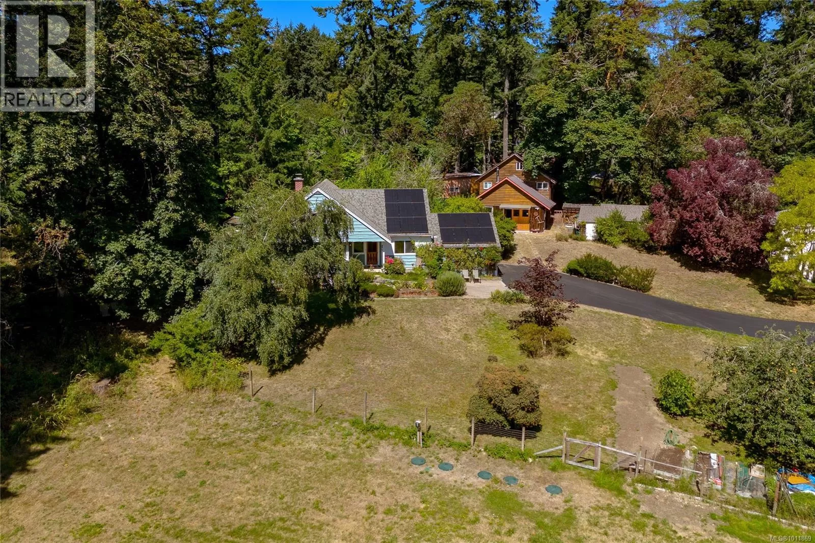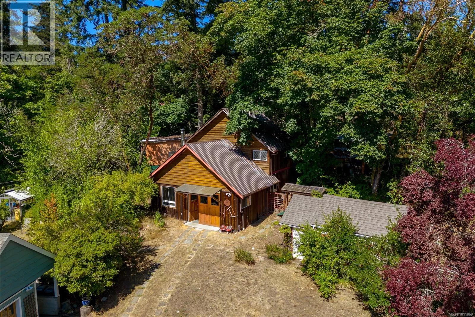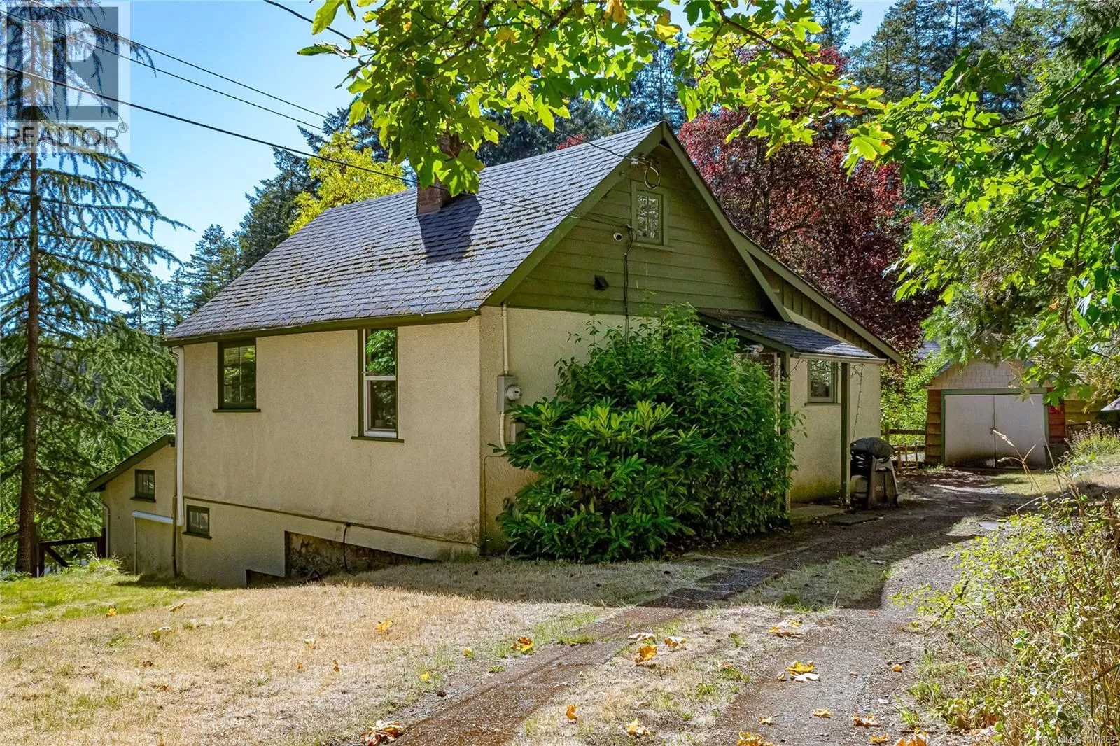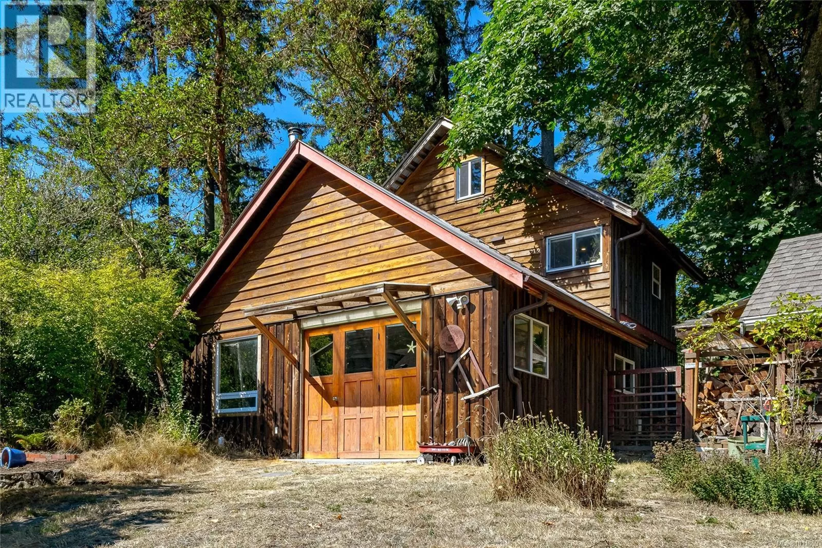 Woodland Retreat â a rare 2.27-acre property where lifestyle, charm, & opportunity meet. Spanning 3,200 sq.ft., the main home offers 5 beds & 2 baths, with character in every corner. The living area showcases exposed beams, hardwood floors, & large windows framing forested views. A well-appointed kitchen flows to the dining area & onto a large deckâperfect for gatherings or quiet moments outdoors. A 1-bed basement suite with its own entrance & laundry completes the main residence. Independent from the main home, a substantial detached workshop features a 2-level studio (663 sq.ft.), ideal for creative pursuits or guest accommodation. A 1-bed, 2-den cottage (694 sq.ft.) completes the property, offering even more potential for multi-generational living or rental income. The acreage provides ample space for RVs, boats, & parking, plus an undeveloped field brimming with possibilities. Experience a peaceful lifestyle immersed in nature, with city conveniences only minutes away. (id:27476)