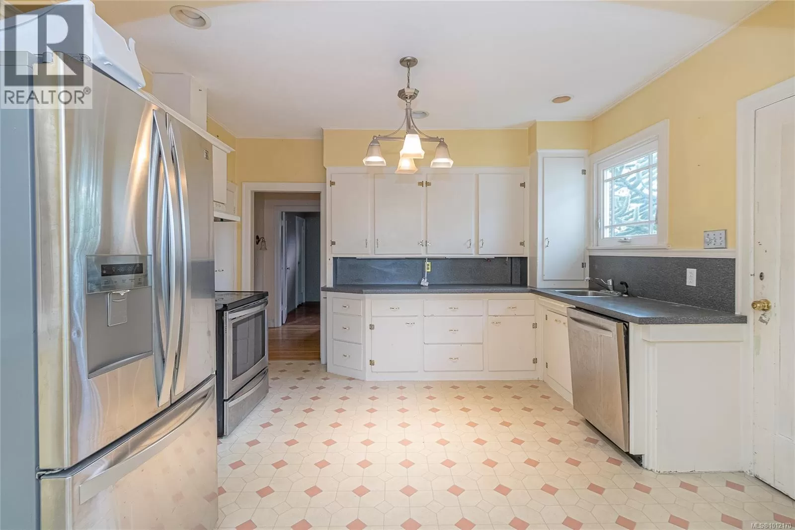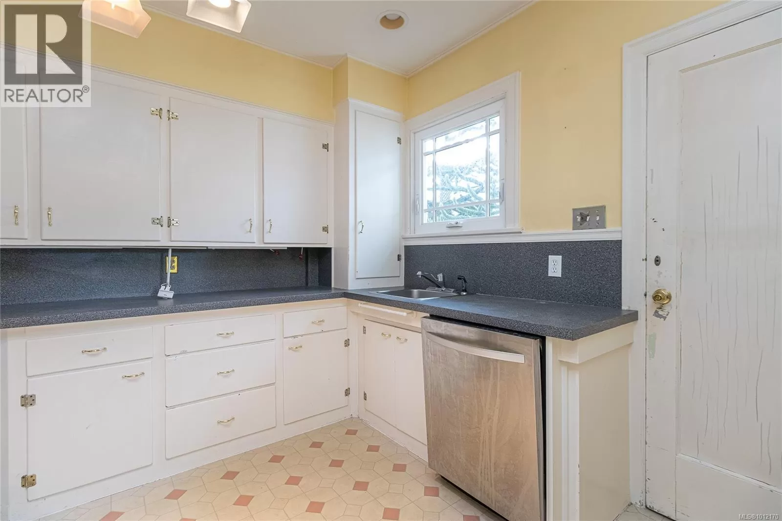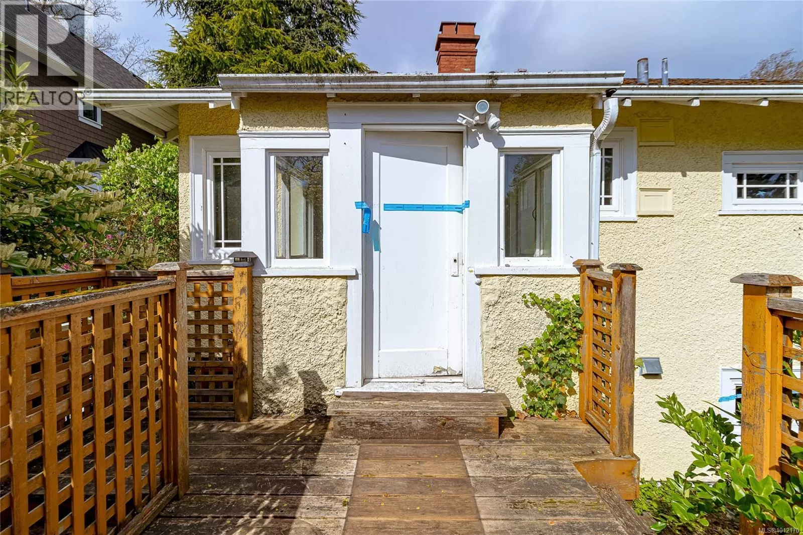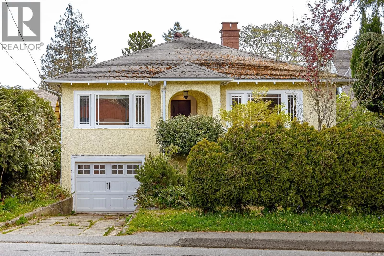 Steeped in charm & bursting with potential, this 1934 home offers nearly 1,900 sq ft of living space across two levels, tucked into a 6,000+ sq ft lot in one of Victoriaâs most desirable neighbourhoods. With top-rated public and private schools nearby, plus quick access to UVic, Camosun College, Hillside Mall & the Oak Bay border, the location offers unbeatable convenience for families, students, or investors alike. Original hardwood floors, a wood-burning fireplace & classic built-ins with leaded glass doors set the tone in the cozy living room. The kitchen holds onto its retro vibe while offering updated stainless steel appliances & a sunny dining nook with a lovely view of the mature monkey tree out back. From the rear mudroom, step out into a private backyard surrounded by mature trees & landscaping. The main bathroom has been refreshed and features tiled surround, a newer vanity, and a deep tub. Downstairs, discover a flexible lower level with unfinished storage, a laundry area, and access to the single-car garage. A separate side entrance leads to a one-bedroom in-law space with a compact kitchen, updated 3-piece bath, and open-concept living/sleeping areaâideal for extended family, a student rental, or even a rec room. Whether you're dreaming of a stylish renovation project, a long-term investment, or your very first home in a vibrant, central location, this character-filled property offers endless possibilities. (id:27476)