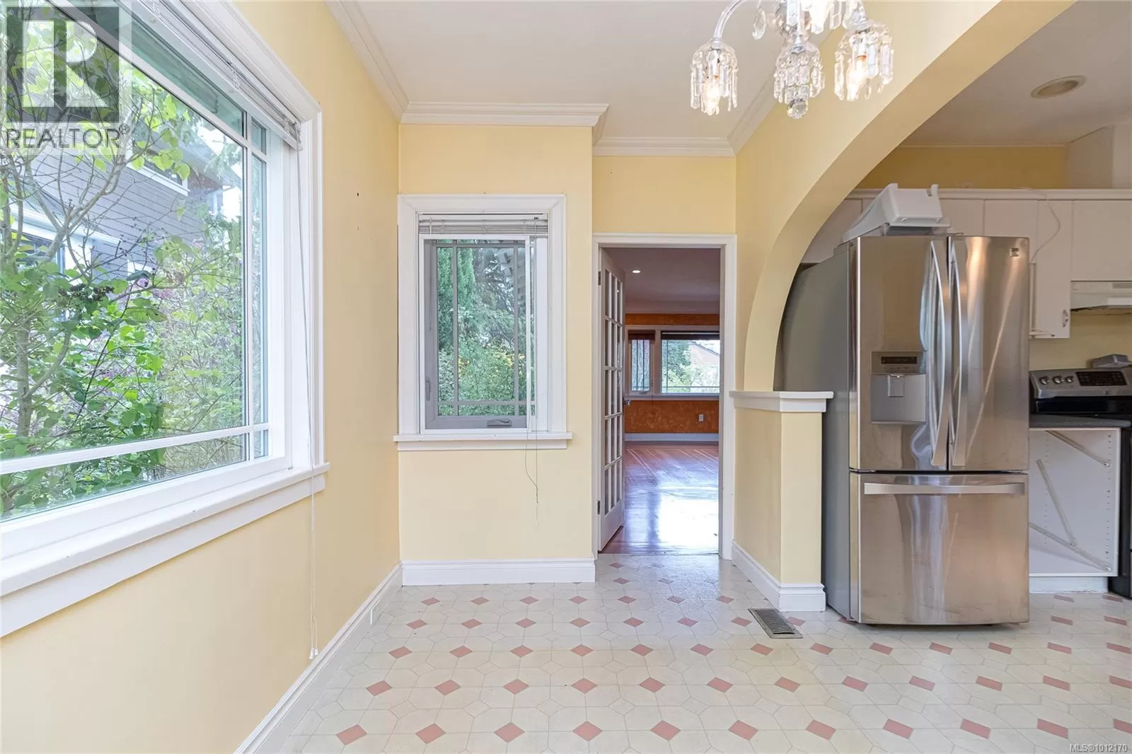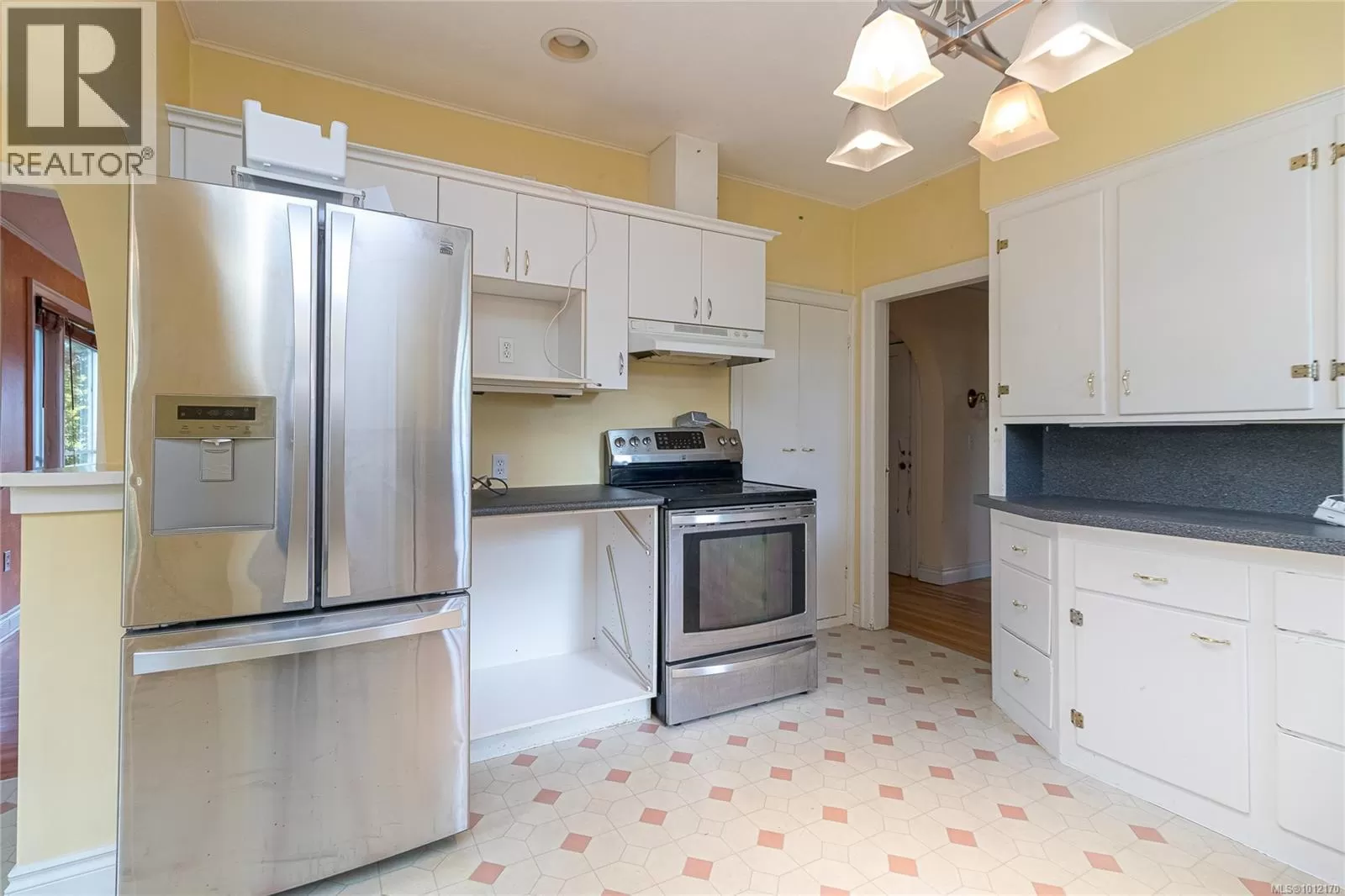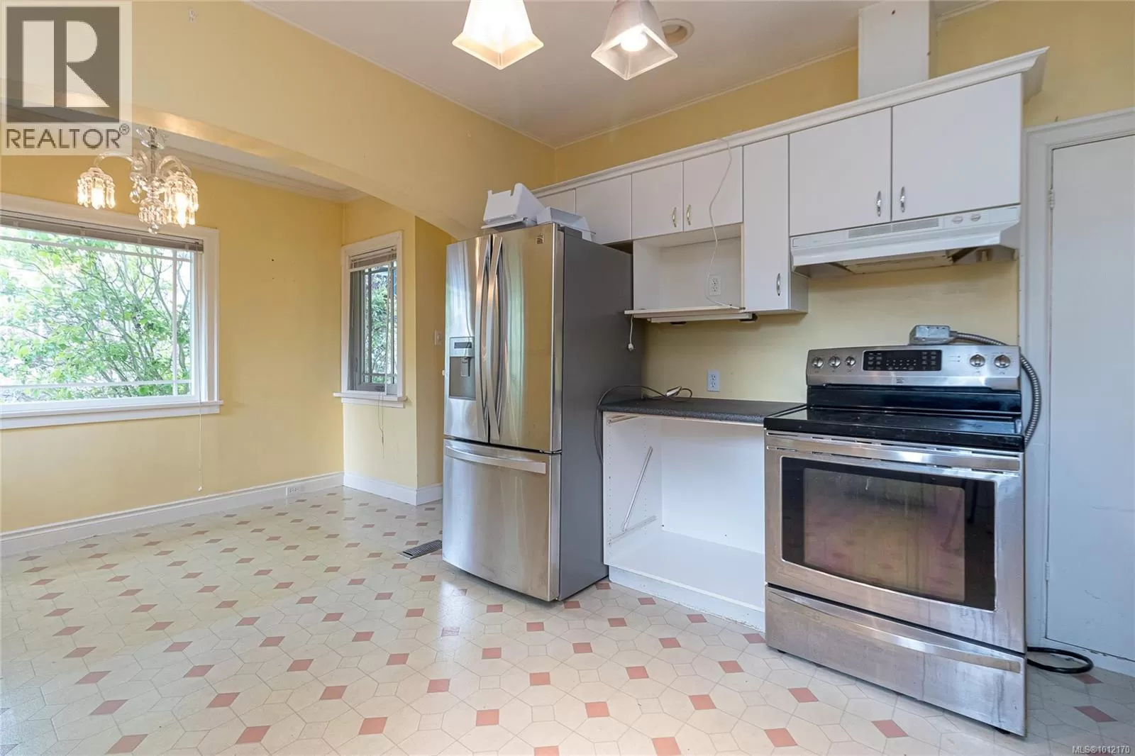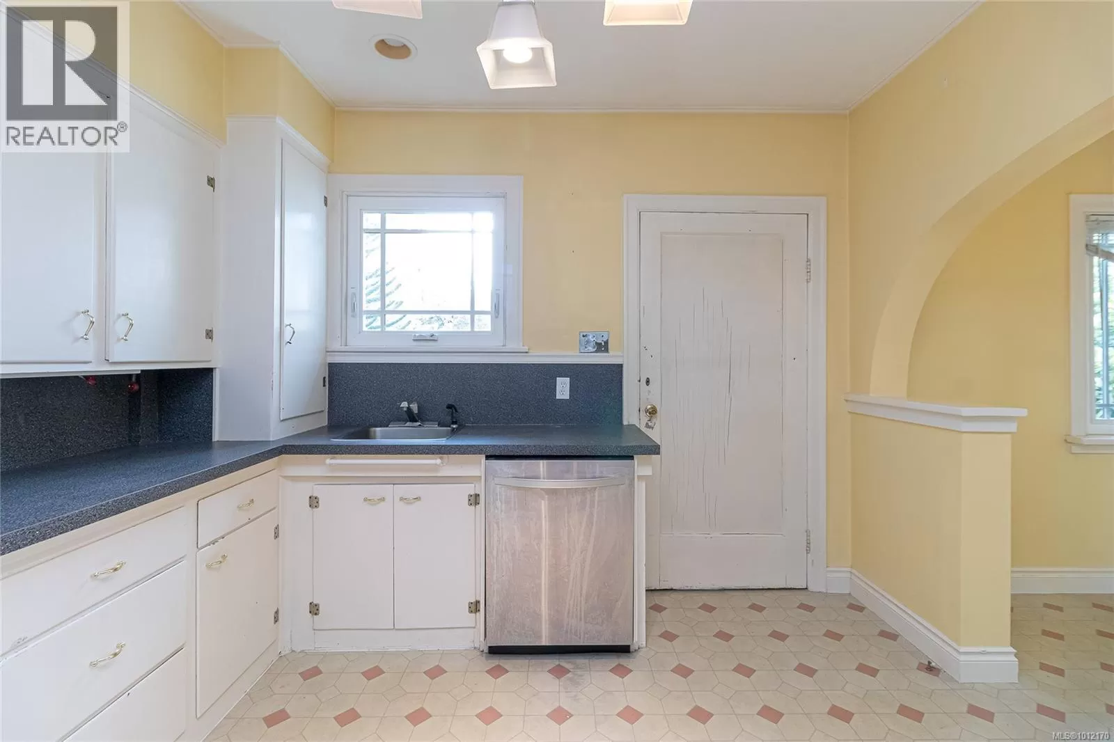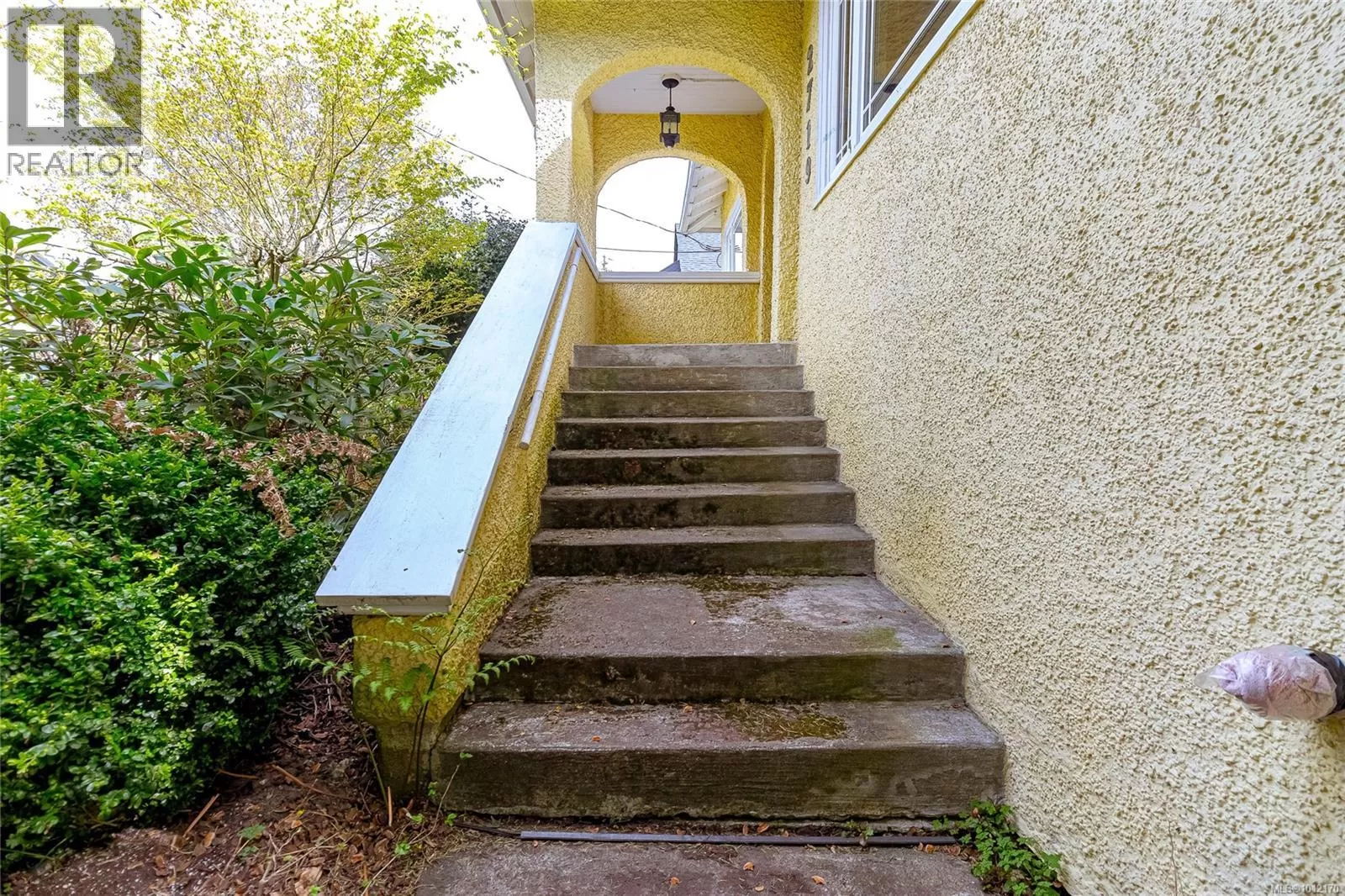 Steeped in charm & bursting with potential, this 1934 home offers nearly 1,900 sq ft of living space across two levels, tucked into a 6,000+ sq ft lot in one of Victoriaâs most desirable neighbourhoods. With top-rated public and private schools nearby, plus quick access to UVic, Camosun College, Hillside Mall & the Oak Bay border, the location offers unbeatable convenience for families, students, or investors alike. Original hardwood floors, a wood-burning fireplace & classic built-ins with leaded glass doors set the tone in the cozy living room. The kitchen holds onto its retro vibe while offering updated stainless steel appliances & a sunny dining nook with a lovely view of the mature monkey tree out back. From the rear mudroom, step out into a private backyard surrounded by mature trees & landscaping. The main bathroom has been refreshed and features tiled surround, a newer vanity, and a deep tub. Downstairs, discover a flexible lower level with unfinished storage, a laundry area, and access to the single-car garage. A separate side entrance leads to a one-bedroom in-law space with a compact kitchen, updated 3-piece bath, and open-concept living/sleeping areaâideal for extended family, a student rental, or even a rec room. Whether you're dreaming of a stylish renovation project, a long-term investment, or your very first home in a vibrant, central location, this character-filled property offers endless possibilities. (id:27476)