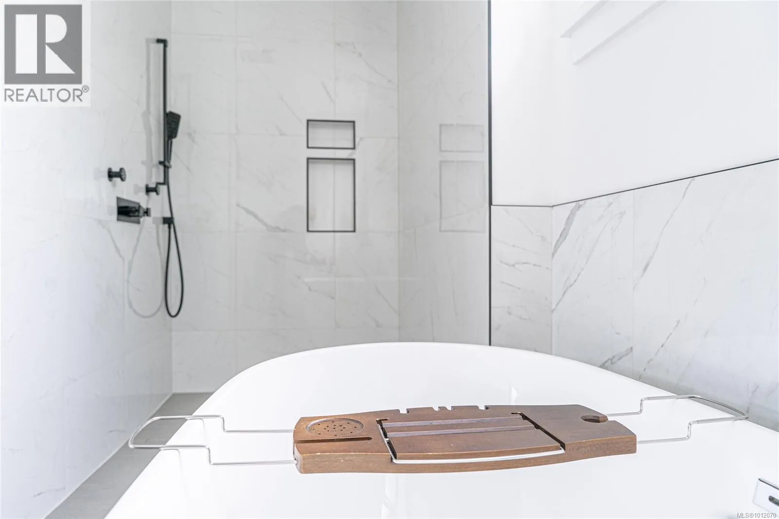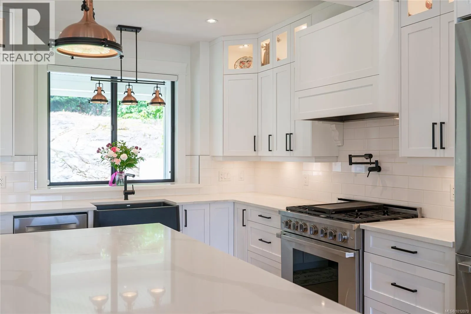 Perched at the quiet end of Wilkinson Rd and overlooking South Valleyâs newer homes sits this 2021 Custom-Built 6 bed, 5 bath Modern Farmhouse with legal suite on a large, private, level lot with tons of parking! High-end features include a 3 Zone HVAC system, on-demand hot water, and Custom Hunter Douglas motorized blinds. The main level offers a cedar-vaulted entry, heated tile, hardwood floors, spacious office, open-concept living/dining areas with gas fireplace, and a spacious sunny patio. The kitchen wows w/11-ft quartz island, 6-burner gas stove w/pot filler, oversized fridge, wine rack, and custom cabinetry. The primary bedroom on the main floor impresses w/walk-in closet and deluxe spa-like ensuite! Upstairs has 3 more bedrooms; down features a large media/family room with wet bar. Includes a double garage plus a third bay for your sports car, motorbikes, or watercraft? Centrally located conveniently close to schools, transit, Vic General, and both Highways. Come have a look! (id:27476)