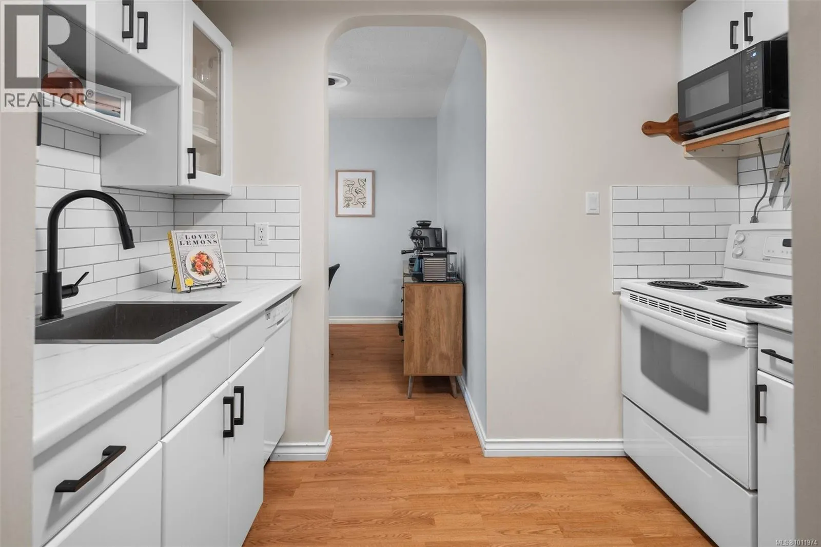 Located in a highly desirable area, enjoy the best of the city while feeling right at home in this beautifully updated, spacious top-floor unit! The inviting living space features a cozy electric fireplace, perfect for relaxing evenings. The modern kitchen has everything you need, including a massive pantry and appliance storage, designed to make cooking effortless. Off the kitchen, the dining area is ideal for gatherings, highlighted by a stunning light fixture. The living room flows into a bright enclosed sunroom, offering endless optionsâwhether as an office, hobby room, or workout space. The bathroom boasts a stylish walk-in shower, and with in-suite laundry, abundant storage, and an expansive primary bedroom (ready for your king size bed), this pet-friendly home truly has it all! Just steps from Tillicum Mall, Pearkes Recreation Centre, major bus routes, and Hampton Park, this is one you donât want to miss. (id:27476)