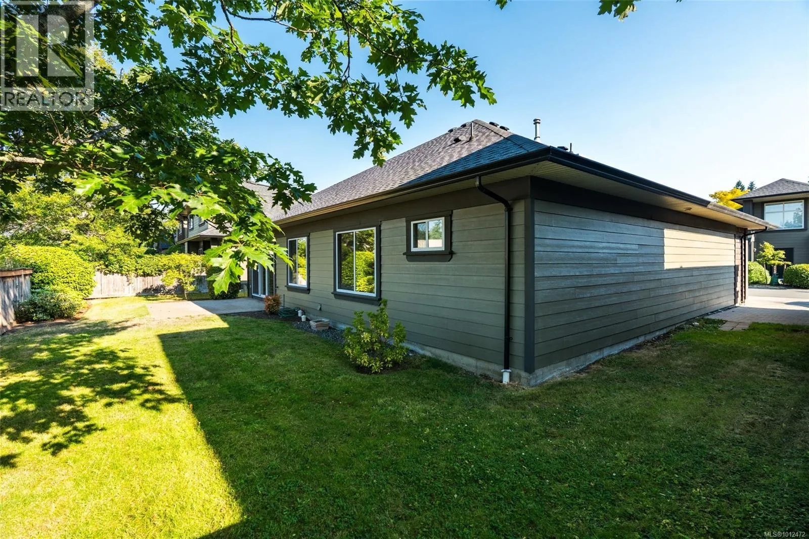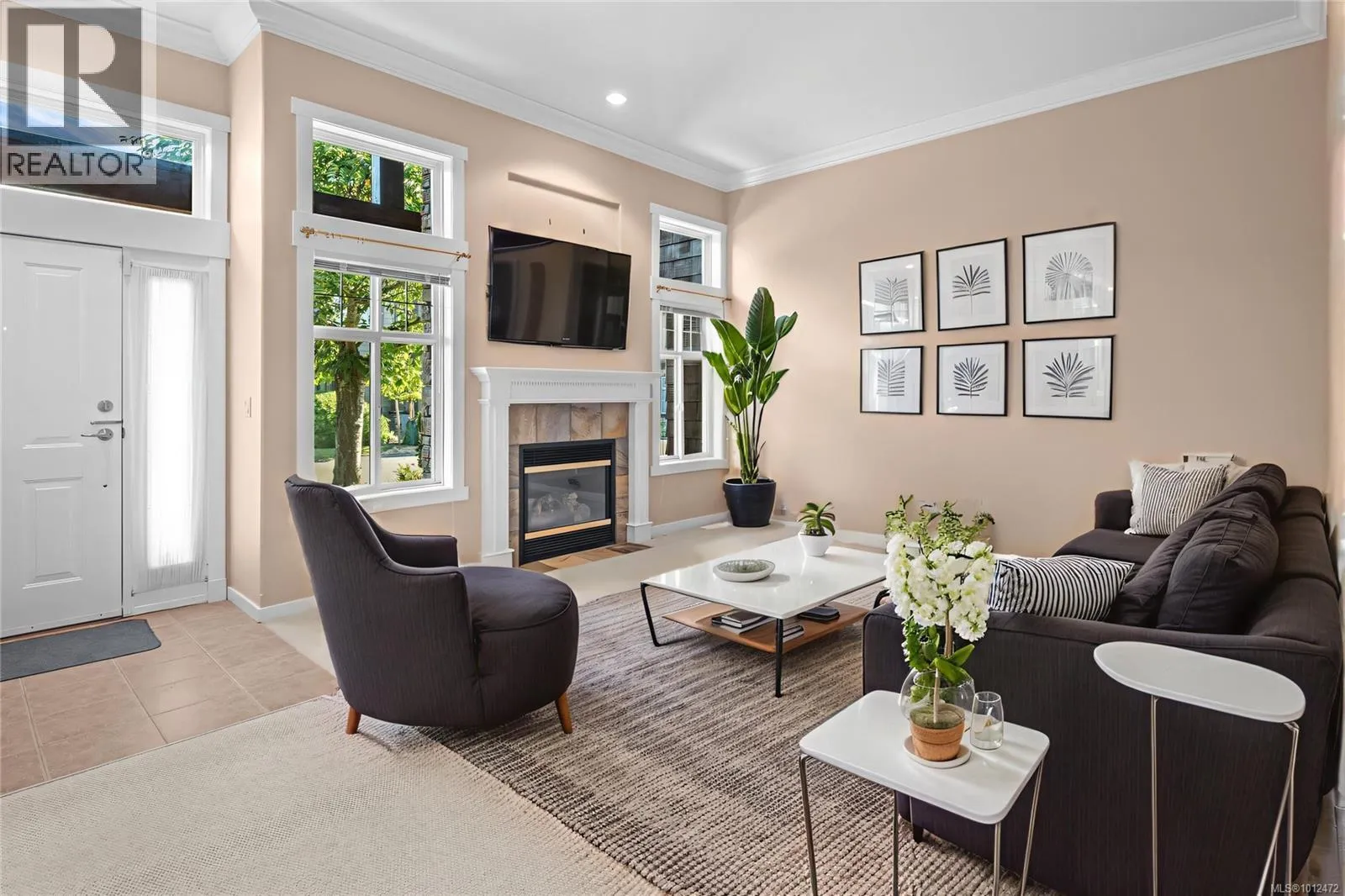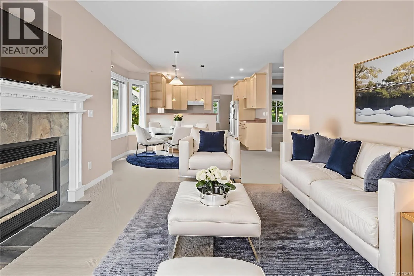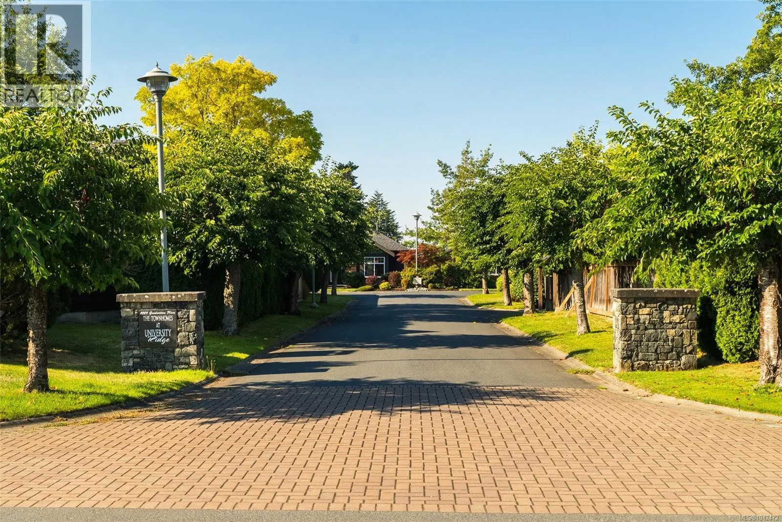 Exceptional standalone rancher style townhome in University Ridge â a rare no-shared-walls unit with over 1,500 square feet of single-level living at the center of a quiet Saanich no through road. Enjoy impressive 11' vaulted living room ceilings with gas fireplace, a separate formal dining room, and a bright kitchen that opens to a family room with a second gas fireplace â perfect for entertaining or relaxed evenings. This two bedroom, two bath home features a generous primary suite with walk-in closet and private ensuite with soaker tub; the second bedroom is ideal for guests or a home office. Step from the family room to a private landscaped patio for morning coffee or summer BBQs. Laundry room leads out to a single-car garage plus driveway parking. Forced air gas furnace in crawl space. Well-managed strata, steps to UVic, parks, Cadboro Bay, beaches and transit. Ideal for downsizers, professionals or families seeking the privacy of a detached home with townhouse convenience â move in ready! (id:27476)