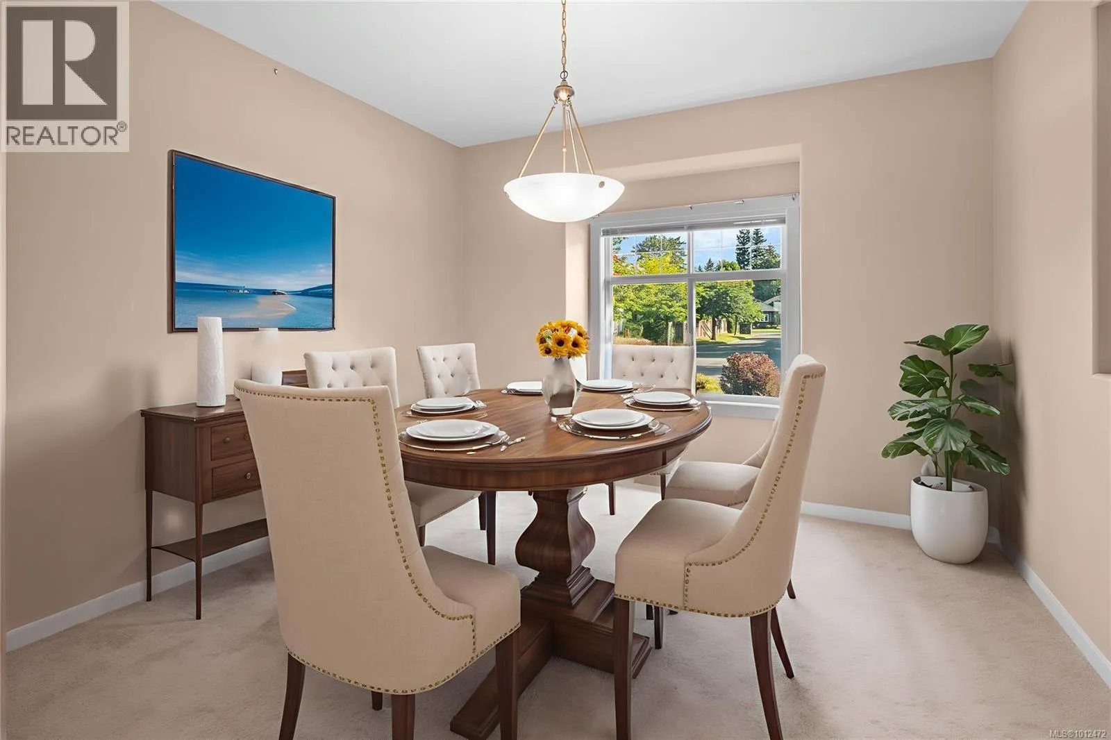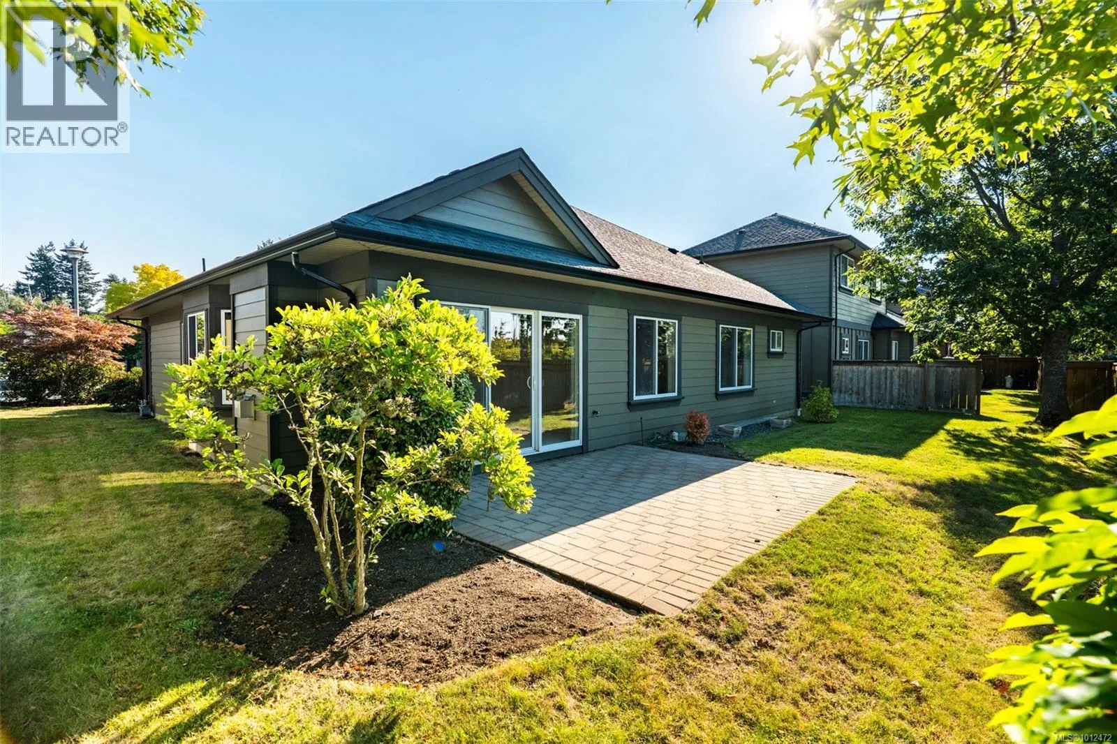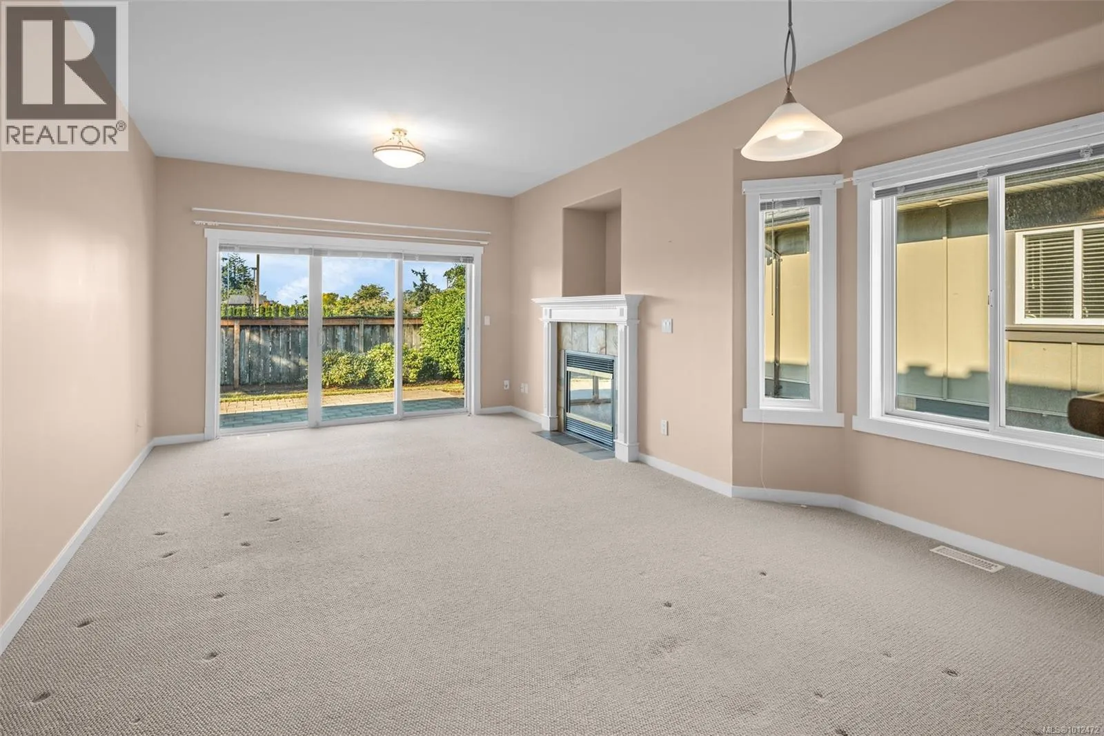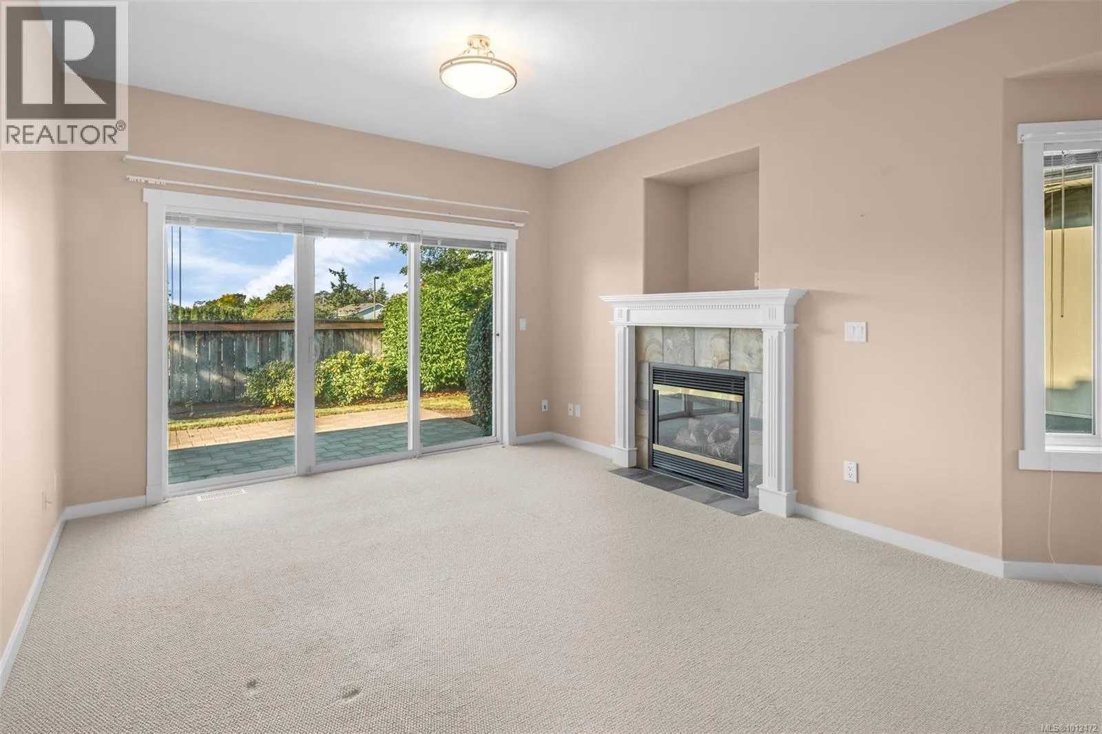 Exceptional standalone rancher style townhome in University Ridge â a rare no-shared-walls unit with over 1,500 square feet of single-level living at the center of a quiet Saanich no through road. Enjoy impressive 11' vaulted living room ceilings with gas fireplace, a separate formal dining room, and a bright kitchen that opens to a family room with a second gas fireplace â perfect for entertaining or relaxed evenings. This two bedroom, two bath home features a generous primary suite with walk-in closet and private ensuite with soaker tub; the second bedroom is ideal for guests or a home office. Step from the family room to a private landscaped patio for morning coffee or summer BBQs. Laundry room leads out to a single-car garage plus driveway parking. Forced air gas furnace in crawl space. Well-managed strata, steps to UVic, parks, Cadboro Bay, beaches and transit. Ideal for downsizers, professionals or families seeking the privacy of a detached home with townhouse convenience â move in ready! (id:27476)