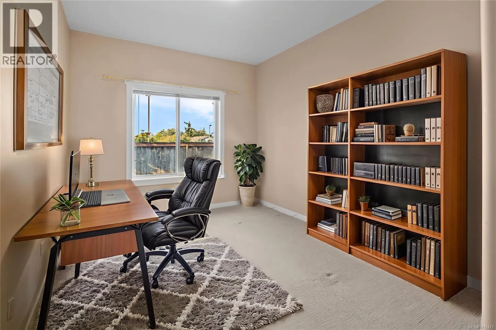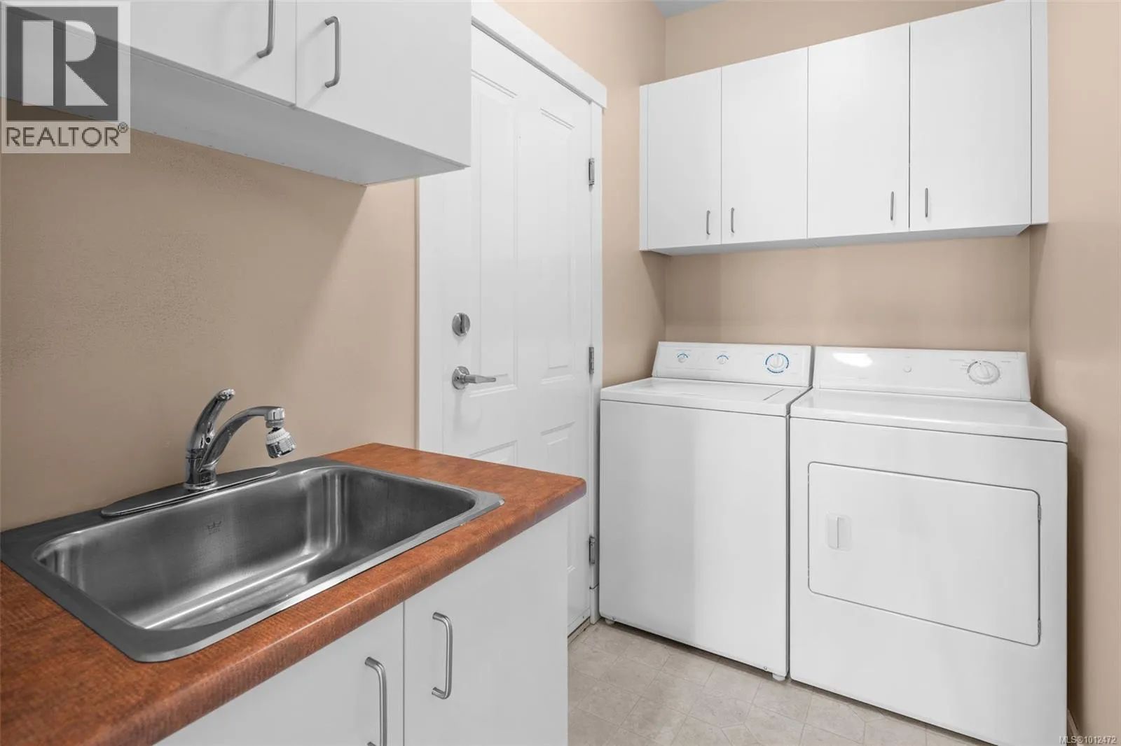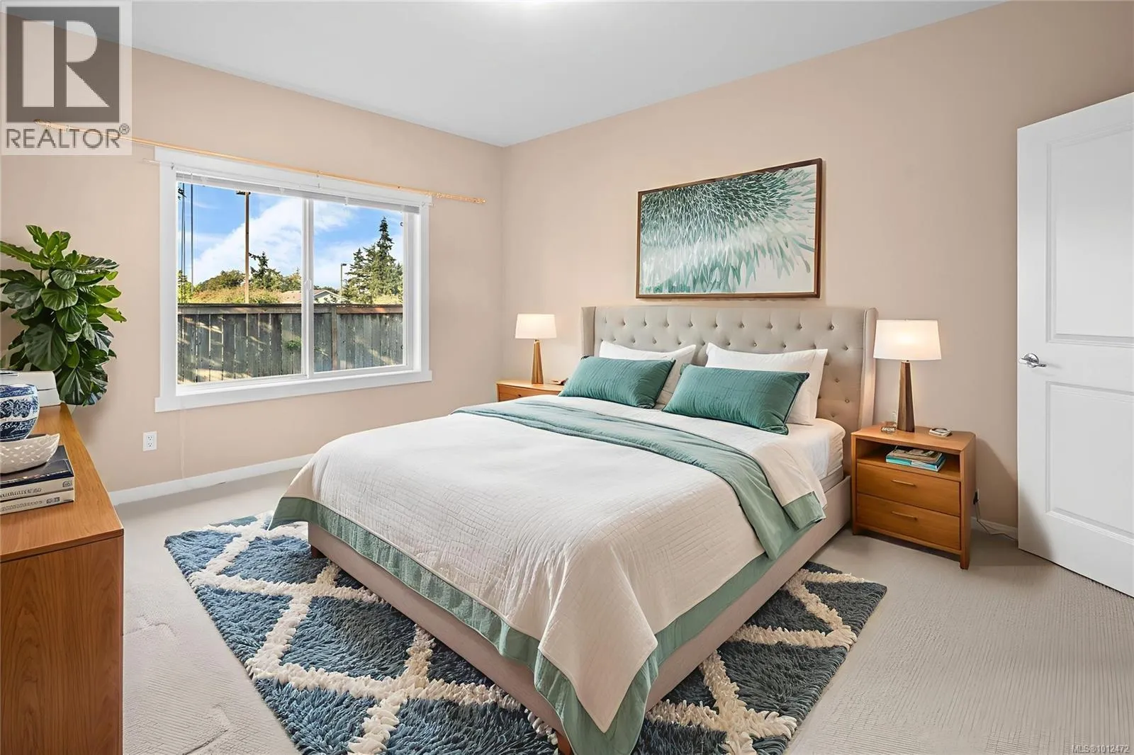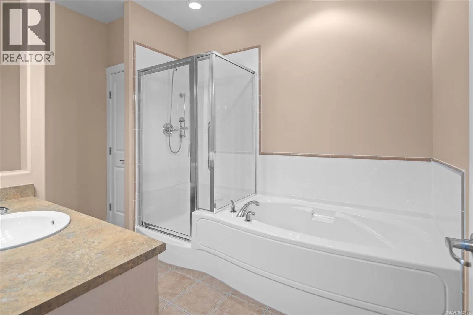 Exceptional standalone rancher style townhome in University Ridge â a rare no-shared-walls unit with over 1,500 square feet of single-level living at the center of a quiet Saanich no through road. Enjoy impressive 11' vaulted living room ceilings with gas fireplace, a separate formal dining room, and a bright kitchen that opens to a family room with a second gas fireplace â perfect for entertaining or relaxed evenings. This two bedroom, two bath home features a generous primary suite with walk-in closet and private ensuite with soaker tub; the second bedroom is ideal for guests or a home office. Step from the family room to a private landscaped patio for morning coffee or summer BBQs. Laundry room leads out to a single-car garage plus driveway parking. Forced air gas furnace in crawl space. Well-managed strata, steps to UVic, parks, Cadboro Bay, beaches and transit. Ideal for downsizers, professionals or families seeking the privacy of a detached home with townhouse convenience â move in ready! (id:27476)