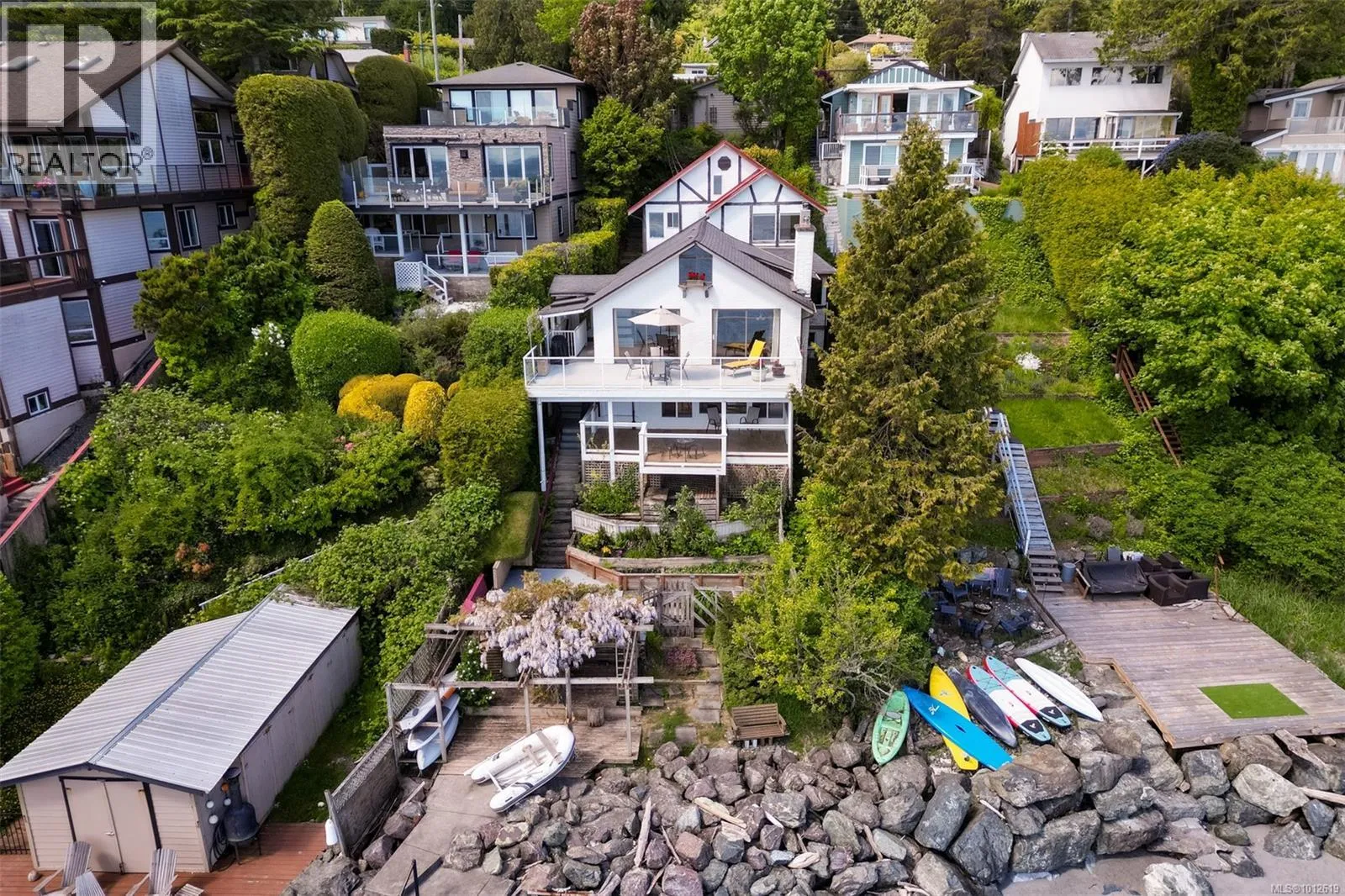 Imagine a life where the Pacific Ocean is your backyard. This unique Cordova Bay property is an ideal retreat, featuring three self-contained two-bedroom suites set on a secluded stretch of beach offering easy access to the water. Along with a new roof installed in 2023, each suite has its own distinct flair. Top-level suite, The Eagle, offers commanding, eagles-nest views of the coastline. Mid-level suite, The Snug, is full of character, with charming exposed beams, a spacious living room, bonus loft & huge private deck. Finally, Crashing Waves is the ground-floor suite where you can wake up to the sounds of the surf and step onto the beach in moments. All three units provide panoramic vistas of Mount Baker. This property presents incredible flexibility. You could live in one suite and rent out the other two on Airbnb for a significant income stream or lease all three. A great option for a multi-generational family or even multiple families looking for a piece of paradise together (id:27476)