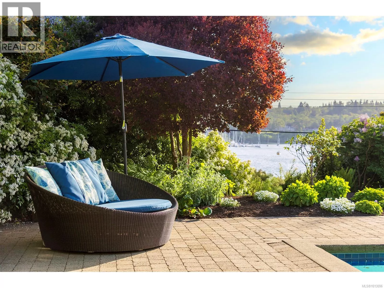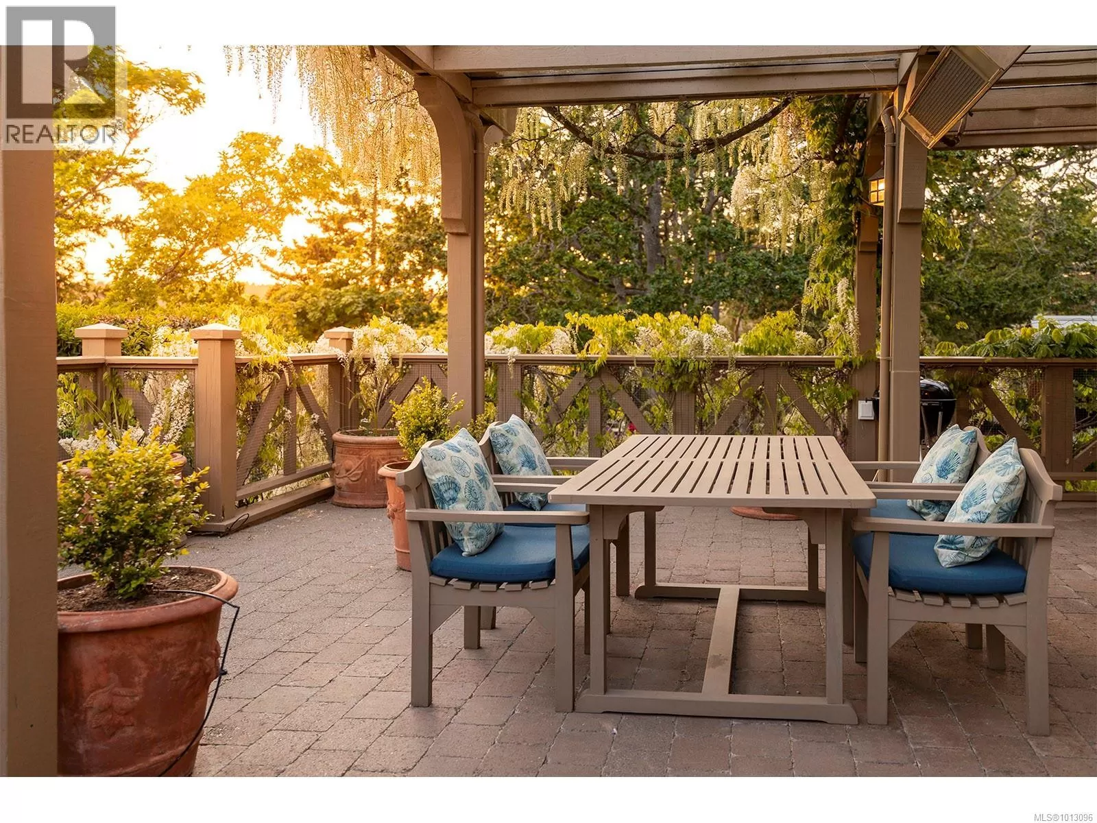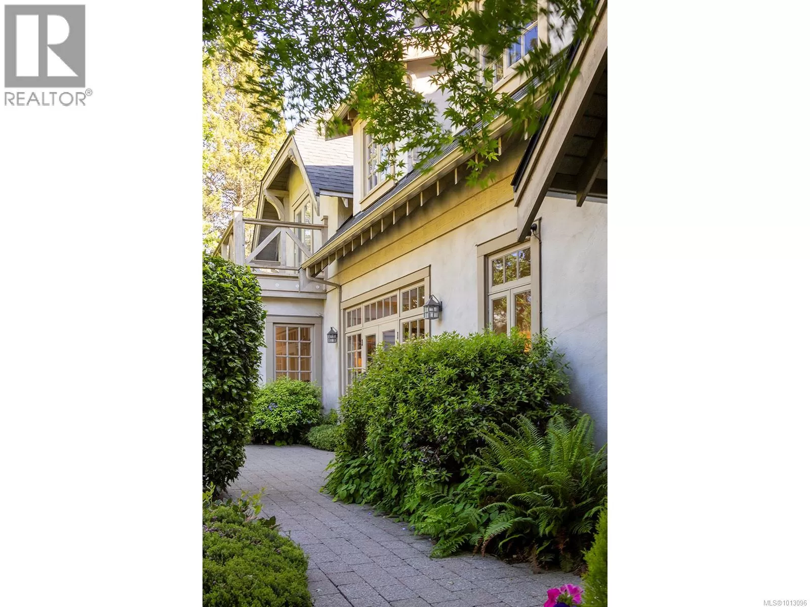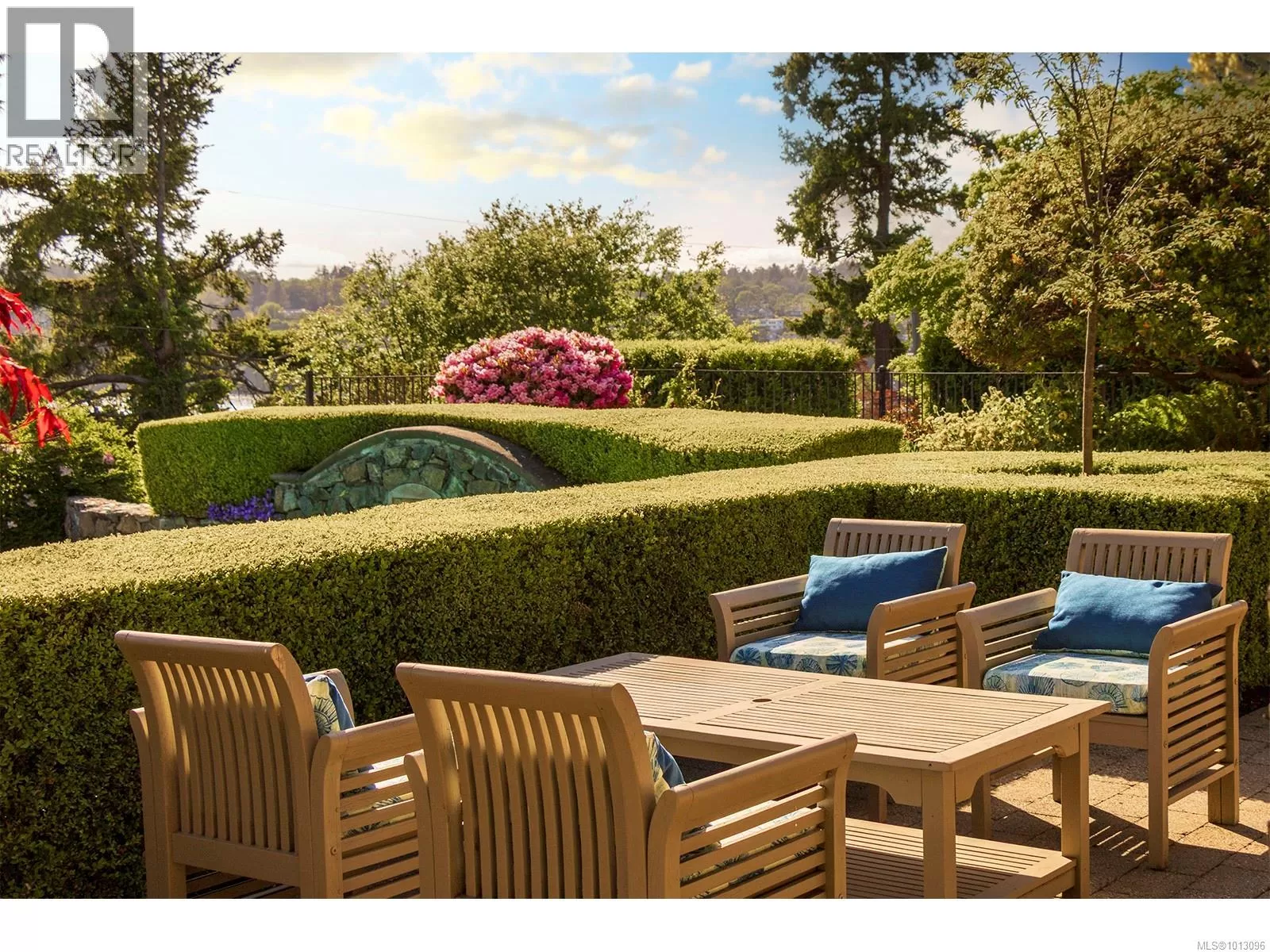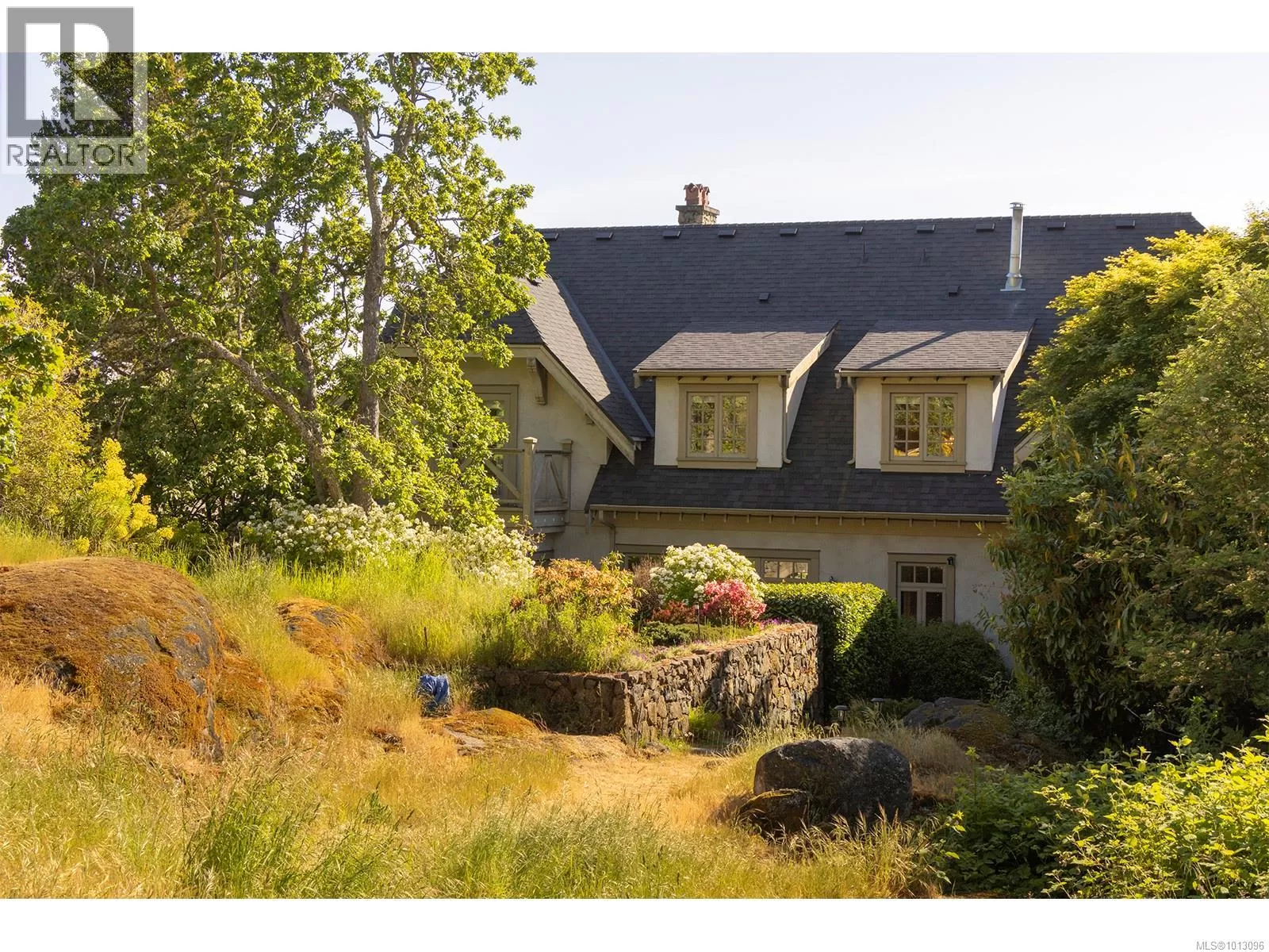 Situated in the heart of Ten Mile Point, this captivating custom residence blends timeless elegance with architectural mastery and the finest materials. Positioned high with views of Cadboro Bay, this .50-acre south-facing estate is the perfect setting for the 5,000+ sq. ft. home, complete with manicured gardens, stone walls, water features and a custom in-ground pool. Designed for seamless indoorâoutdoor living, the main floor offers a refined yet relaxed lifestyle, enhanced by the areaâs unique microclimate of warmer days & sun-filled evenings. Principal rooms grace the main level, with 4 bedrooms and 3 baths above, and an additional bed & bath below. The sumptuous primary retreat spans its own wing with a spa-inspired bath, fireplace, private sitting area and breathtaking ocean views from your bedside. A grand gourmet kitchen anchors the home with dining-area fireplace, expansive island and direct access to a wisteria-covered heated deck, expansive terraces and tranquil fountains. (id:27476)