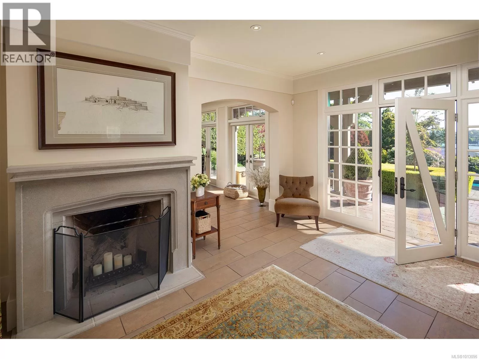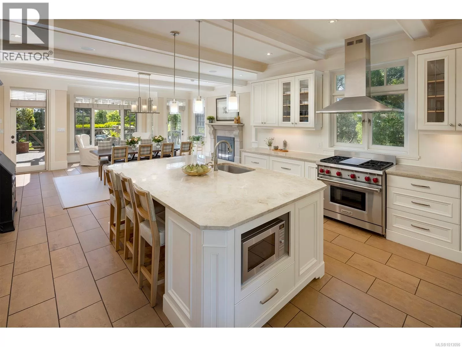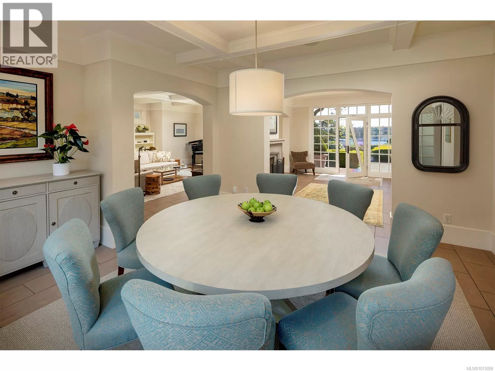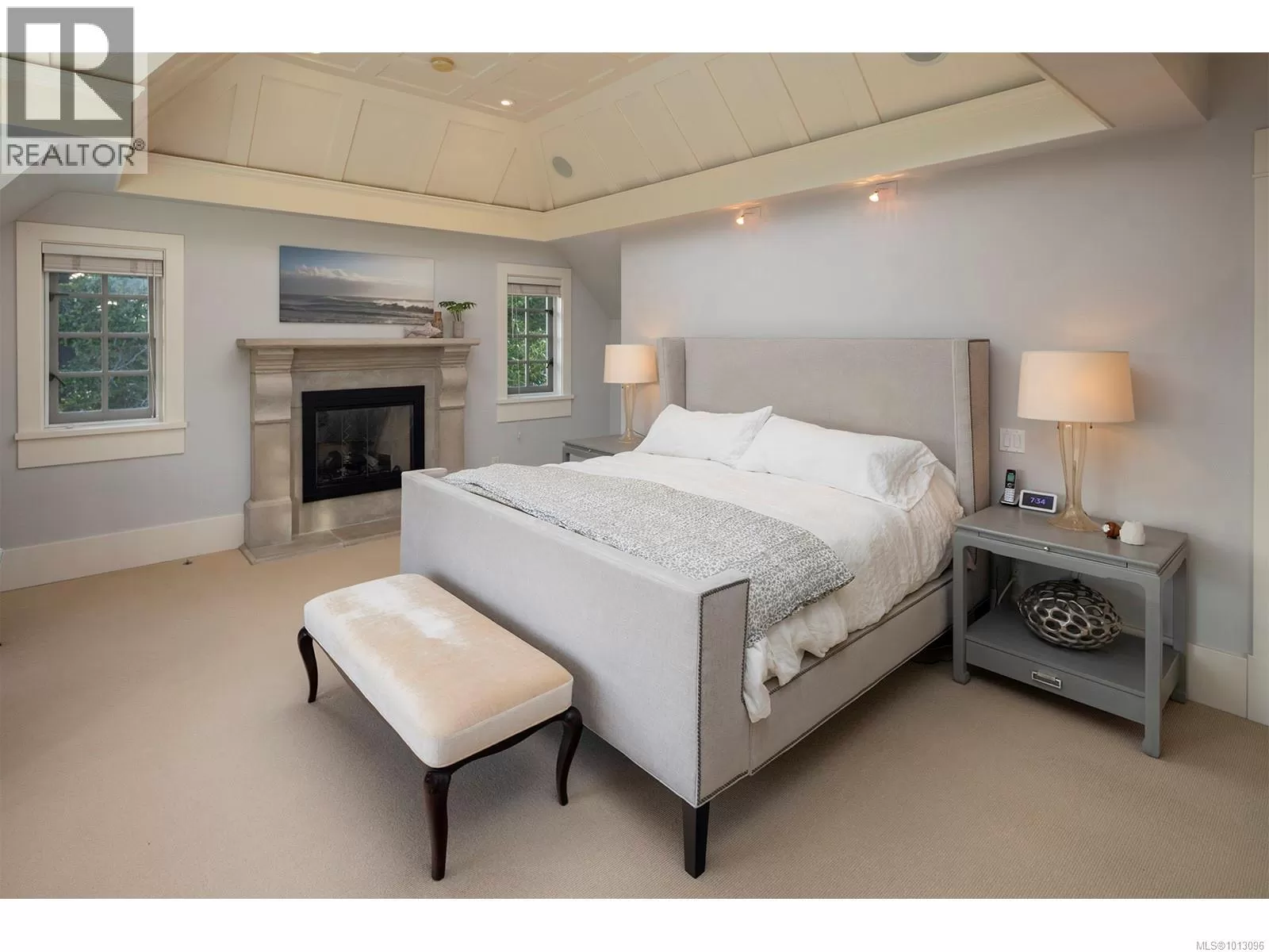 Situated in the heart of Ten Mile Point, this captivating custom residence blends timeless elegance with architectural mastery and the finest materials. Positioned high with views of Cadboro Bay, this .50-acre south-facing estate is the perfect setting for the 5,000+ sq. ft. home, complete with manicured gardens, stone walls, water features and a custom in-ground pool. Designed for seamless indoorâoutdoor living, the main floor offers a refined yet relaxed lifestyle, enhanced by the areaâs unique microclimate of warmer days & sun-filled evenings. Principal rooms grace the main level, with 4 bedrooms and 3 baths above, and an additional bed & bath below. The sumptuous primary retreat spans its own wing with a spa-inspired bath, fireplace, private sitting area and breathtaking ocean views from your bedside. A grand gourmet kitchen anchors the home with dining-area fireplace, expansive island and direct access to a wisteria-covered heated deck, expansive terraces and tranquil fountains. (id:27476)