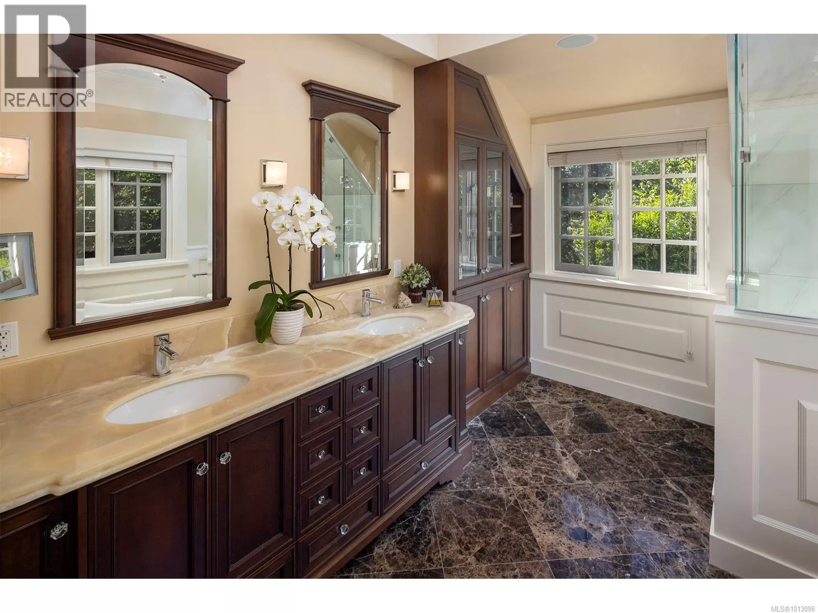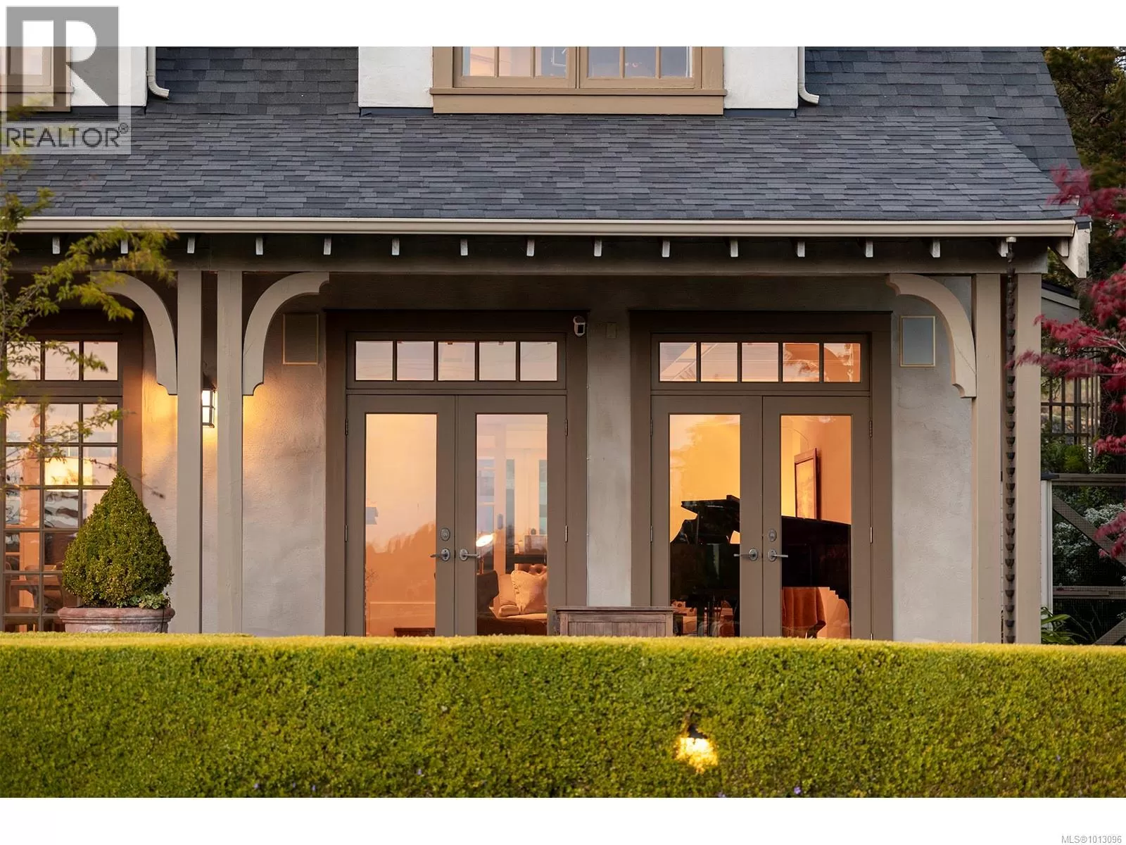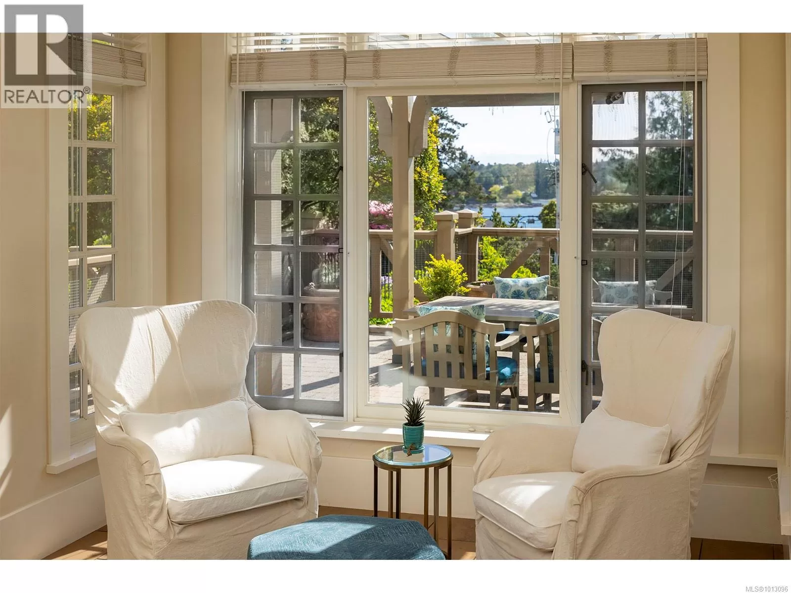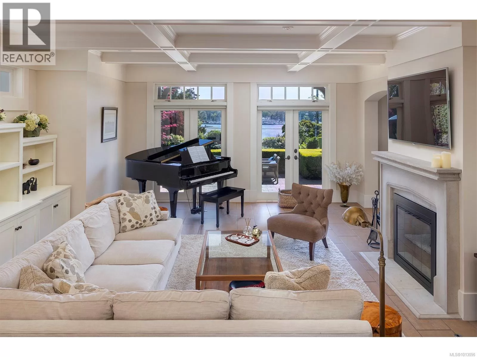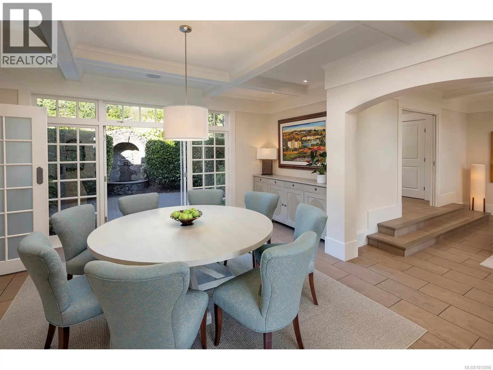 Situated in the heart of Ten Mile Point, this captivating custom residence blends timeless elegance with architectural mastery and the finest materials. Positioned high with views of Cadboro Bay, this .50-acre south-facing estate is the perfect setting for the 5,000+ sq. ft. home, complete with manicured gardens, stone walls, water features and a custom in-ground pool. Designed for seamless indoorâoutdoor living, the main floor offers a refined yet relaxed lifestyle, enhanced by the areaâs unique microclimate of warmer days & sun-filled evenings. Principal rooms grace the main level, with 4 bedrooms and 3 baths above, and an additional bed & bath below. The sumptuous primary retreat spans its own wing with a spa-inspired bath, fireplace, private sitting area and breathtaking ocean views from your bedside. A grand gourmet kitchen anchors the home with dining-area fireplace, expansive island and direct access to a wisteria-covered heated deck, expansive terraces and tranquil fountains. (id:27476)
