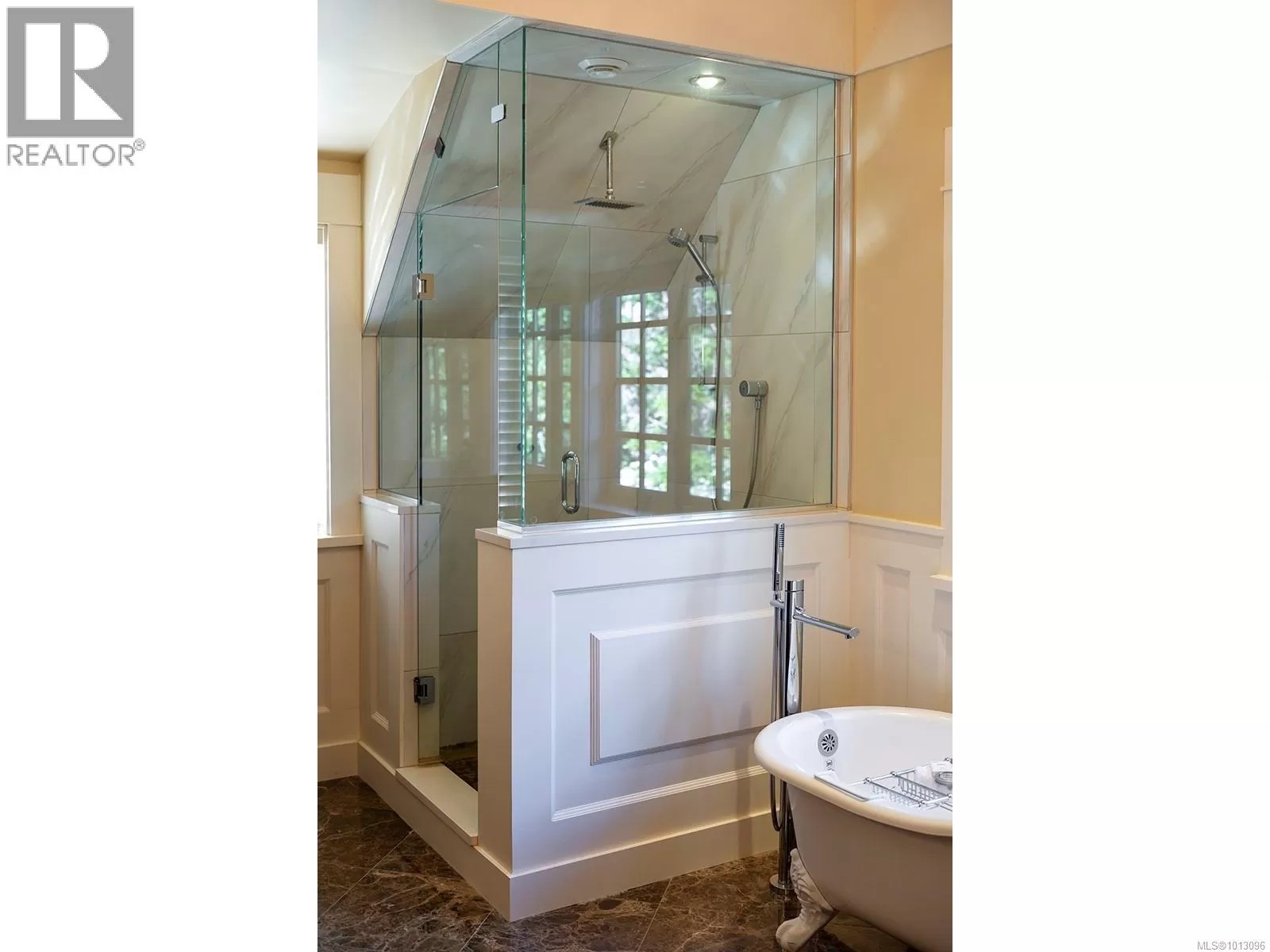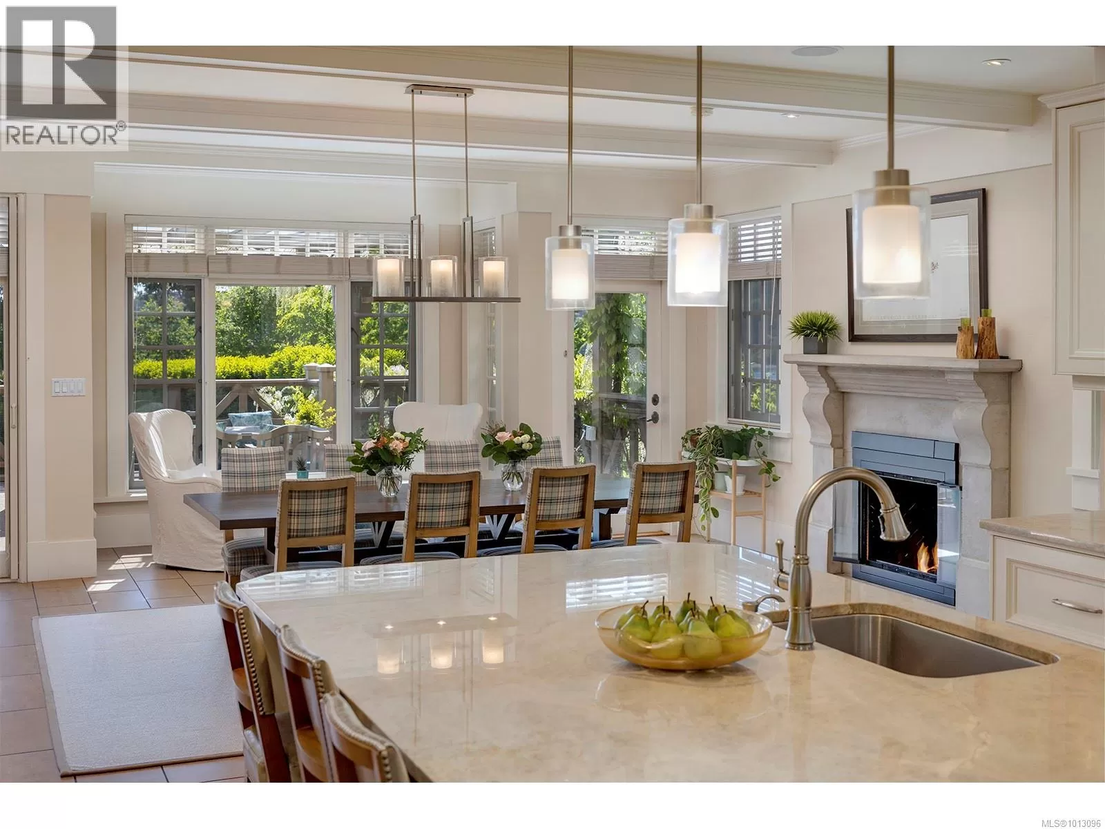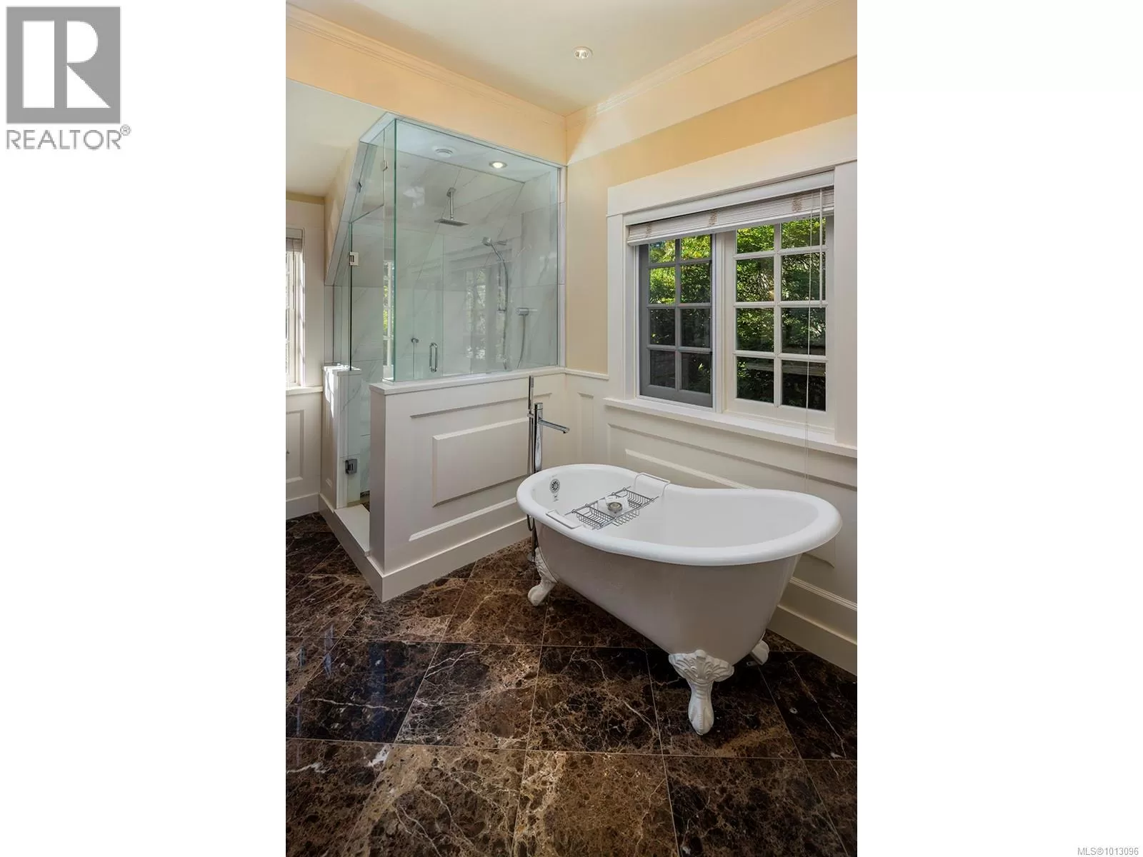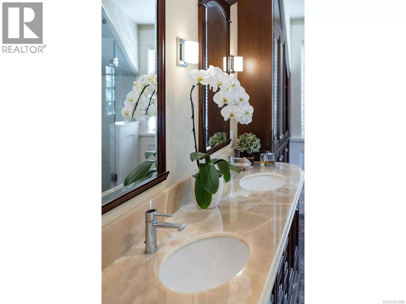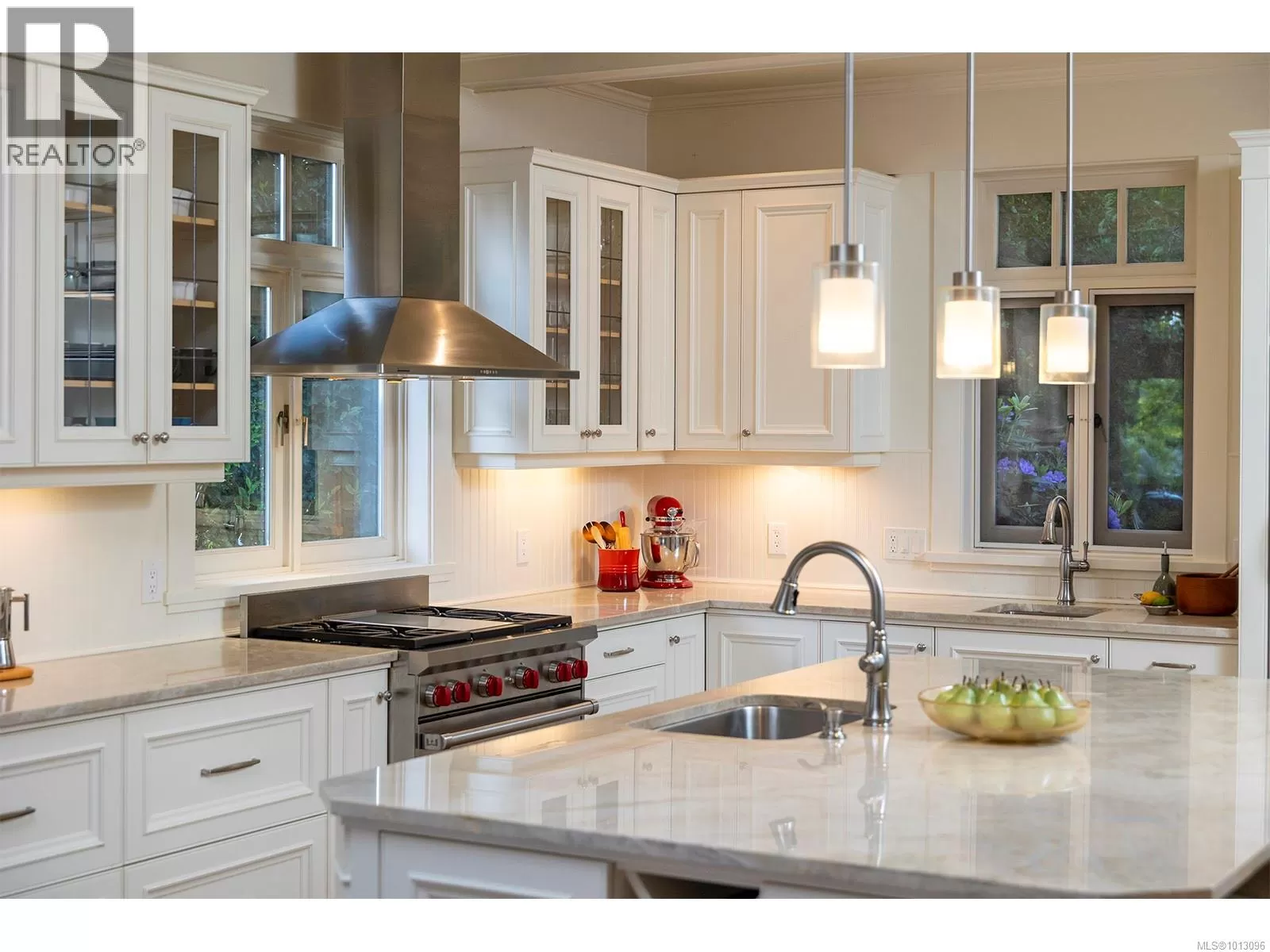 Situated in the heart of Ten Mile Point, this captivating custom residence blends timeless elegance with architectural mastery and the finest materials. Positioned high with views of Cadboro Bay, this .50-acre south-facing estate is the perfect setting for the 5,000+ sq. ft. home, complete with manicured gardens, stone walls, water features and a custom in-ground pool. Designed for seamless indoorâoutdoor living, the main floor offers a refined yet relaxed lifestyle, enhanced by the areaâs unique microclimate of warmer days & sun-filled evenings. Principal rooms grace the main level, with 4 bedrooms and 3 baths above, and an additional bed & bath below. The sumptuous primary retreat spans its own wing with a spa-inspired bath, fireplace, private sitting area and breathtaking ocean views from your bedside. A grand gourmet kitchen anchors the home with dining-area fireplace, expansive island and direct access to a wisteria-covered heated deck, expansive terraces and tranquil fountains. (id:27476)