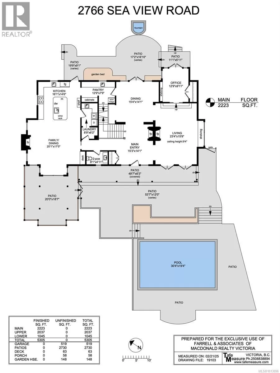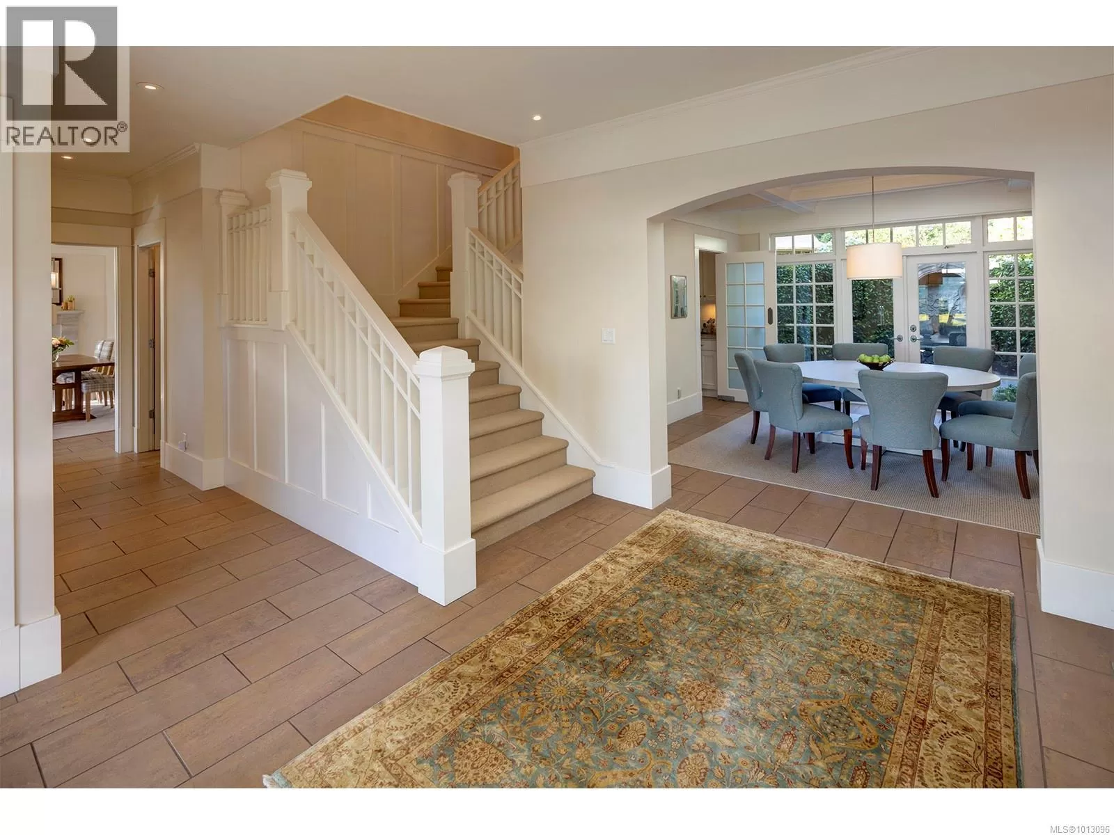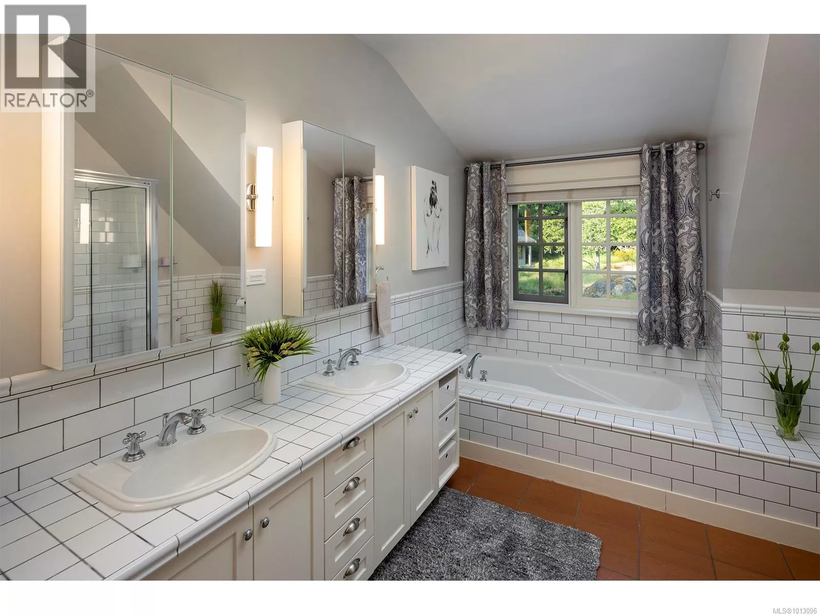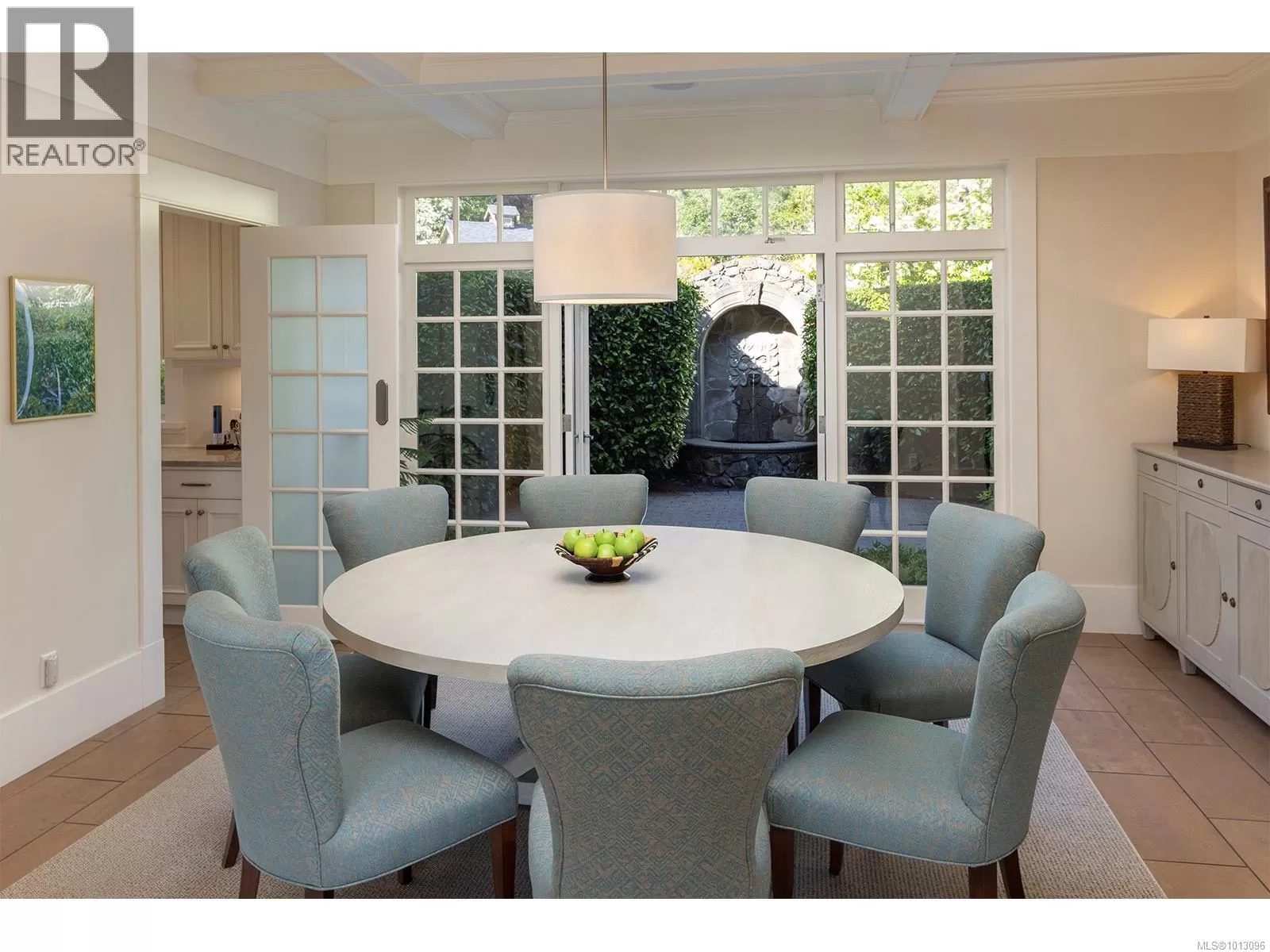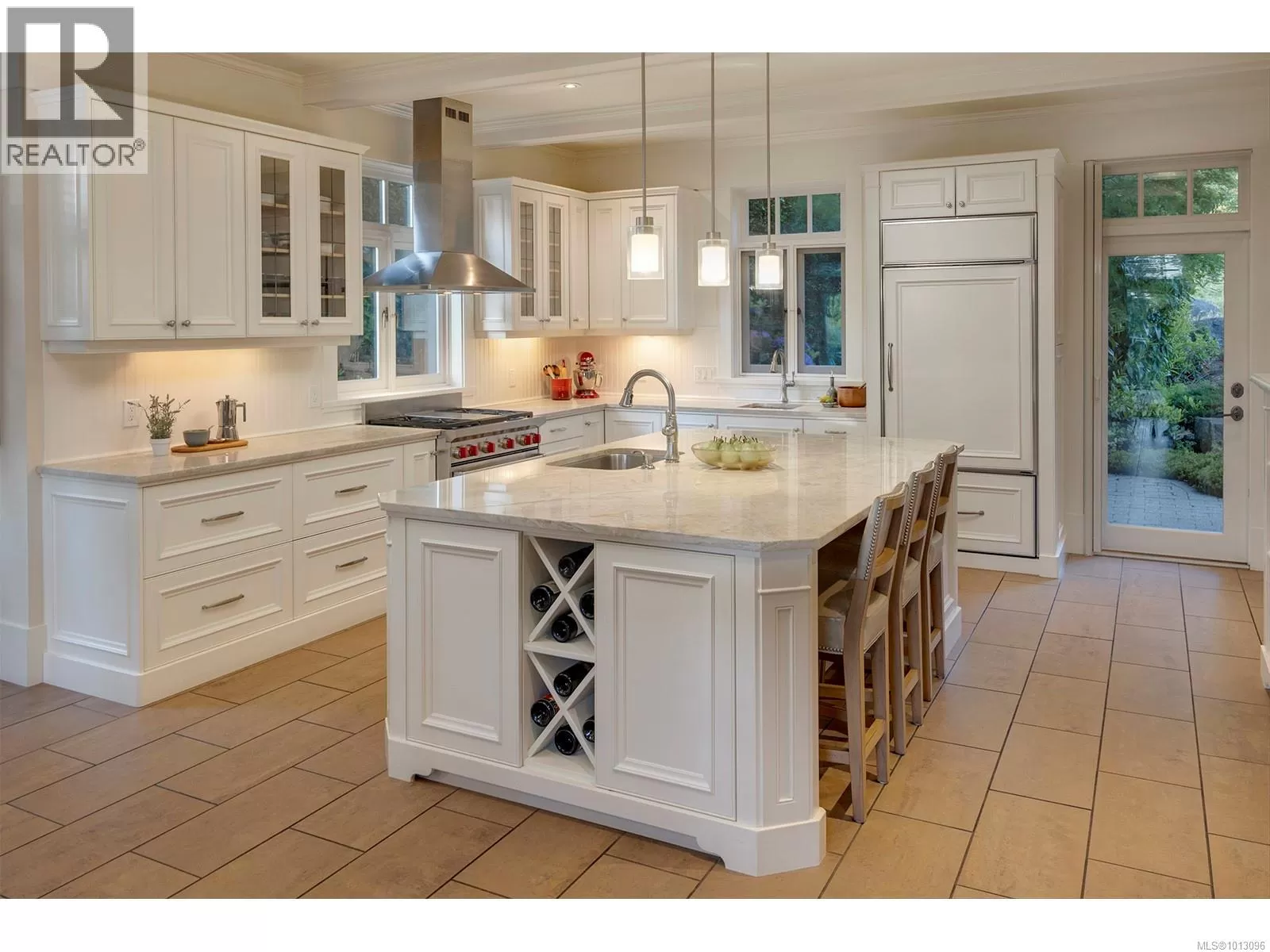 Situated in the heart of Ten Mile Point, this captivating custom residence blends timeless elegance with architectural mastery and the finest materials. Positioned high with views of Cadboro Bay, this .50-acre south-facing estate is the perfect setting for the 5,000+ sq. ft. home, complete with manicured gardens, stone walls, water features and a custom in-ground pool. Designed for seamless indoorâoutdoor living, the main floor offers a refined yet relaxed lifestyle, enhanced by the areaâs unique microclimate of warmer days & sun-filled evenings. Principal rooms grace the main level, with 4 bedrooms and 3 baths above, and an additional bed & bath below. The sumptuous primary retreat spans its own wing with a spa-inspired bath, fireplace, private sitting area and breathtaking ocean views from your bedside. A grand gourmet kitchen anchors the home with dining-area fireplace, expansive island and direct access to a wisteria-covered heated deck, expansive terraces and tranquil fountains. (id:27476)