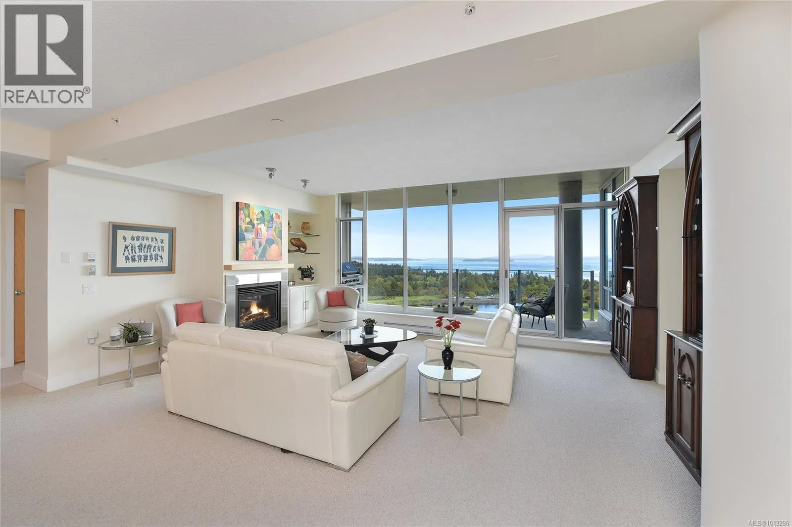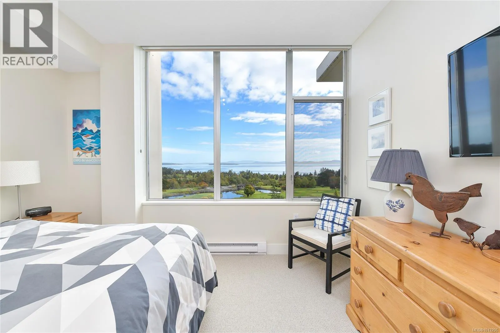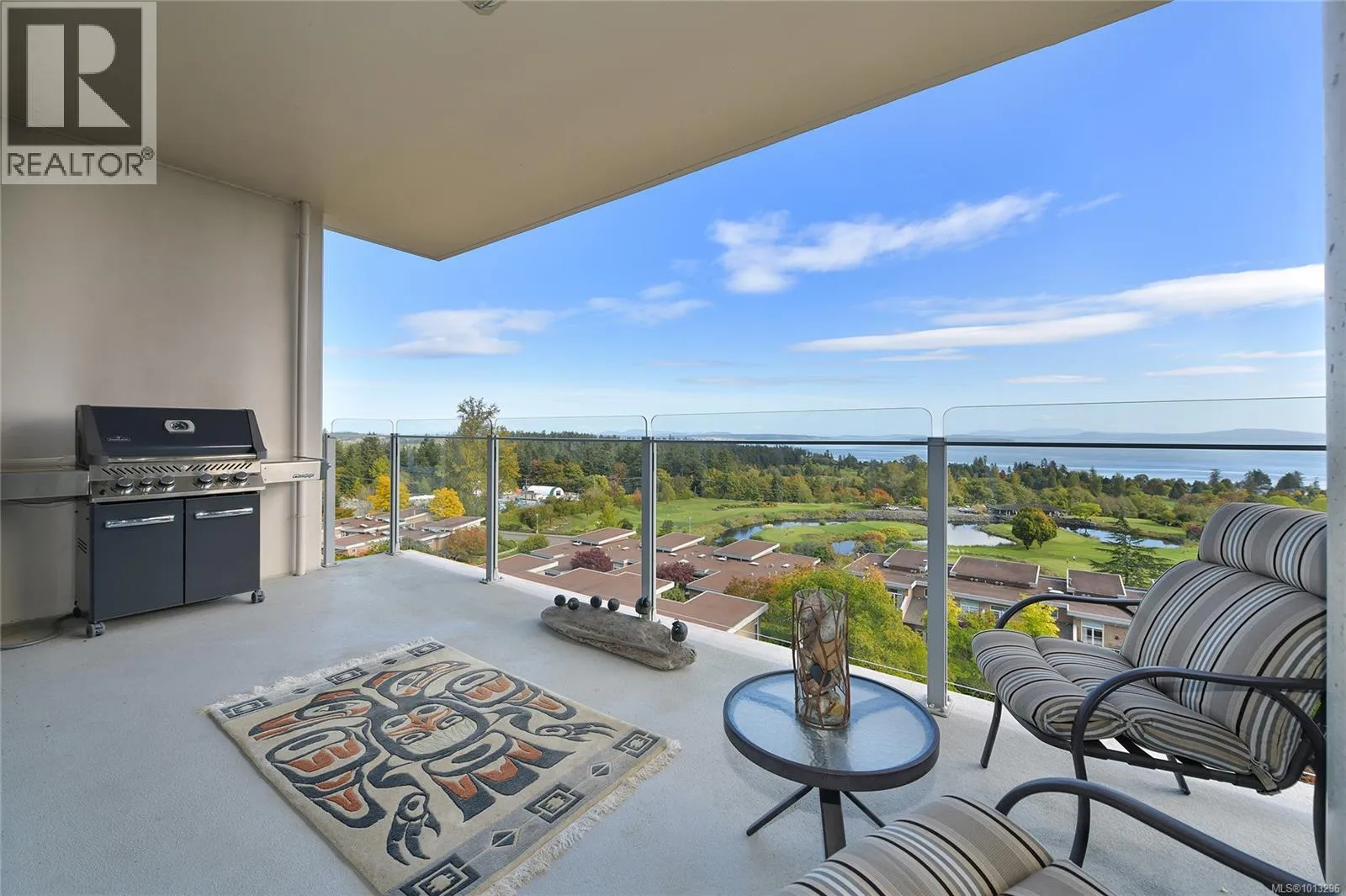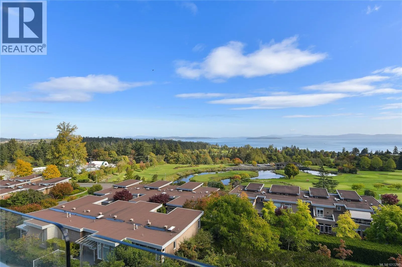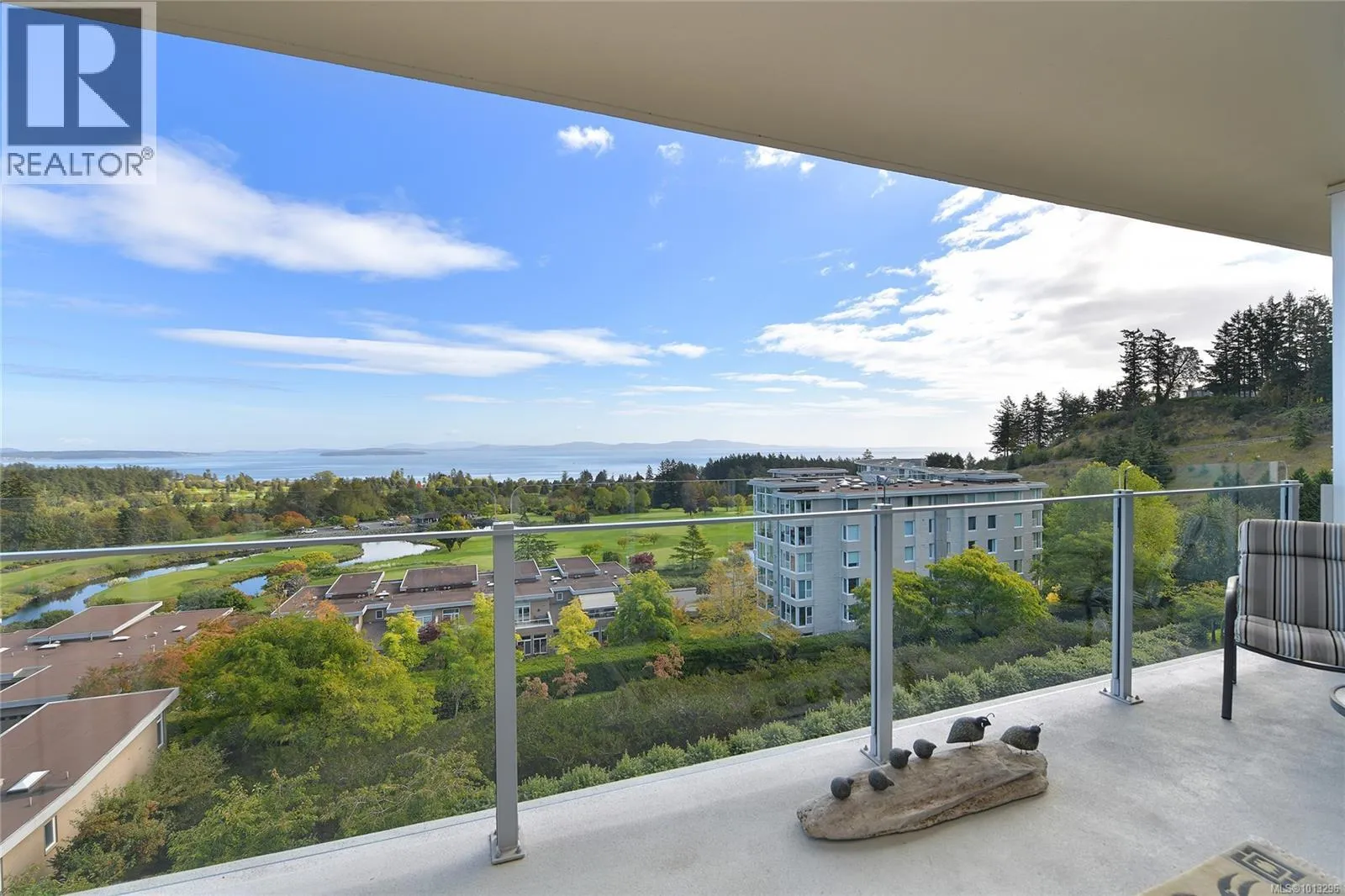 SAYWARD HILL offers Victoria's best VIEWS & LIFESTYLE, overlooking world-class golf at Cordova Bay, sandy beaches, walking/biking trails, shops at Mattick's Farm all nearby. This premiere, 2008 JAWL DEV. concrete/steel building is sought-after with its spectacular views, amazing layout, quality finishing and perfect positioning. An elegant home, meticulously maintained offering 2BD, 2BA, Media Room plus Home Office in 1,856sf, with designer inspired updates inc: paint, wool carpeting, lighting, motorized blinds, appliances, HWT and move-in ready! No compromising with the spacious kitchen, 11' granite island, gas cooktop, eating bar and gas BBQ outlet for alfresco dining on the covered balcony offering views of Mt. Baker, Hunt Valley, the islands and mountains beyond. Retreat in the luxurious primary bedroom with access to the balcony, inspiring views and elegant ensuite with soaker tub, separate shower, dual sinks and marble counter. Secure U/G parking with EV Charging & storage too! (id:27476)