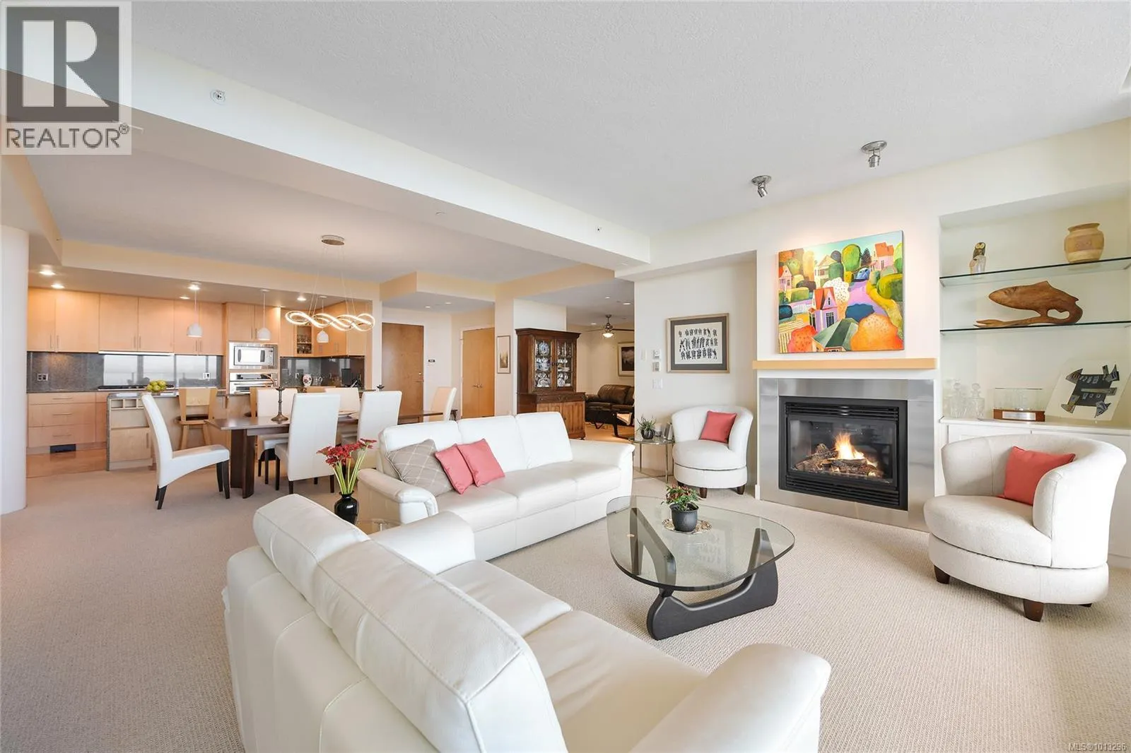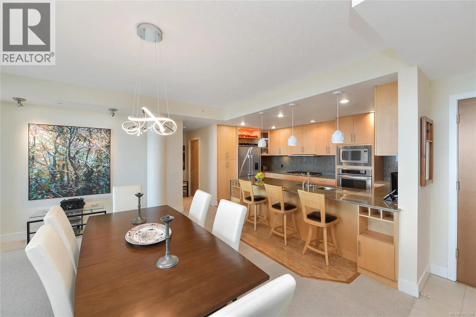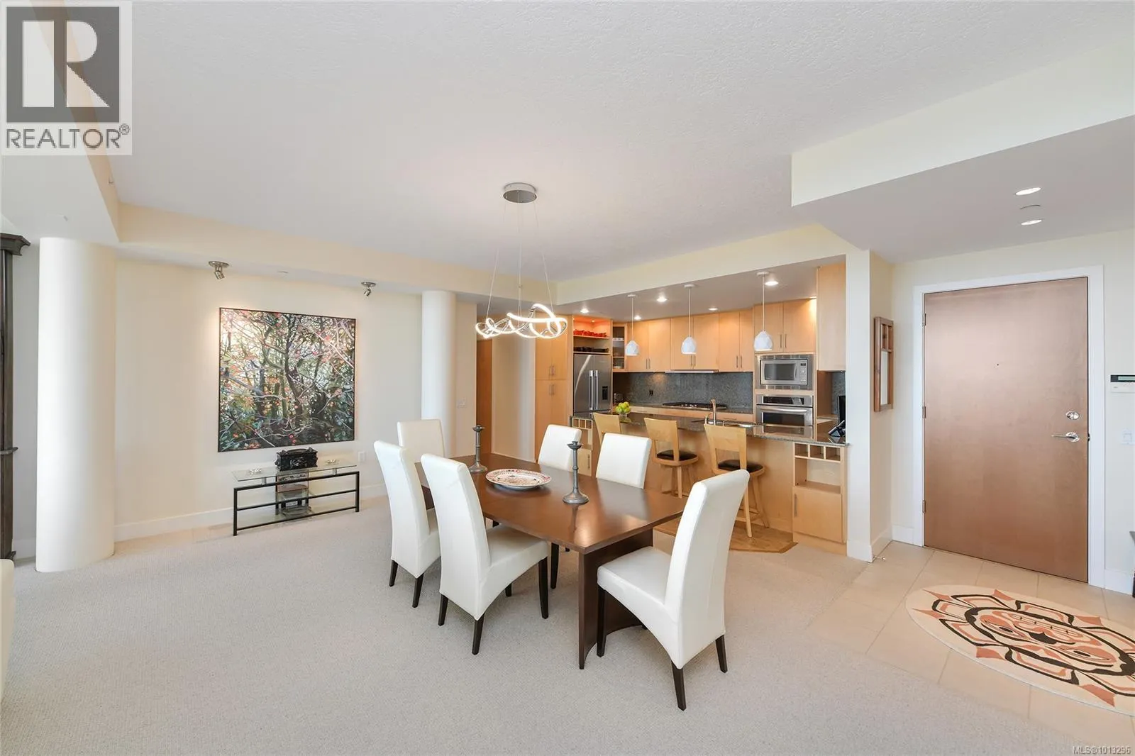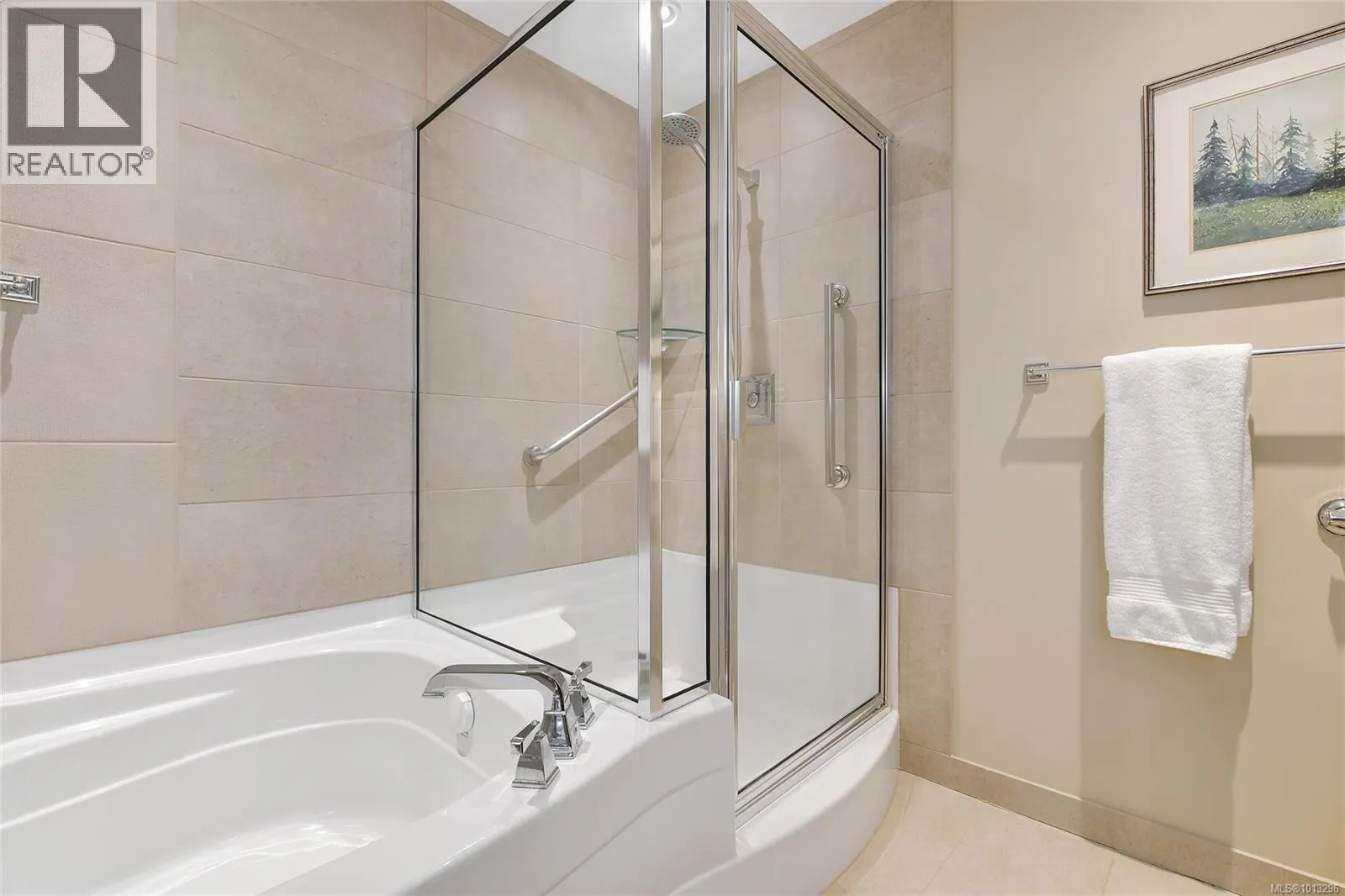 SAYWARD HILL offers Victoria's best VIEWS & LIFESTYLE, overlooking world-class golf at Cordova Bay, sandy beaches, walking/biking trails, shops at Mattick's Farm all nearby. This premiere, 2008 JAWL DEV. concrete/steel building is sought-after with its spectacular views, amazing layout, quality finishing and perfect positioning. An elegant home, meticulously maintained offering 2BD, 2BA, Media Room plus Home Office in 1,856sf, with designer inspired updates inc: paint, wool carpeting, lighting, motorized blinds, appliances, HWT and move-in ready! No compromising with the spacious kitchen, 11' granite island, gas cooktop, eating bar and gas BBQ outlet for alfresco dining on the covered balcony offering views of Mt. Baker, Hunt Valley, the islands and mountains beyond. Retreat in the luxurious primary bedroom with access to the balcony, inspiring views and elegant ensuite with soaker tub, separate shower, dual sinks and marble counter. Secure U/G parking with EV Charging & storage too! (id:27476)