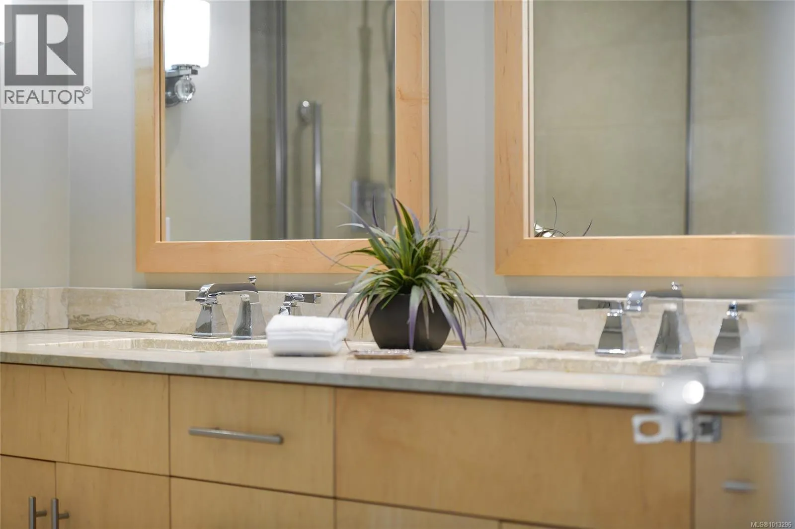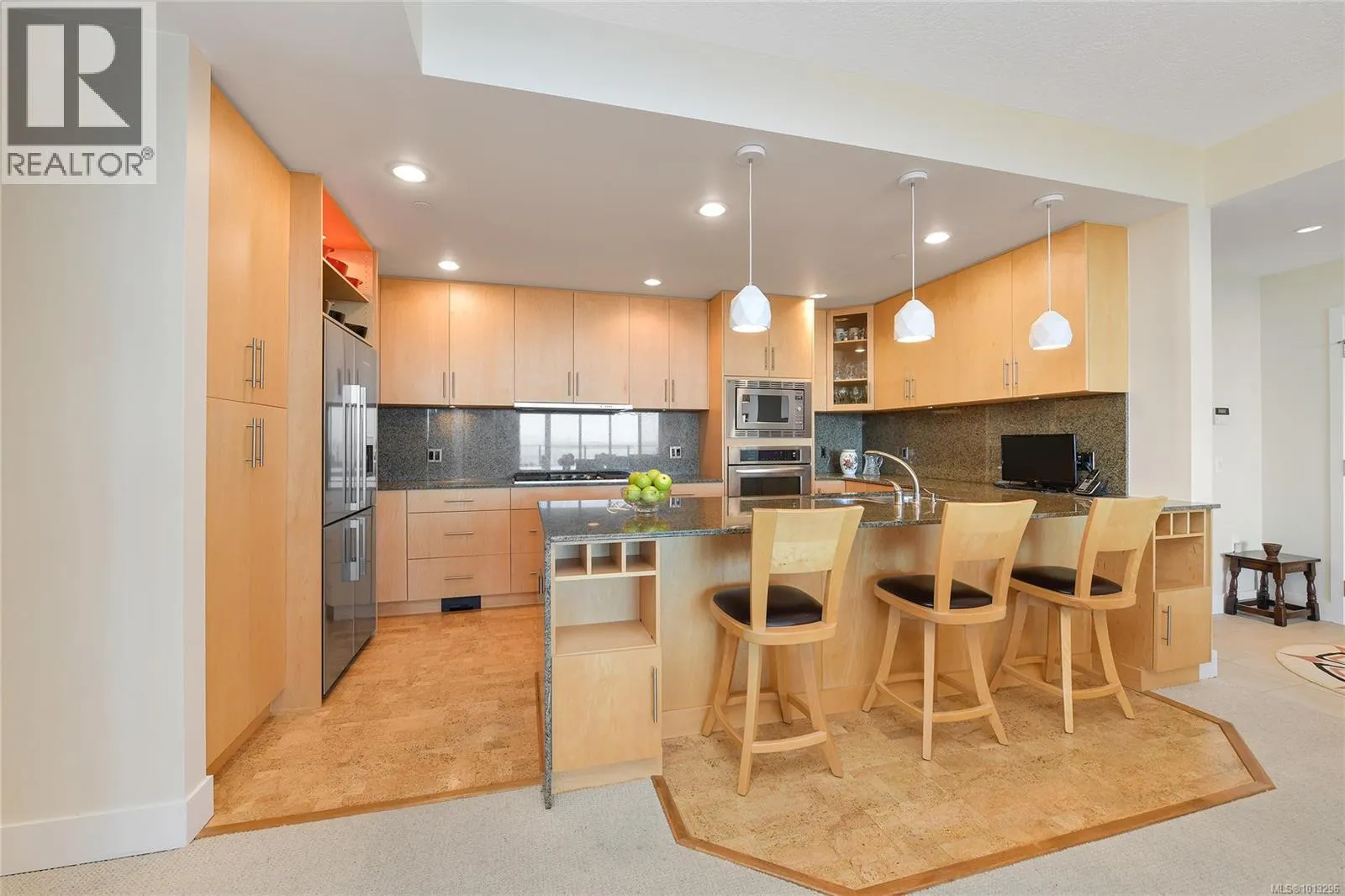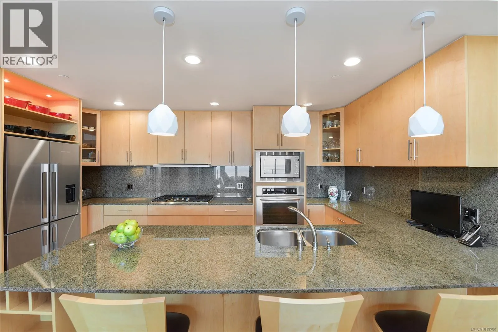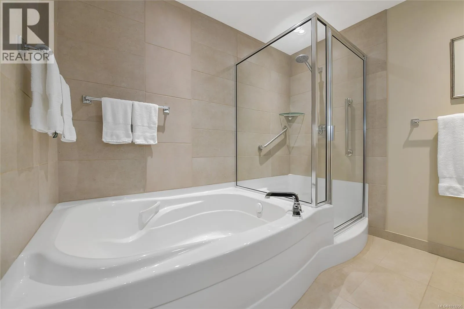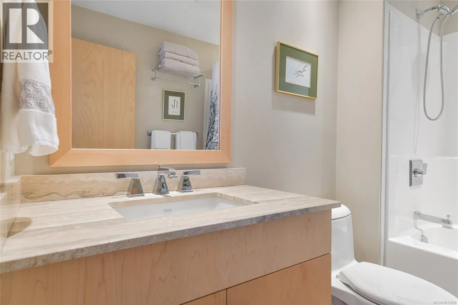 SAYWARD HILL offers Victoria's best VIEWS & LIFESTYLE, overlooking world-class golf at Cordova Bay, sandy beaches, walking/biking trails, shops at Mattick's Farm all nearby. This premiere, 2008 JAWL DEV. concrete/steel building is sought-after with its spectacular views, amazing layout, quality finishing and perfect positioning. An elegant home, meticulously maintained offering 2BD, 2BA, Media Room plus Home Office in 1,856sf, with designer inspired updates inc: paint, wool carpeting, lighting, motorized blinds, appliances, HWT and move-in ready! No compromising with the spacious kitchen, 11' granite island, gas cooktop, eating bar and gas BBQ outlet for alfresco dining on the covered balcony offering views of Mt. Baker, Hunt Valley, the islands and mountains beyond. Retreat in the luxurious primary bedroom with access to the balcony, inspiring views and elegant ensuite with soaker tub, separate shower, dual sinks and marble counter. Secure U/G parking with EV Charging & storage too! (id:27476)