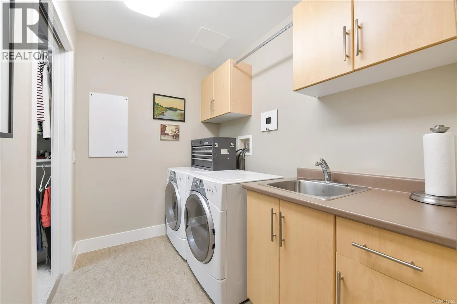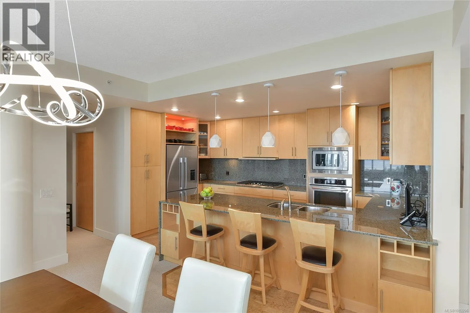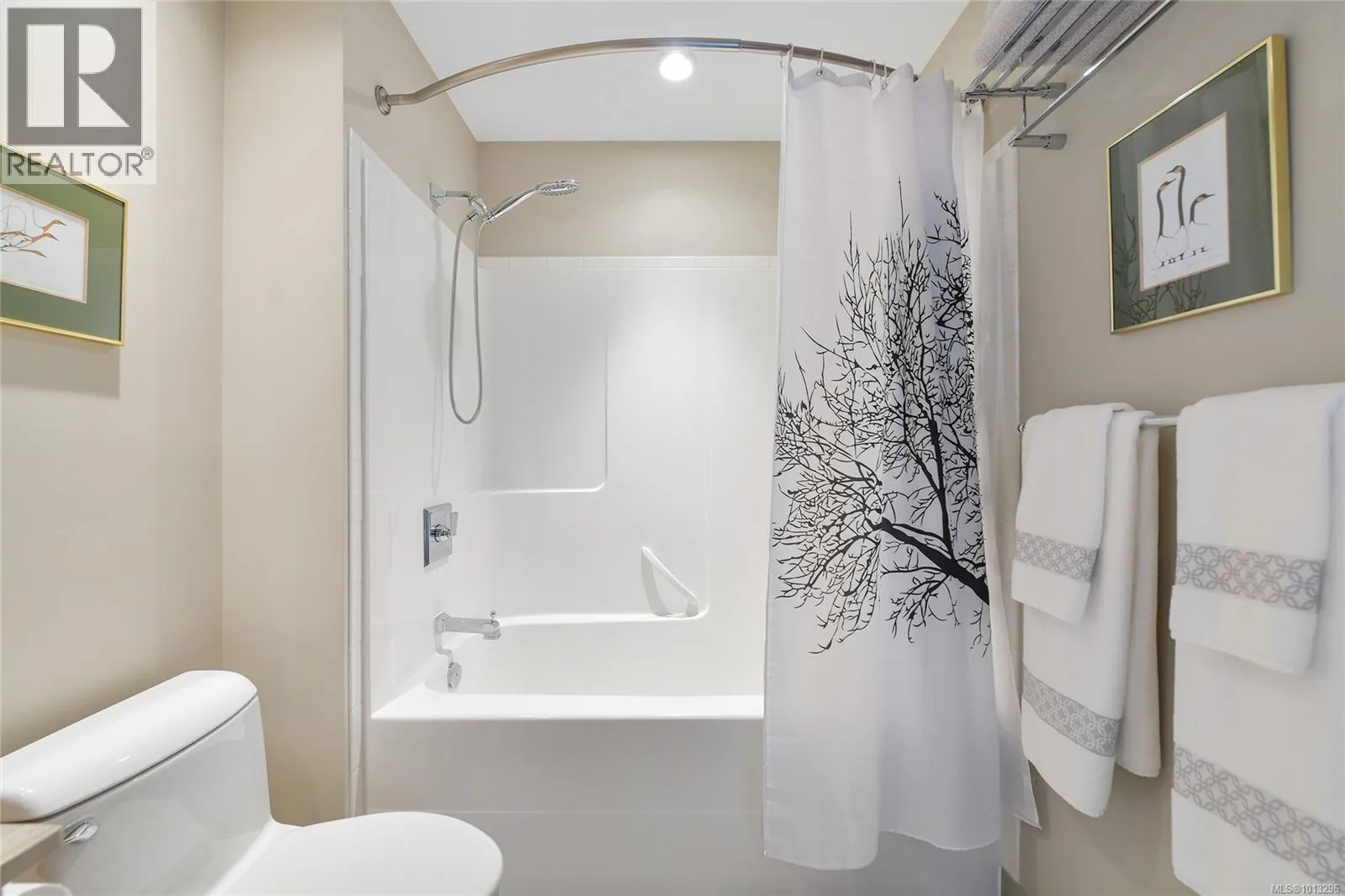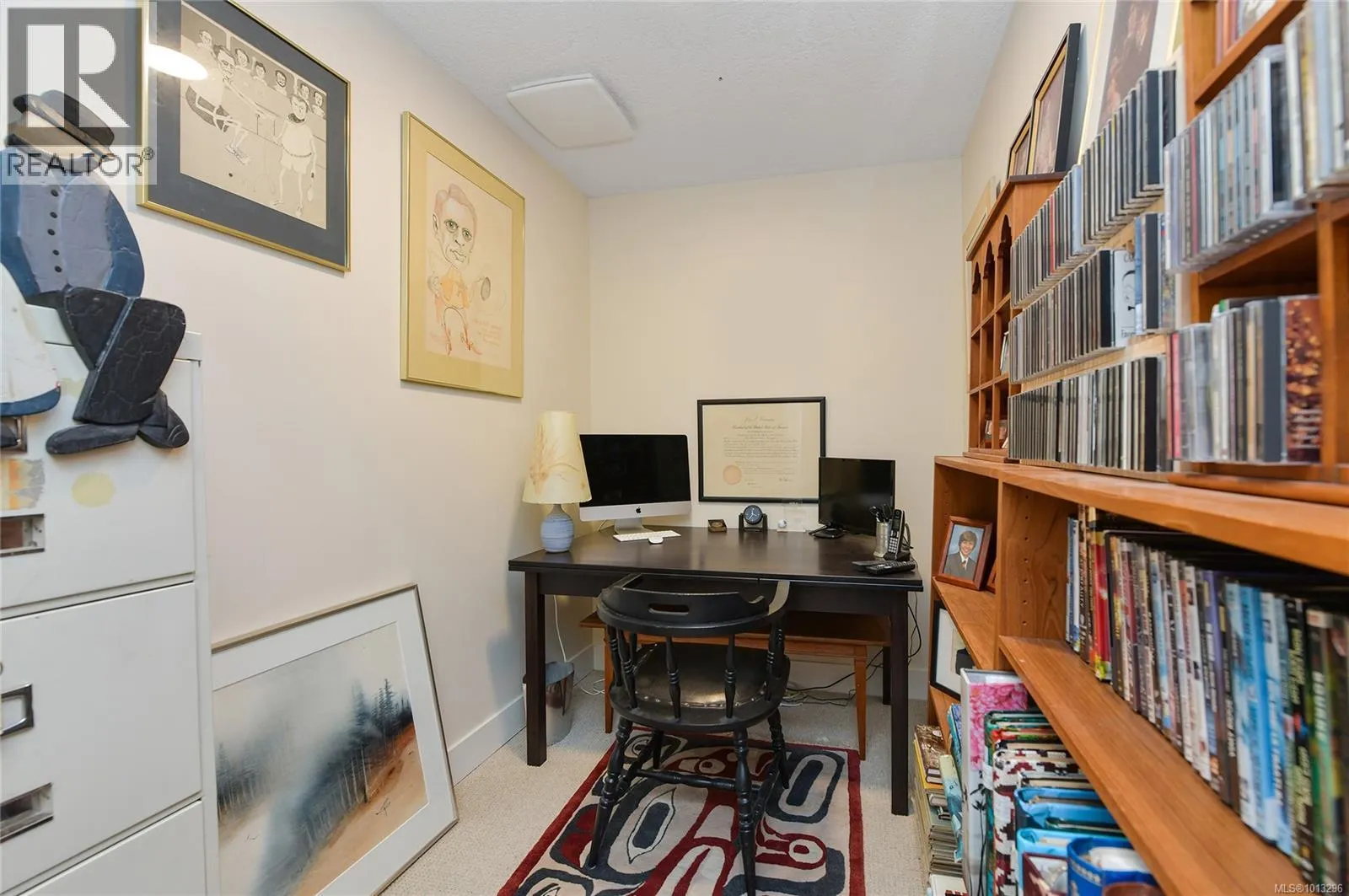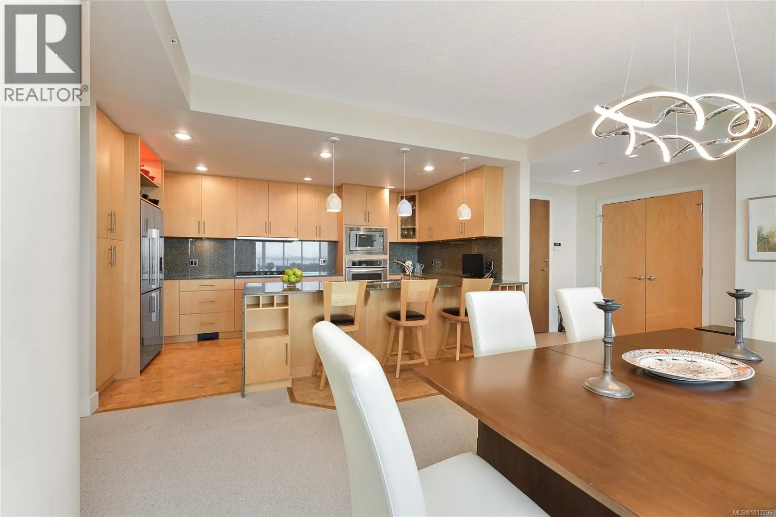 SAYWARD HILL offers Victoria's best VIEWS & LIFESTYLE, overlooking world-class golf at Cordova Bay, sandy beaches, walking/biking trails, shops at Mattick's Farm all nearby. This premiere, 2008 JAWL DEV. concrete/steel building is sought-after with its spectacular views, amazing layout, quality finishing and perfect positioning. An elegant home, meticulously maintained offering 2BD, 2BA, Media Room plus Home Office in 1,856sf, with designer inspired updates inc: paint, wool carpeting, lighting, motorized blinds, appliances, HWT and move-in ready! No compromising with the spacious kitchen, 11' granite island, gas cooktop, eating bar and gas BBQ outlet for alfresco dining on the covered balcony offering views of Mt. Baker, Hunt Valley, the islands and mountains beyond. Retreat in the luxurious primary bedroom with access to the balcony, inspiring views and elegant ensuite with soaker tub, separate shower, dual sinks and marble counter. Secure U/G parking with EV Charging & storage too! (id:27476)