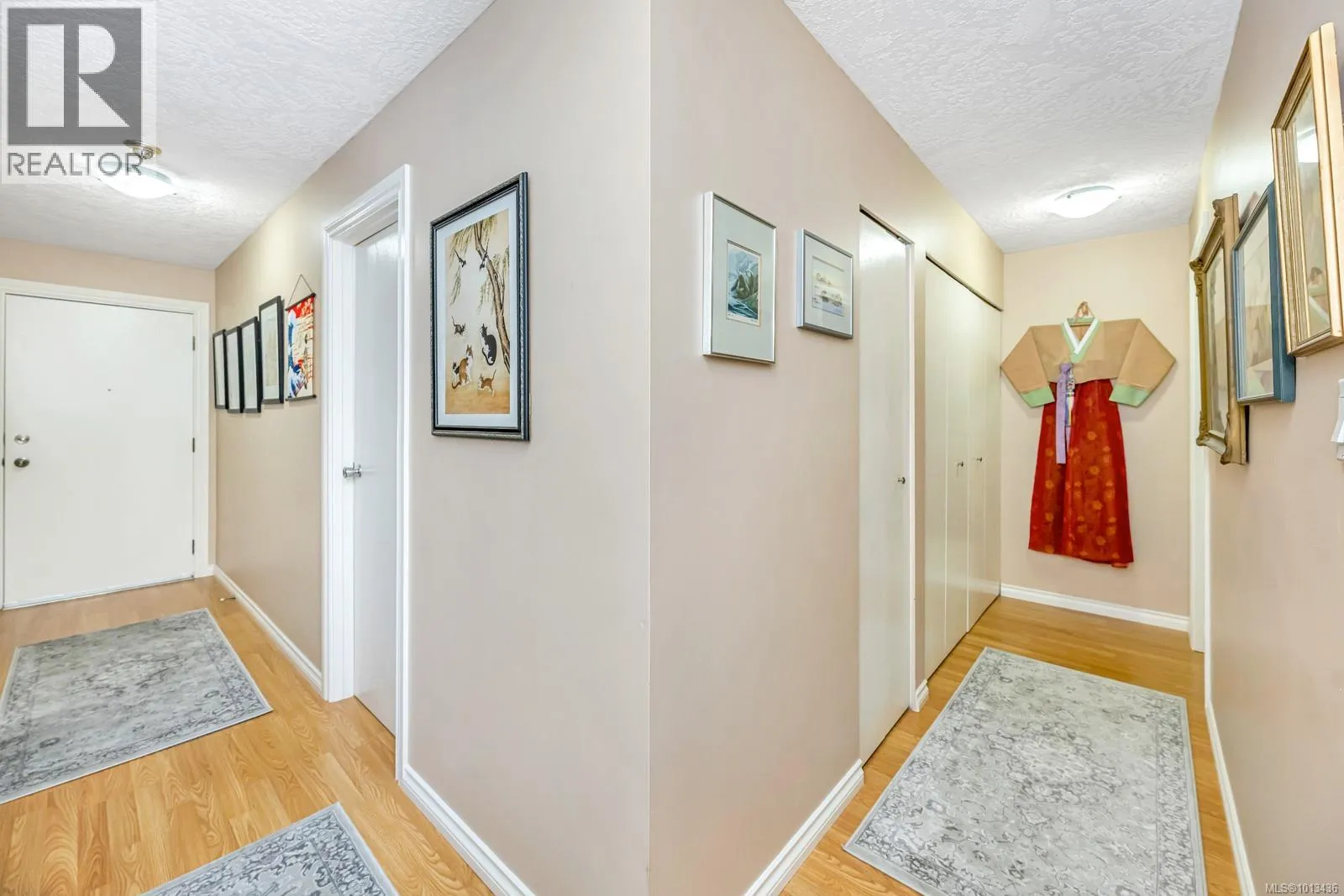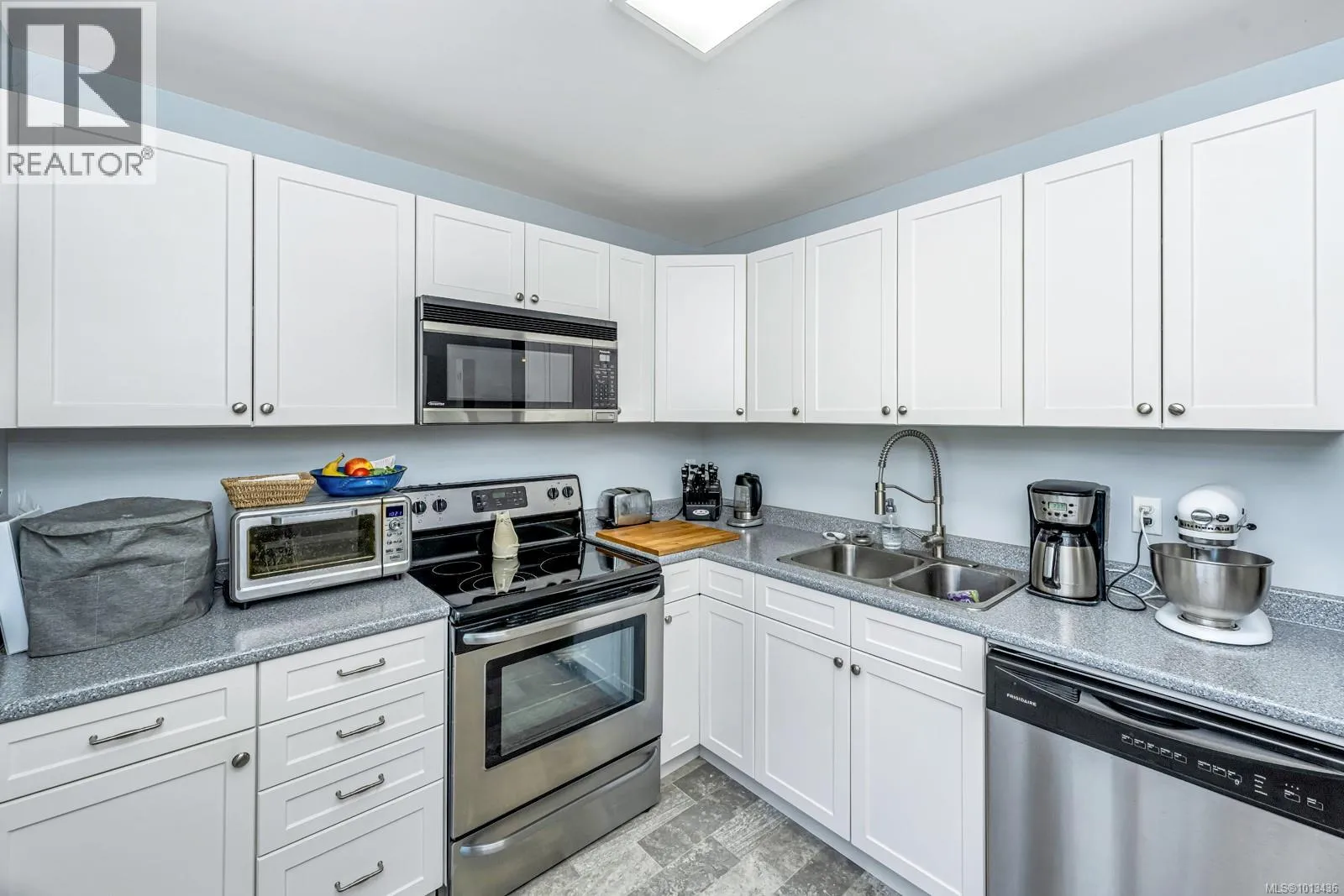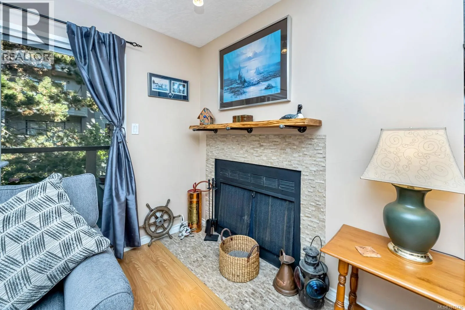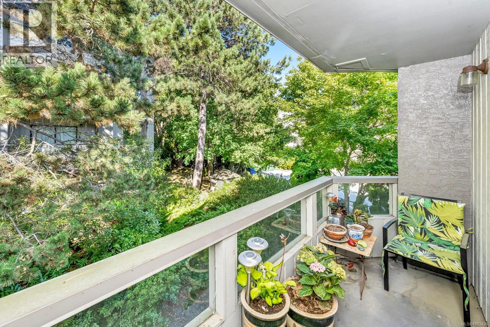 Full envelope renewal has started which includes cladding, balconies, windows and patio doors. This bright family friendly 2 bed 2 bath corner condo boasting over 1200sqft is located right across from the newly redone Rutledge Park with splash pad for the kids. 2 blks from Mayfair mall and 4 blks from Uptown giving it a high walk score of 87. The generous bedroom sizes are separate enough to give each other privacy. Perfect for a family or a two person purchase. There are 3 balconies, allows bbq's, an updated kitchen (floors, counters, updated cabinets with drawer inserts and stainless appliances), and large living room with a cozy wood burning fireplace. The spacious Primary bedroom has a large walk-thru closet, ensuite and it's own enclosed balcony. It includes in-suite laundry, secure parking, guest parking, separate storage and the H/W tank was replaced 2020 and new low-flow toilets in 2022. Two cats are also allowed. A great spot to call home! (id:27476)