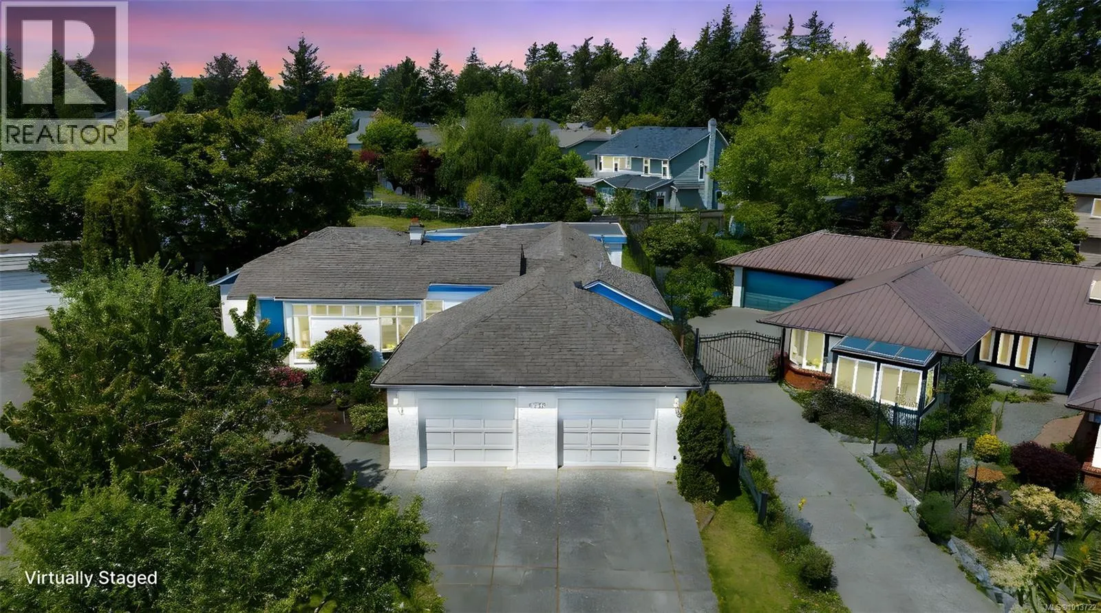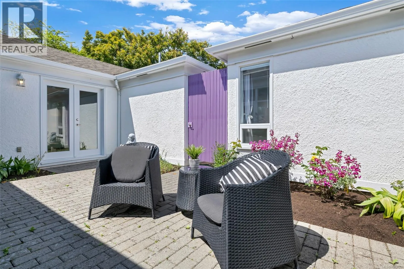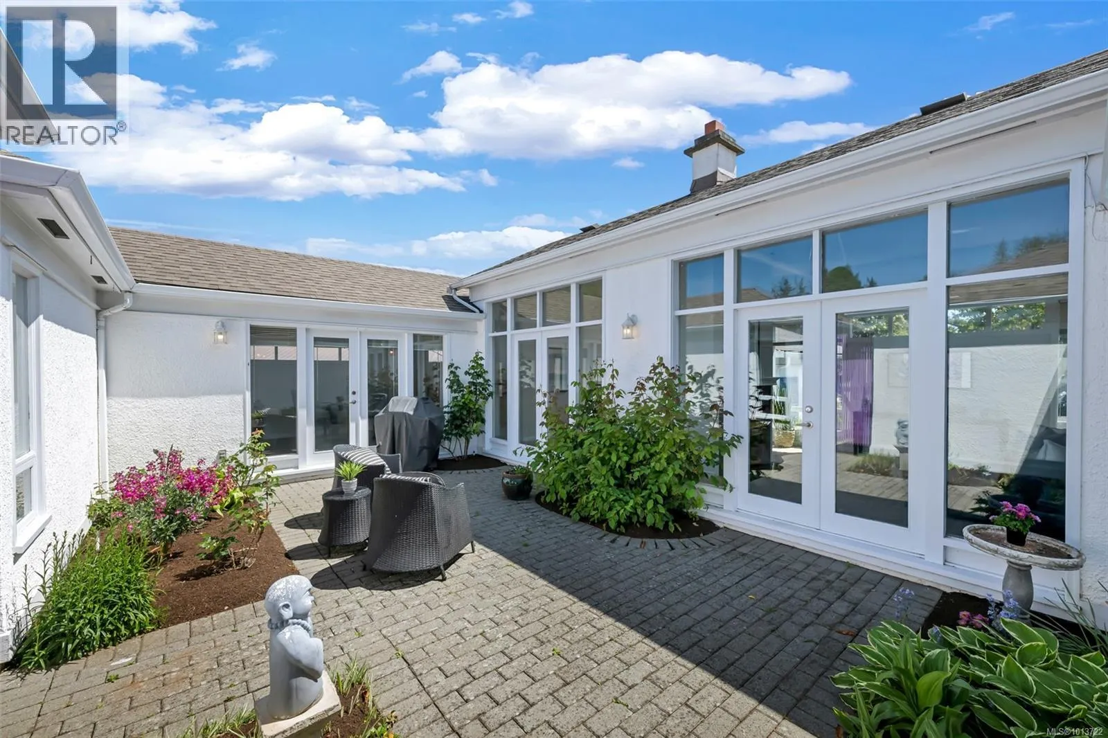 Welcome Home to this sun-drenched oasis! Situated at the end of a secluded cul-de-sac in the Arbutus area of highly desirable Gordon Head neighbourhood, located on a private fenced lot, this rancher, 4216 Wakefield Pl has floor to ceiling glass with French doors opening out from living & dining rooms overlooking a central enclosed courtyard with rose garden & patio that infuses a light and airy feeling into entire home. Pride of ownership is evident. Many updates since 2018. Spacious primary with walk-in closet and 6-piece ensuite including soaker tub is located in its own wing of the house for blissful quiet and privacy. 2 more spacious bedrooms plus a study/craft/extra bedroom perfect for working from home. 3 more baths round out the versatile interior of this wonderful custom built home. Oversize double garage with electric doors, heat pump heating/air conditioning and large hot water capacity are just a few of the additional bonuses this home has to offer. Suite potential. (id:27476)