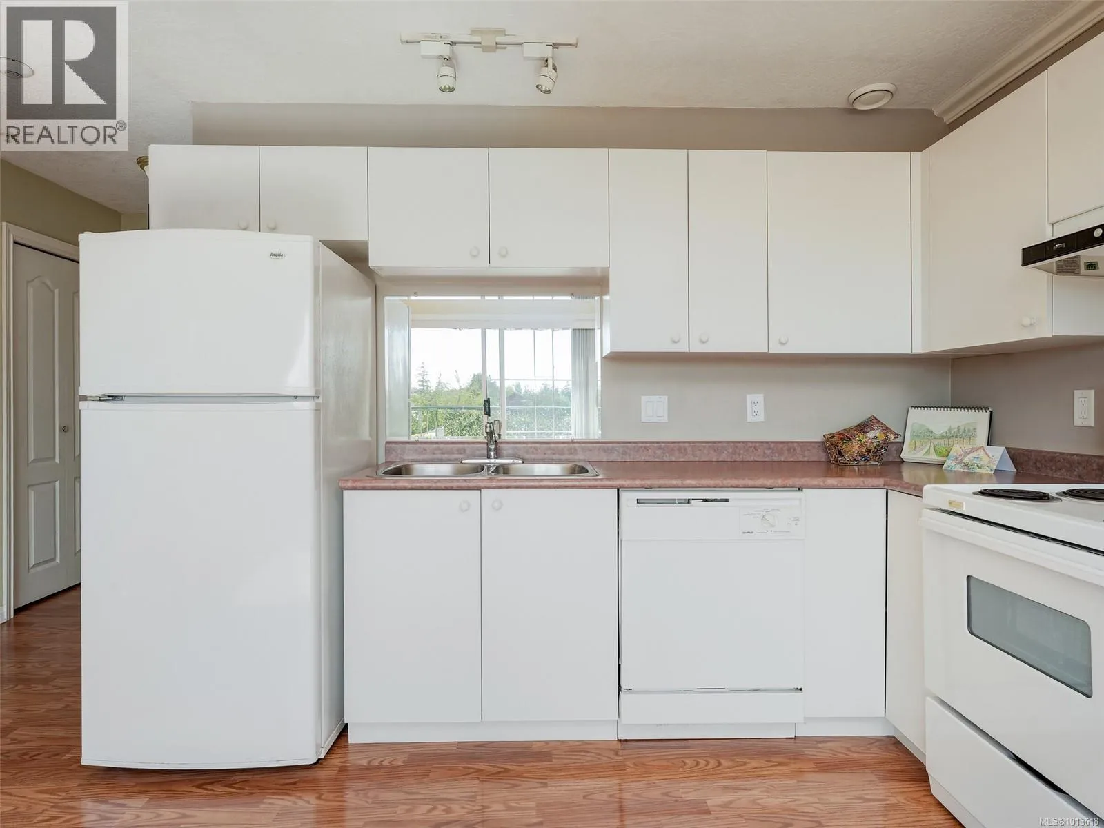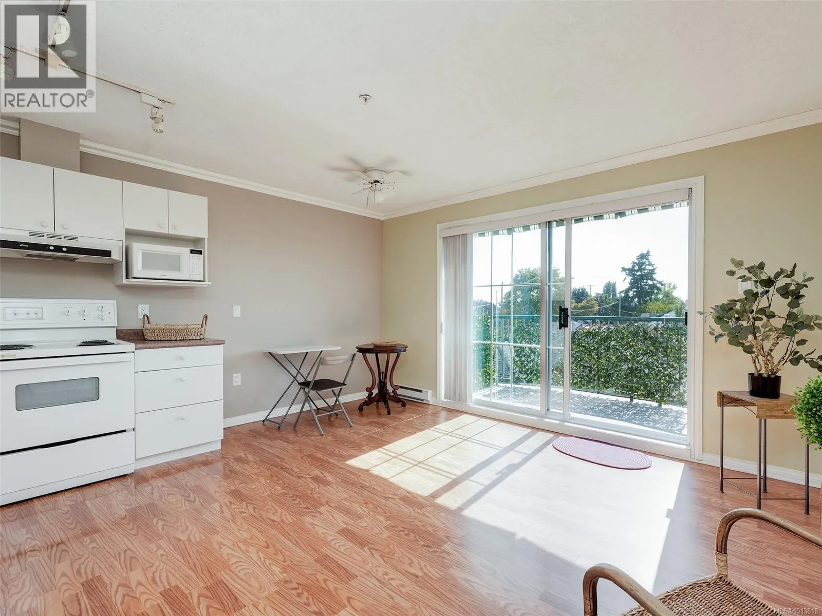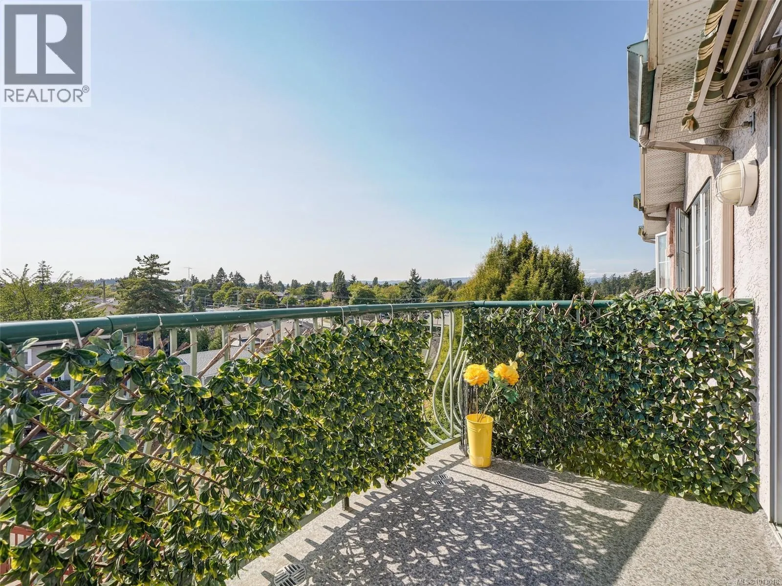 Enjoy views of mountains and sunsets from this bright private TOP floor SW suite located on the quiet side of the buildings. This inviting 55+ suite has a modern open plan living area, a kitchen complete with all major appliances, a generously sized bedroom with a large window that fills the space with natural light and a spacious bathroom. The roomy balcony has an electronic retractable awning. The suite has a laundry room with hookups in place. Same floor laundry room is steps away. The buildings offer amazing shared amenities including big social room, kitchen, huge patio with BBQ perfect for functions, library, GUEST SUITE with bath for visitors, new carpets in hallways, garbage chute. A 2nd floor sky walkway joins both buildings. Pet-friendly! Walk across to Tillicum Mall for groceries, banking, pharmacy, theater, restaurants, public library or Pearkes Rec Centre. Easy access to 5 major bus routes and secure bike pathway. Unique European influenced design and beautiful landscaping (id:27476)