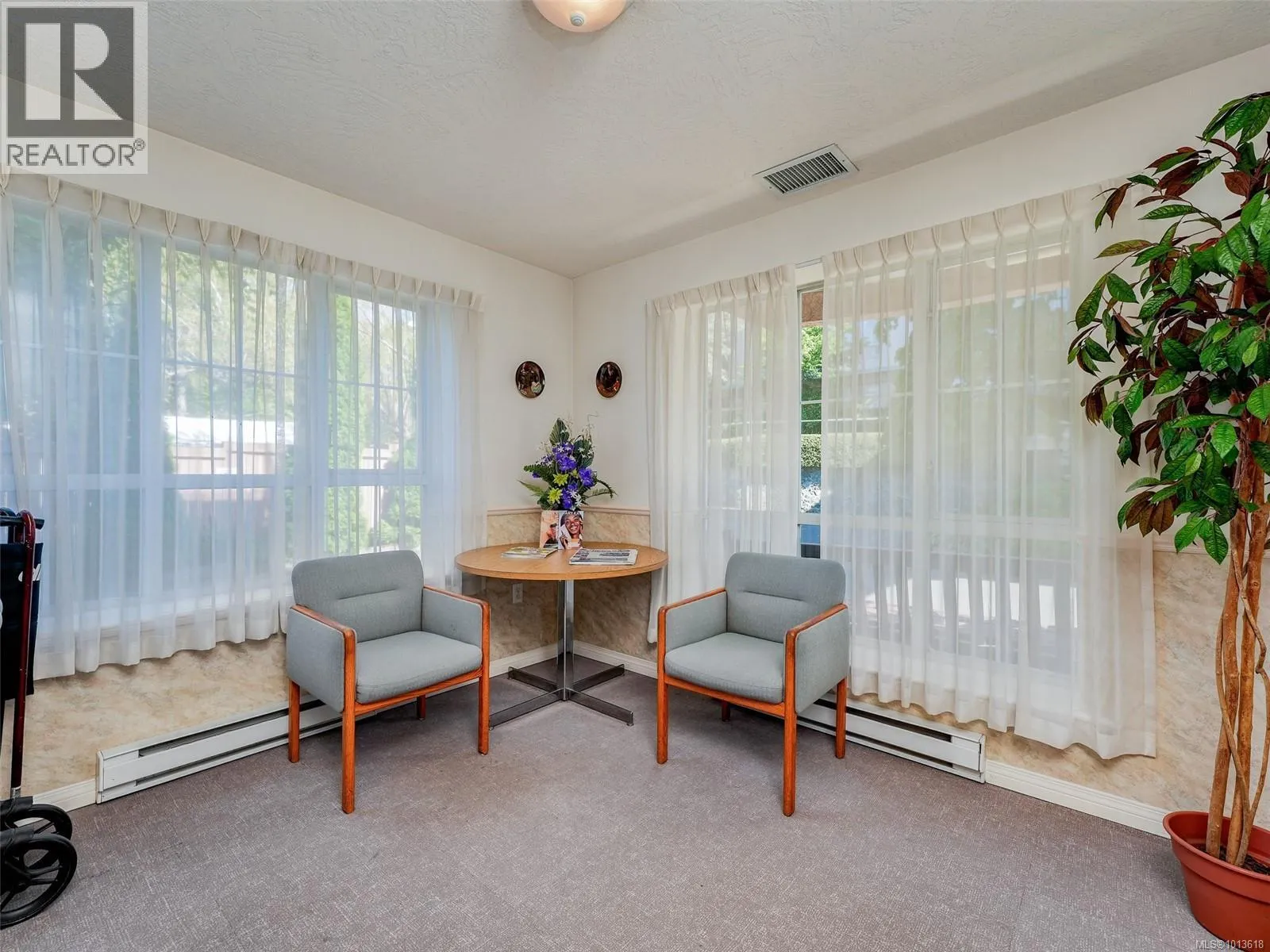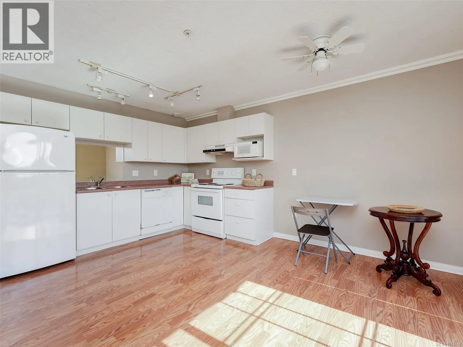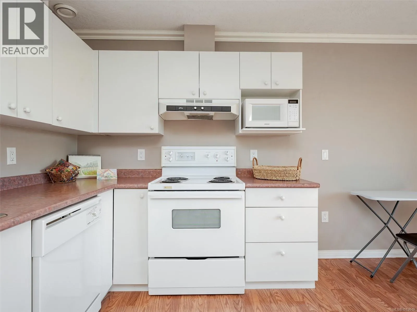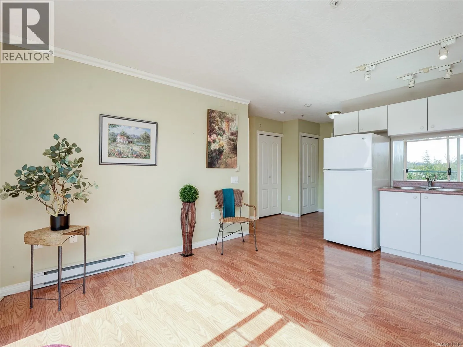 Enjoy views of mountains and sunsets from this bright private TOP floor SW suite located on the quiet side of the buildings. This inviting 55+ suite has a modern open plan living area, a kitchen complete with all major appliances, a generously sized bedroom with a large window that fills the space with natural light and a spacious bathroom. The roomy balcony has an electronic retractable awning. The suite has a laundry room with hookups in place. Same floor laundry room is steps away. The buildings offer amazing shared amenities including big social room, kitchen, huge patio with BBQ perfect for functions, library, GUEST SUITE with bath for visitors, new carpets in hallways, garbage chute. A 2nd floor sky walkway joins both buildings. Pet-friendly! Walk across to Tillicum Mall for groceries, banking, pharmacy, theater, restaurants, public library or Pearkes Rec Centre. Easy access to 5 major bus routes and secure bike pathway. Unique European influenced design and beautiful landscaping (id:27476)