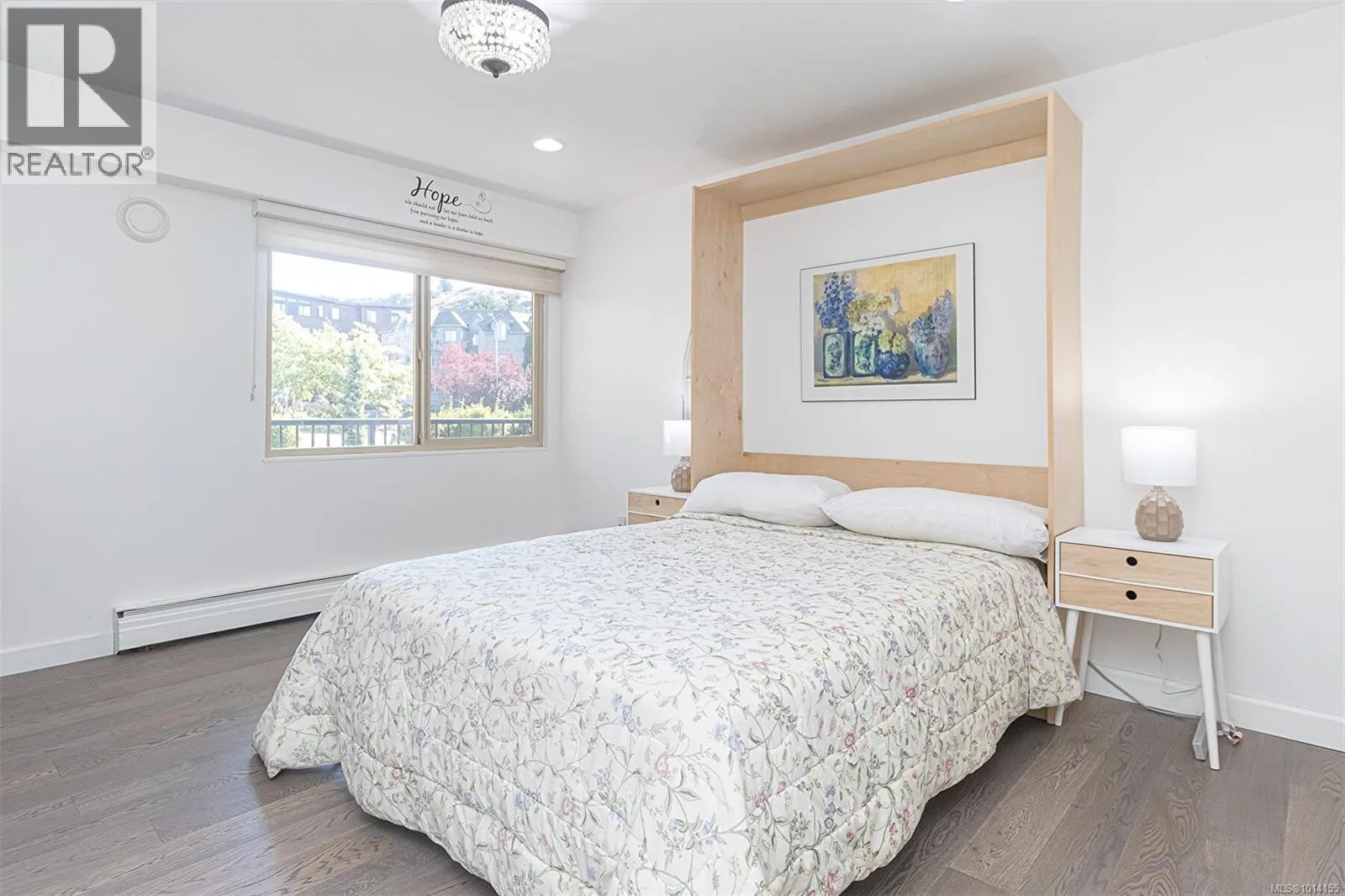 Modern and bright southeast-facing 2-bedroom + den suite offering over 1,500 sq ft of stylish living space. Enjoy an unbeatable locationâjust steps to shopping, restaurants, transit, and the University of Victoria. This beautifully updated home features a renovated kitchen with modern Stainless Steel Appliances, upgraded bathrooms, new flooring, designer lighting, and fresh décor throughout. The spacious layout is perfect for comfortable living and entertaining. The well-managed strata includes heat and hot water in the fees, plus great amenities like an indoor pool, workshop, recreation room and sauna. Separate storage and parking included. Enjoy your time on the expansive 170 sq ft balcony. The den offers a Murphy bed which is wonderful to have for guests. This is a SECOND FLOOR SUITE. A rare find in an exceptional area! (id:27476)