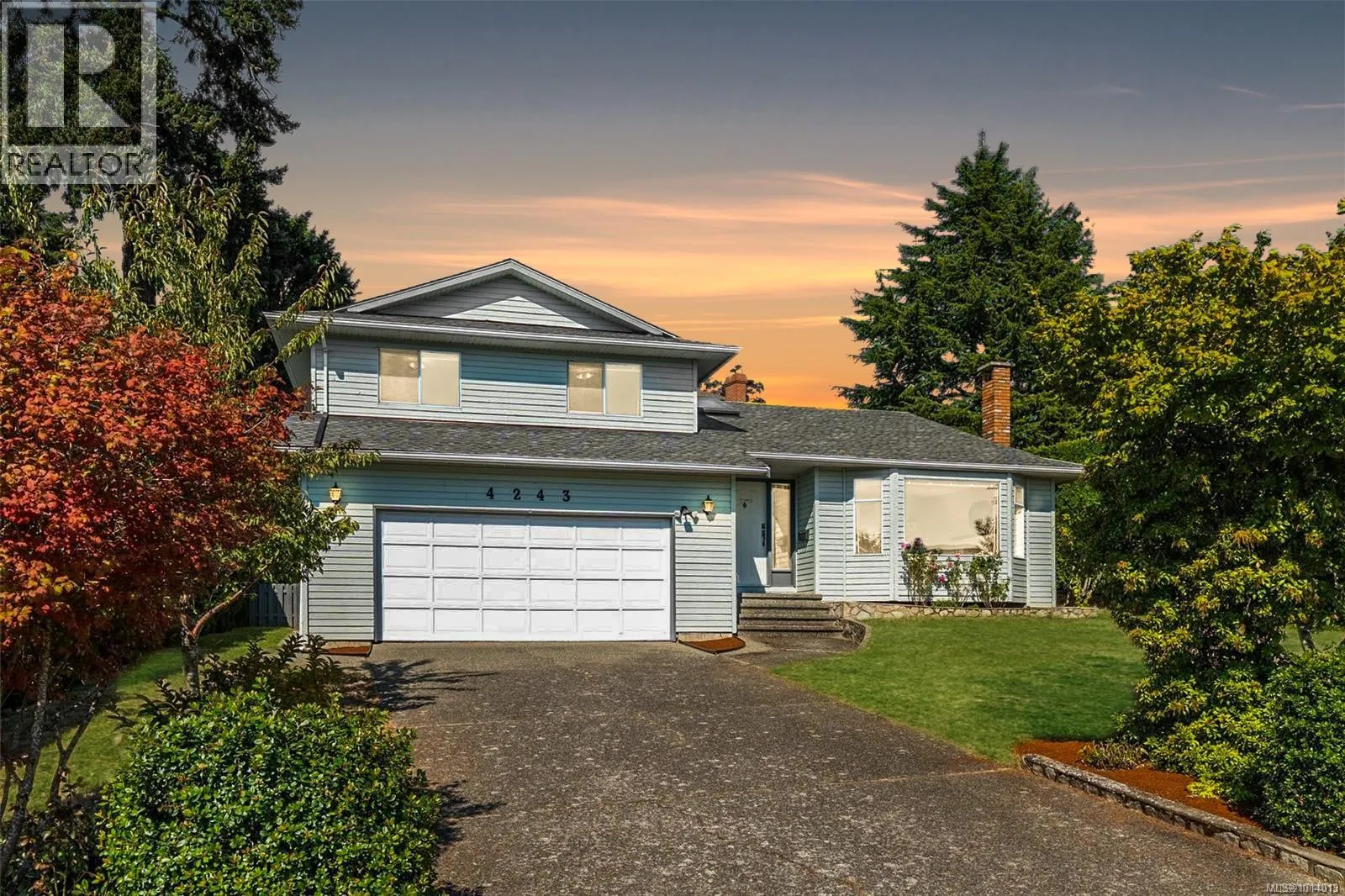 Welcome to your perfect family home in Saanichâs friendly Lake Hill neighbourhood! This 3-bedroom + den, 3-bath split-level is designed for everyday living with a layout that gives everyone space while keeping things connected. The main level offers a bright, south-facing living and dining area, plus an updated kitchen with quality cabinetry, a wood-top island, and a roomy eating area overlooking the cozy sunken family roomâgreat for entertaining. On the lower level youâll find an office/den/4th bdrm, powder room, and laundry with newer washer & dryer. Skylights and easy-care laminate/vinyl floors add to the homeâs inviting feel. Upstairs are two generous bedrooms and a full bath, plus the primary suite with walk-in closet, open vanity, and private ensuite. The fully fenced backyard is ready for kids & pets, while the double garage, large driveway, and huge crawlspace provide ample parking & storage. Close to shops, parks, schools, and just 15 minutes to downtown, this home has it all! (id:27476)