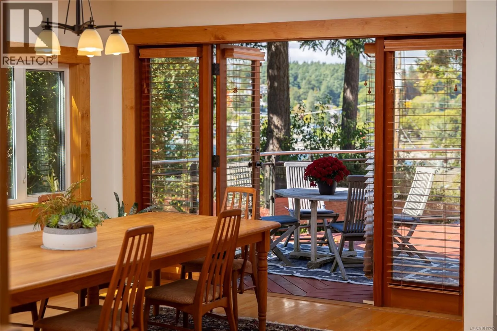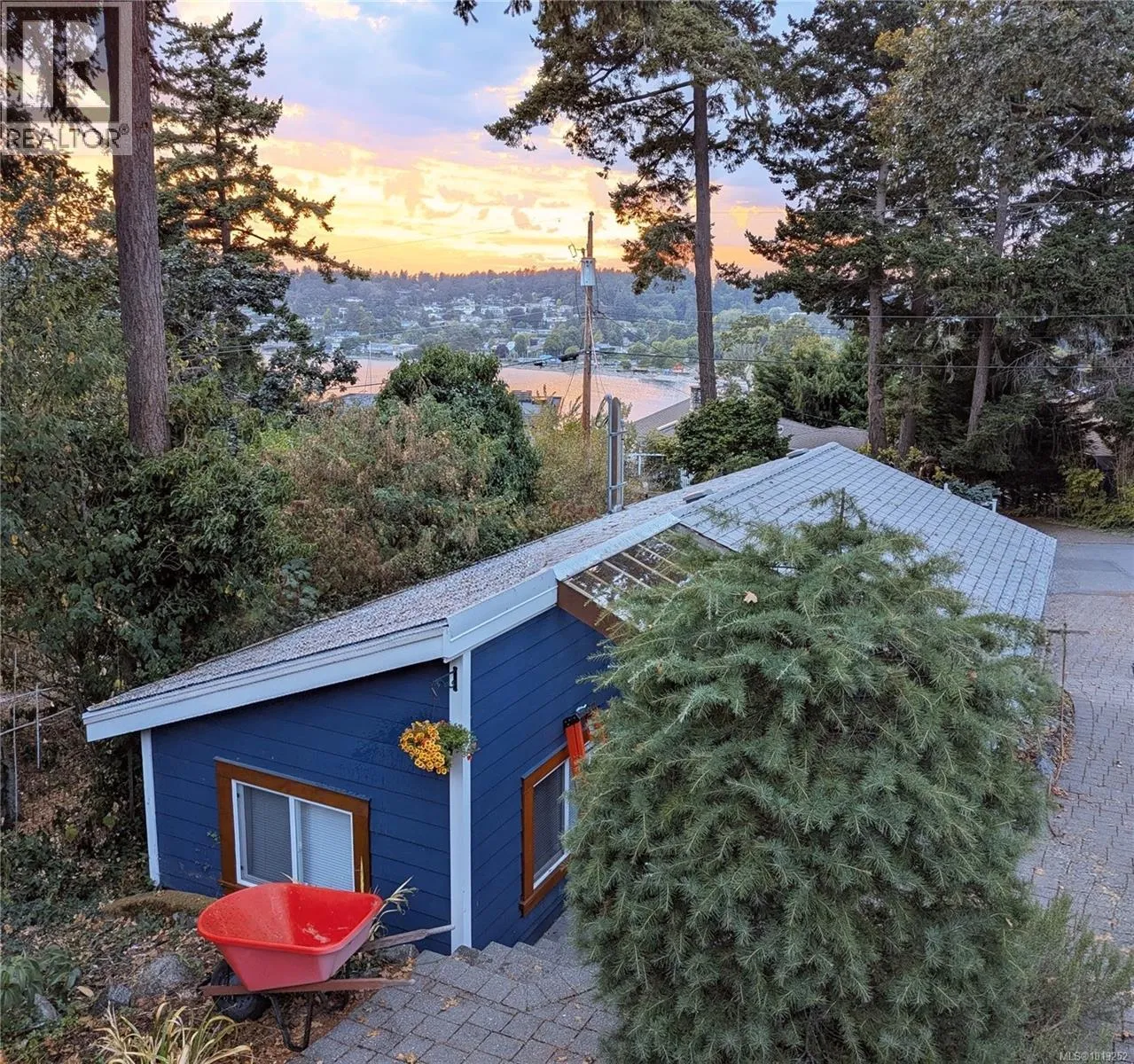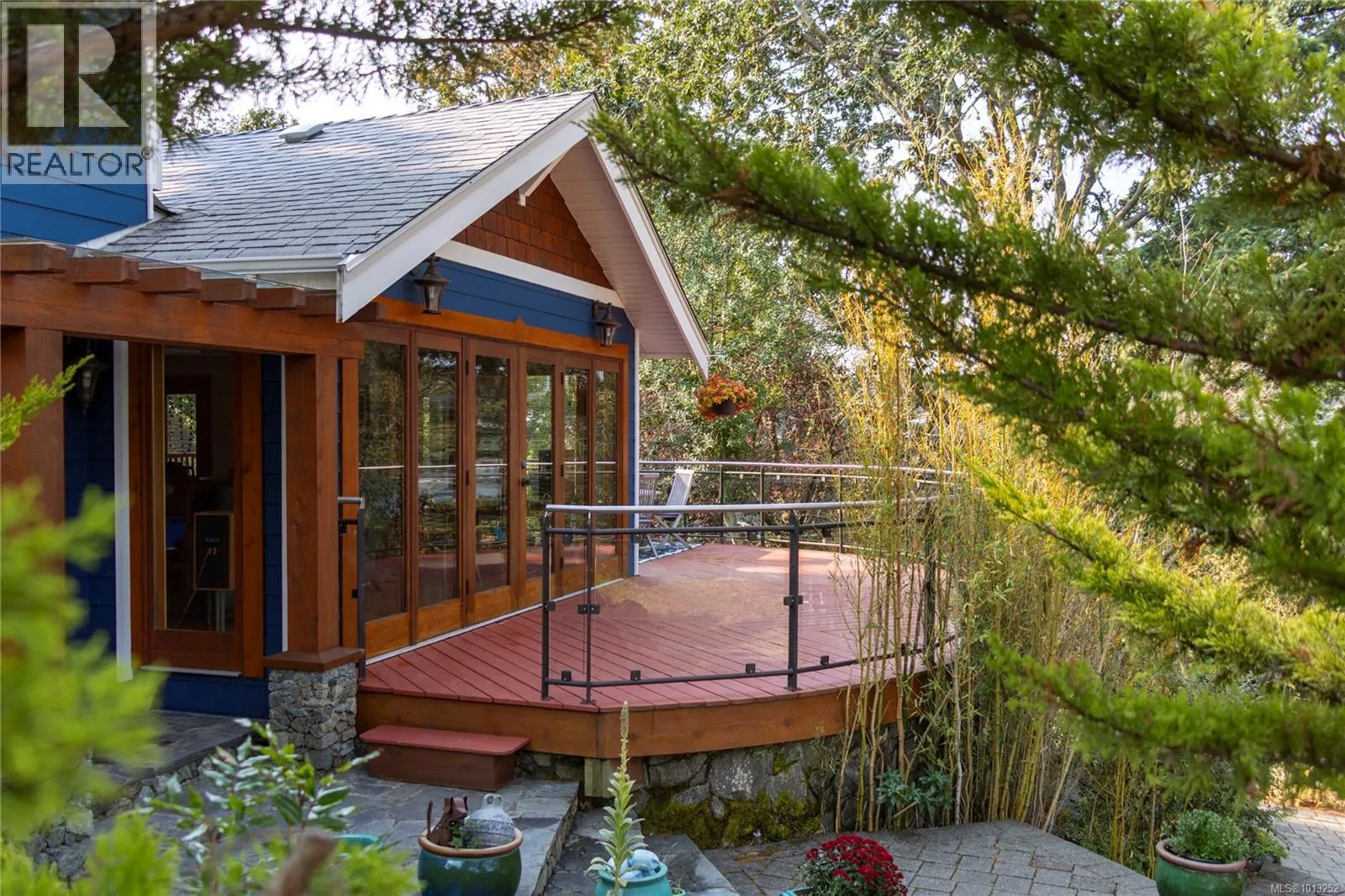 Discover timeless design and modern luxury in this stunning West Coast residence, featuring wood detailing throughout. Set on a beautifully landscaped .36-acre private lot, this spacious home offers the best of indoor-outdoor living with a front deck overlooking the ocean and a private back patio for relaxation. Inside, youâll find an airy open-concept layout with vaulted ceilings, gleaming hardwood floors, and a natural rock fireplace with a wood stove. Oversized new windows and custom wood and glass doors fill the space with light. The heart of the home is a custom Ribbon Maple gourmet kitchen, equipped with chocolate granite countertops, a professional-grade 6-burner Viking gas stove, and double ovens - perfect for entertaining or everyday luxury. Upstairs, the primary suite offers tranquil views of Cadboro Bay and an over-sized ensuite. A second upstairs bedroom also includes a 4-piece ensuite. The main level features a cozy family room, a separate den/home office, and a third bedroom with its own adjacent 4-piece bathroom - ideal for guests or multi-generational living. Additional highlights include a double garage, 3 side by side parking spots, a detached studio with 2-piece bath, and mature trees offering peace and privacy. This is West Coast living at its finest. Visit Marcâs website for more photos and floor plan or email marc@owen-flood.com (id:27476)