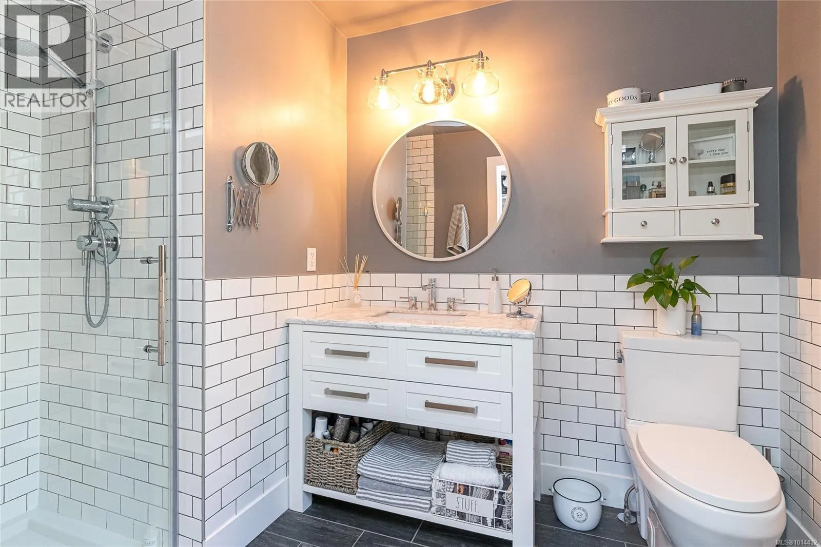 Welcome to Lakehill Estates! This 1,900+ sq. ft. finished end-unit townhome combines thoughtful updates, tasteful décor, and a convenient central location. With 3 bedrooms and 3 bathrooms, this home offers plenty of room for families or those wanting stylish, move-in ready living. The entry greets you with vaulted ceilings and natural light pouring through loads of windows. Hardwood floors carry throughout the main level, where a feature gas fireplace creates a cozy focal point for the living room. The dining area flows into a fully updated kitchen feaures subway tile backsplash, under-cabinet lighting, new fridge & hood fan, eating bar, and an impressive walk-in pantry. French doors open to a beautifully landscaped, private patio and garden â perfect for entertaining or quiet relaxation. Upstairs youâll find a spacious primary suite with ensuite, along with two generous bedrooms that feature charming window seats, perfect for reading nooks or extra storage. Bathrooms have been fully renovated with modern tile, stone counters, and stylish fixtures. Additional upgrades include fresh paint, new washer/dryer, hot water tank, ceiling fans, and lighting throughout. This home has been lovingly maintained and tastefully decorated. The complex has replaced the gutters and offers a large green space for families. Attached garage plus an extra parking spot add everyday convenience. Set in a prime central location, youâll enjoy easy access to the Lochside & Galloping Goose trails, nearby parks, excellent schools, shopping, and transit. A home that truly blends comfort, function, and lifestyle â ready for its next owners! (id:27476)