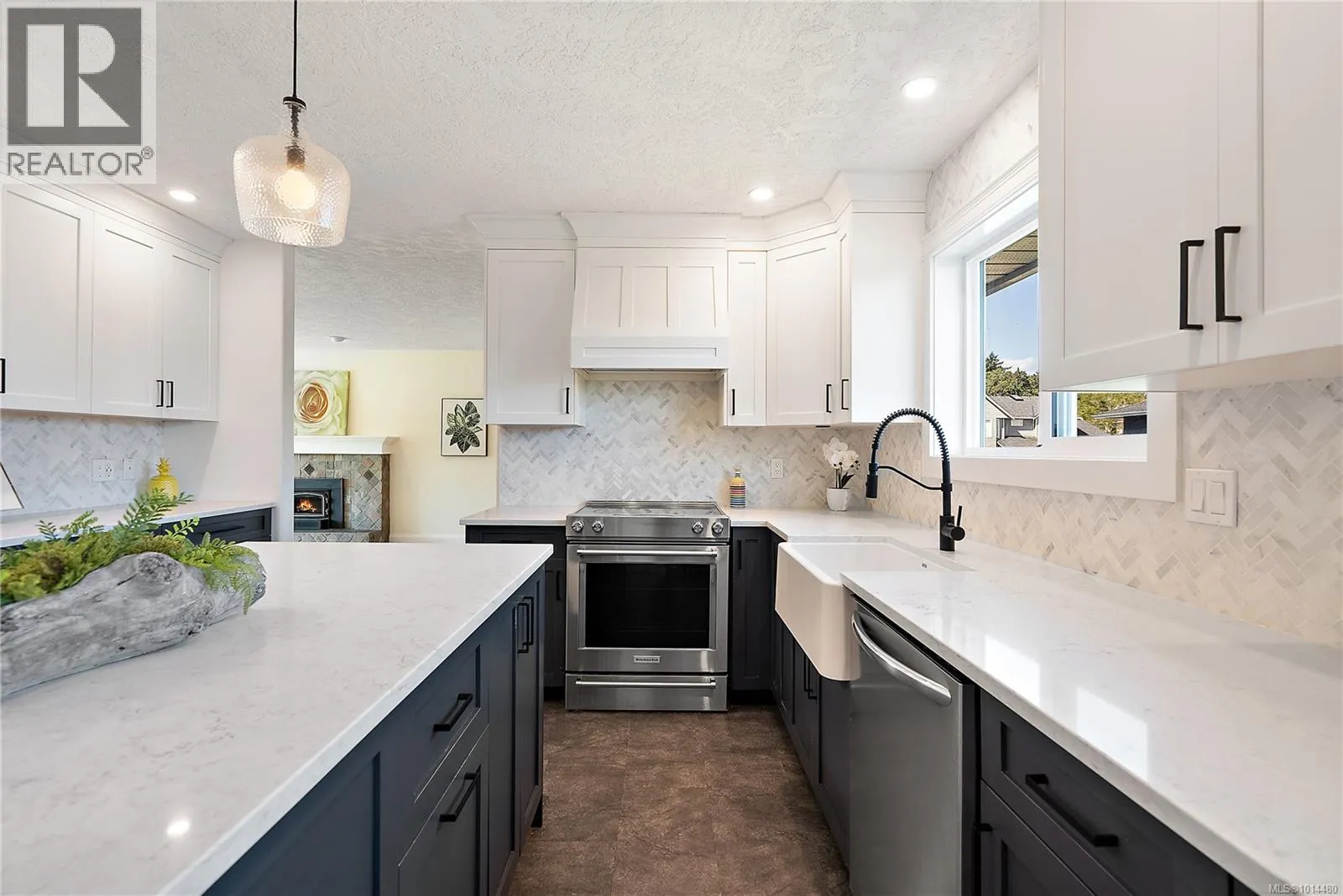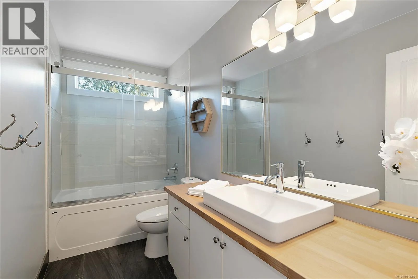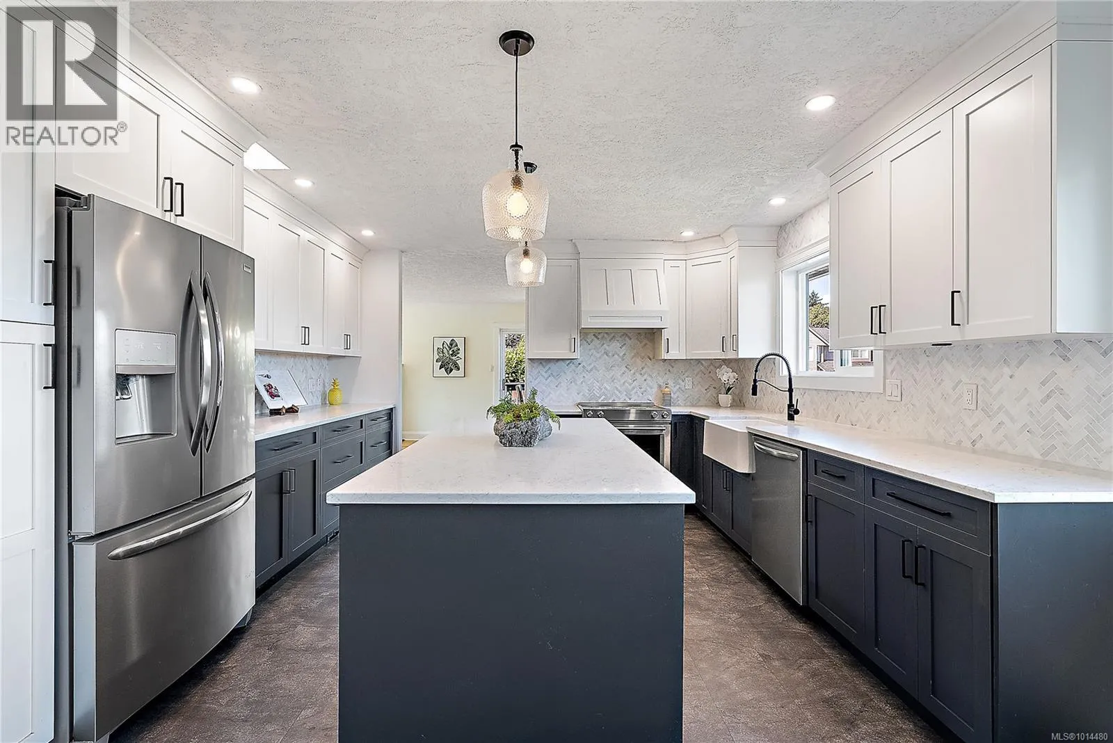 Welcome to 1290 Lidgate Court, this 5-bedroom plus den Strawberry Vale home is perfectly designed for family living with income or multigenerational potential. Upstairs offers 3 bedrooms, while the lower level features a large den/flex room plus flexible in-law suite that can be configured as either a 2-bedroom or 1-bedroom layout. Recent updates include a new designer kitchen, renovated bathrooms, new appliances, upgraded windows, hot water tank and various other improvements. This well maintained turn key home is move in ready offering comfort, functionality, and peace of mind from day one. The parklike backyard is a gardenerâs dream with mature fig trees and plenty of space to relax or entertain. Additional features include a double garage with extra parking, a sunny deck with storage below, and a quiet cul-de-sac location close to schools and parks. Centrally located in one of Saanich West's most sought-after neighbourhoods, Strawberry Vale offers the perfect blend of peaceful, semi-rural charm and urban convenience. Known for its larger lots, tree-lined streets, and family-friendly atmosphere, this community features a mix of character homes and newer builds, all within easy reach of parks, schools, shopping, and quick access to downtown Victoria. (id:27476)
