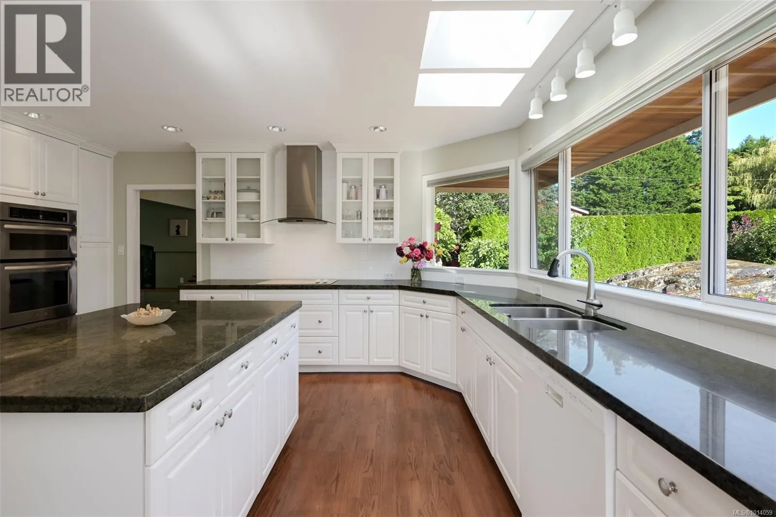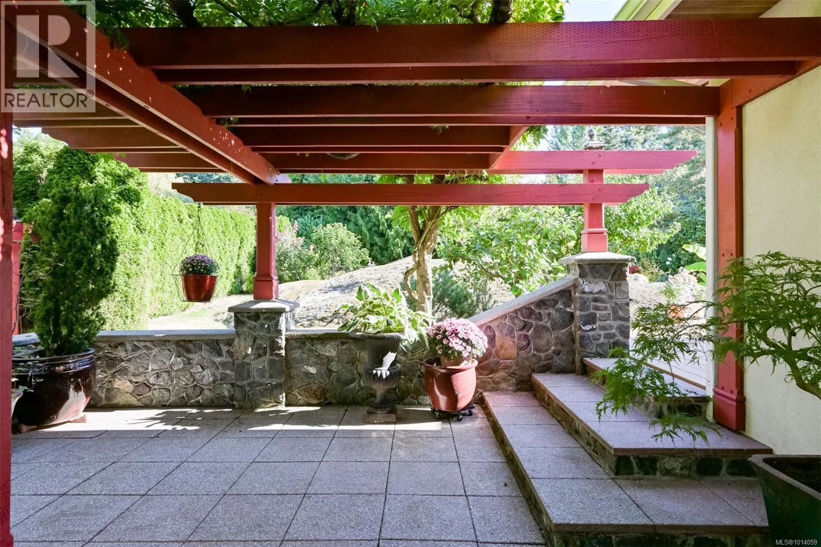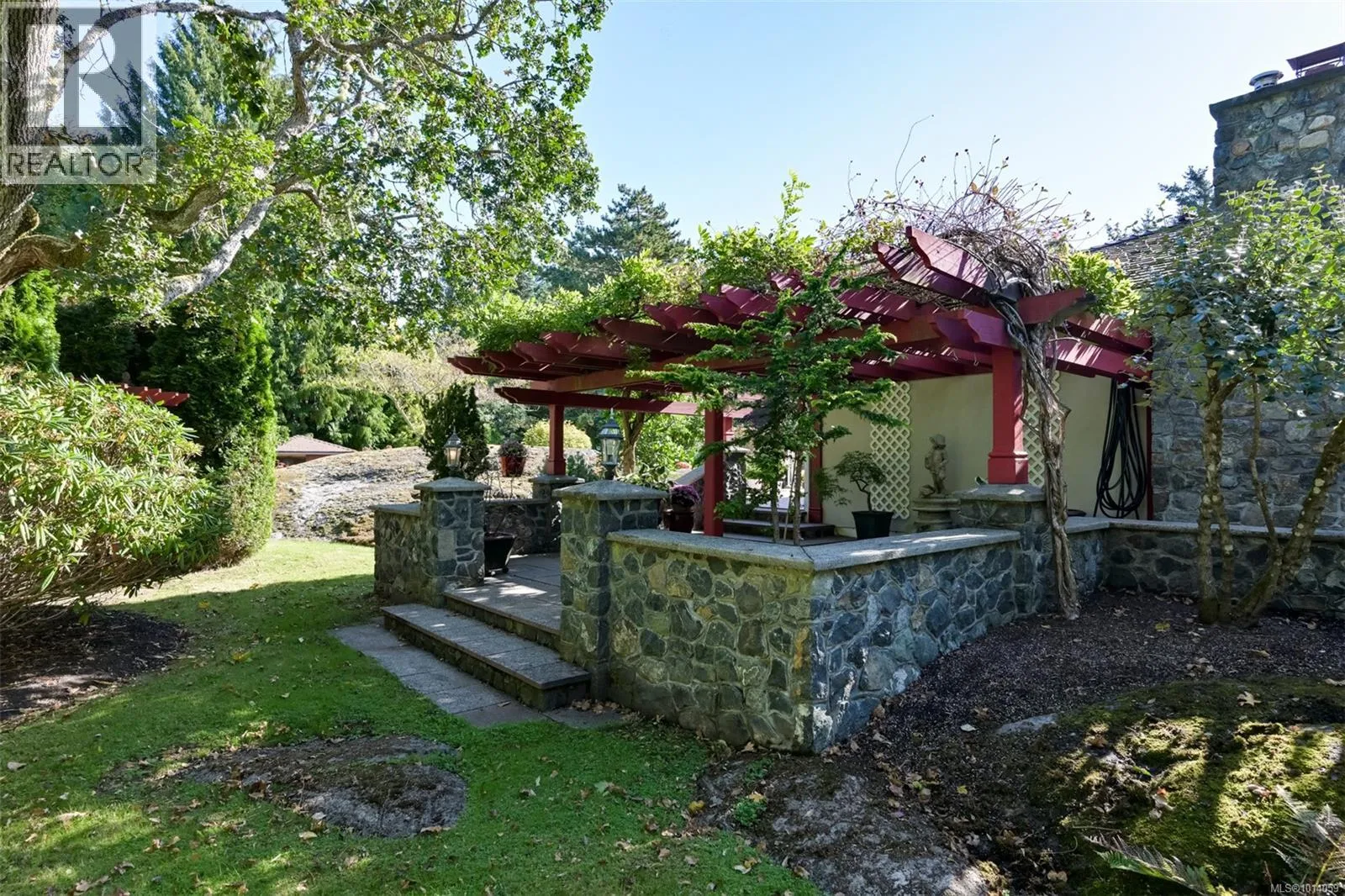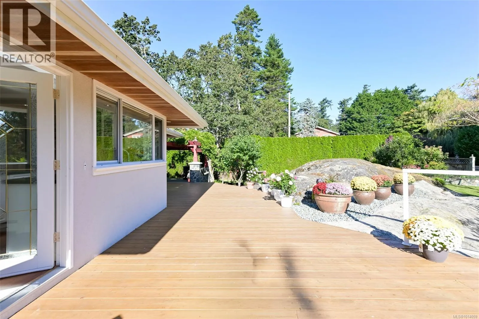 Situated in the desirable Ten Mile Point area, this well-maintained home rests on a half-acre of landscaped, terraced grounds. The upper level offers 4 bedrooms and 3 bathrooms, while the lower level includes a 5th bedroom, additional bathroom, and spacious family room. The property features manicured gardens, cedar gates, stone terraces, and a newer deck, creating a private and inviting outdoor setting. Mechanics include gas fired hot water heat w/9 zone controls, a 5000 watt emergency generator system, updated electrical & zoned irrigation system, ensuring comfort and peace of mind. A rare opportunity to enjoy a private, park-like retreat just minutes from beaches and the vibrant lifestyle of Cadboro Bay Village. (id:27476)