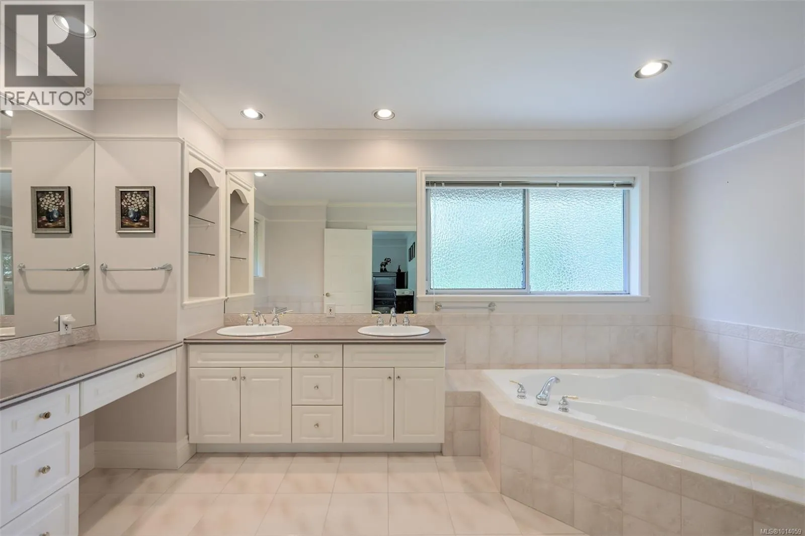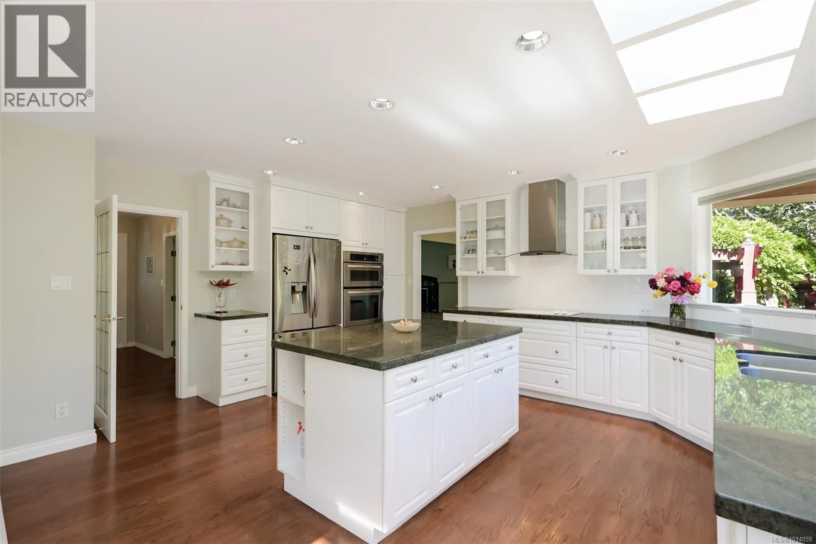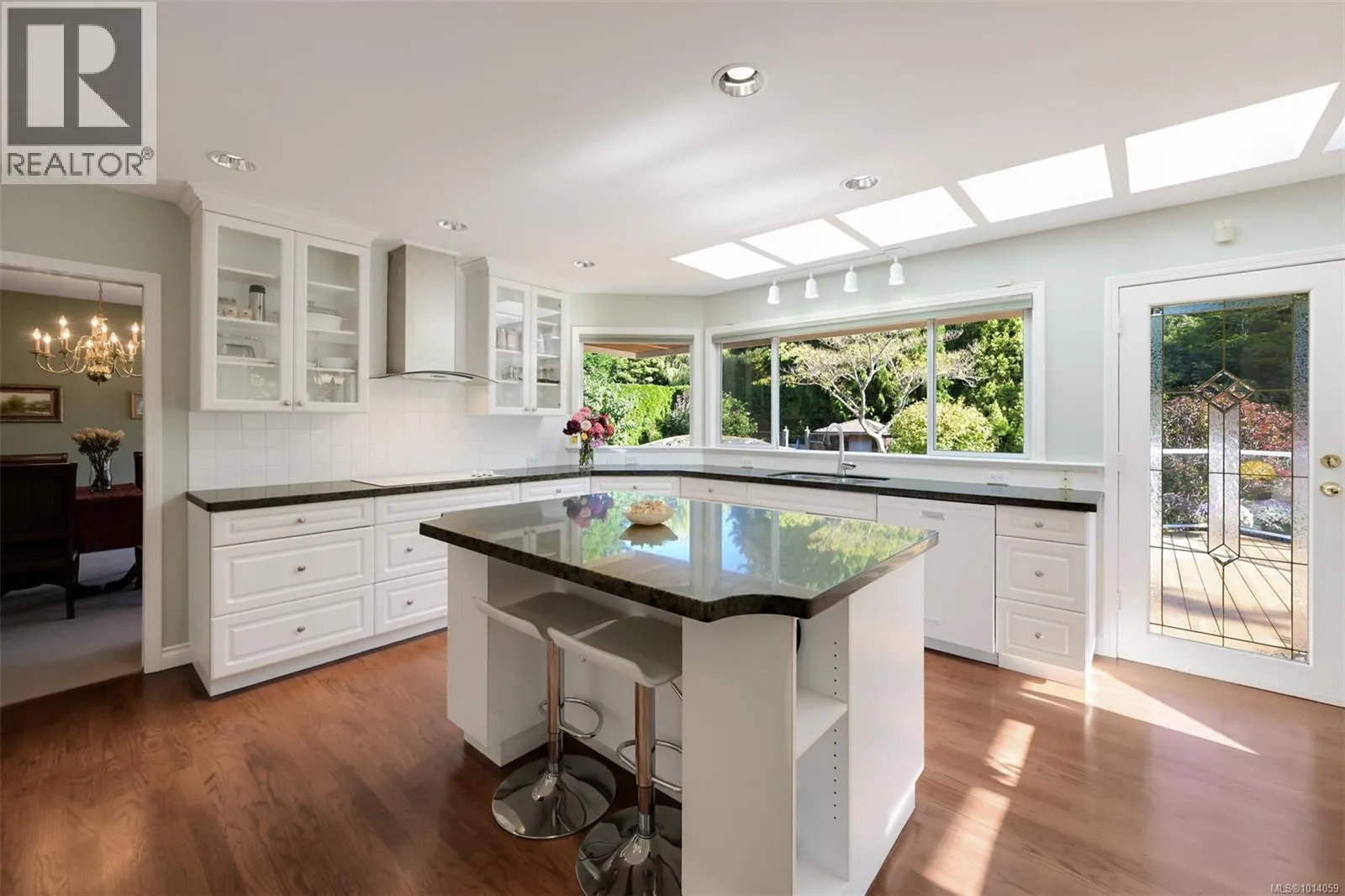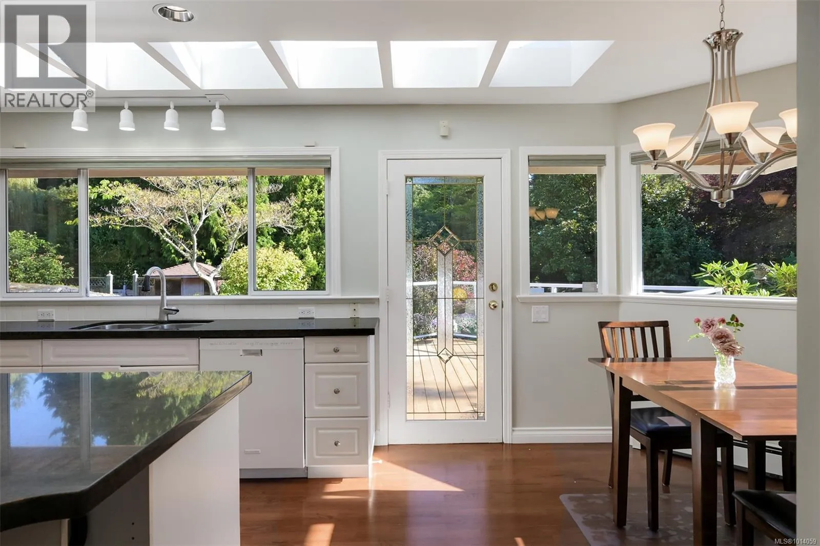 Situated in the desirable Ten Mile Point area, this well-maintained home rests on a half-acre of landscaped, terraced grounds. The upper level offers 4 bedrooms and 3 bathrooms, while the lower level includes a 5th bedroom, additional bathroom, and spacious family room. The property features manicured gardens, cedar gates, stone terraces, and a newer deck, creating a private and inviting outdoor setting. Mechanics include gas fired hot water heat w/9 zone controls, a 5000 watt emergency generator system, updated electrical & zoned irrigation system, ensuring comfort and peace of mind. A rare opportunity to enjoy a private, park-like retreat just minutes from beaches and the vibrant lifestyle of Cadboro Bay Village. (id:27476)