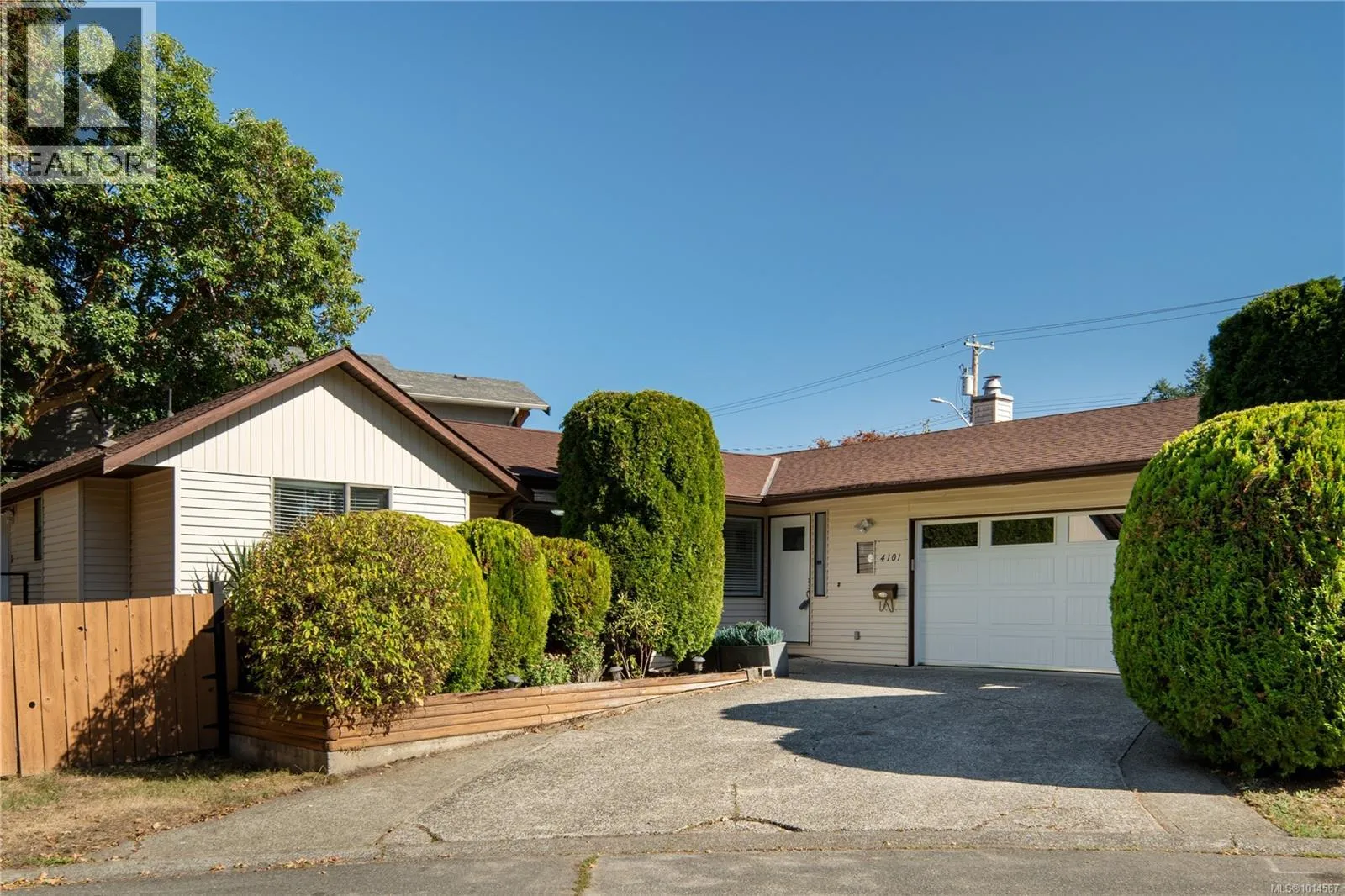Welcome to 4101 Scoones place! For your perfect retreat! Tucked away on a quiet cul-de-sac of newer homes, this spacious one-level, 3-bedroom, 2-bathroom gem is move-in ready and full of possibilities. Sitting on a desirable corner lot, the property boasts both an attached double garage and a detached office/suite ideal for storage, hobbies, or extra accommodation. A fully fenced yard with a large deck and raised garden beds makes outdoor living easy and enjoyable. Inside, youâll love the unique layout with pocket doors offering privacy while maintaining an open flow. The primary suite features two closets, dual sinks, and a relaxing SPA like 5-piece bath. On the opposite wing, youâll find two additional bedrooms, a 3-piece bath with a walk-in shower, plus a convenient laundry room. The heart of the home is the bright, open kitchen with abundant cabinetry, a central island, and an inviting dining and family area. Large windows fill every room with natural light, while a heat pump keeps the home comfortable year-round. Wall-to-wall fresh paint and new flooring, this home will truly sparkleâdonât miss your chance to make it yours! * ALL MEASURMENTS APPROX VERIFY BY THE BUYER(S) IF DEEMED IMPORTANT. (id:27476)