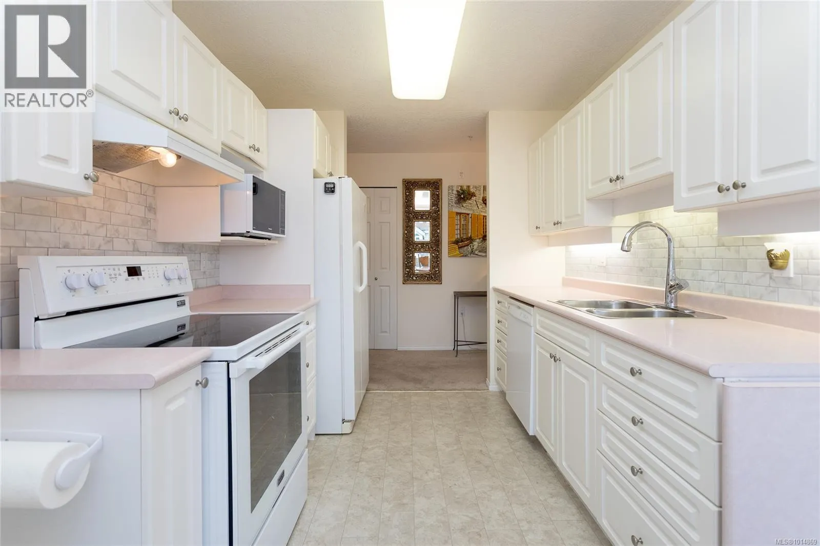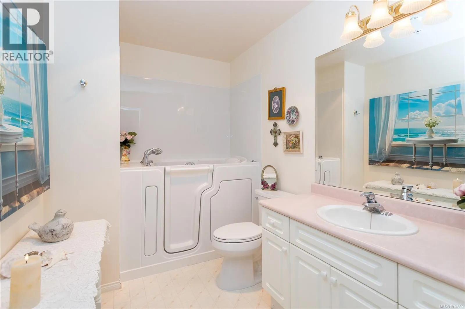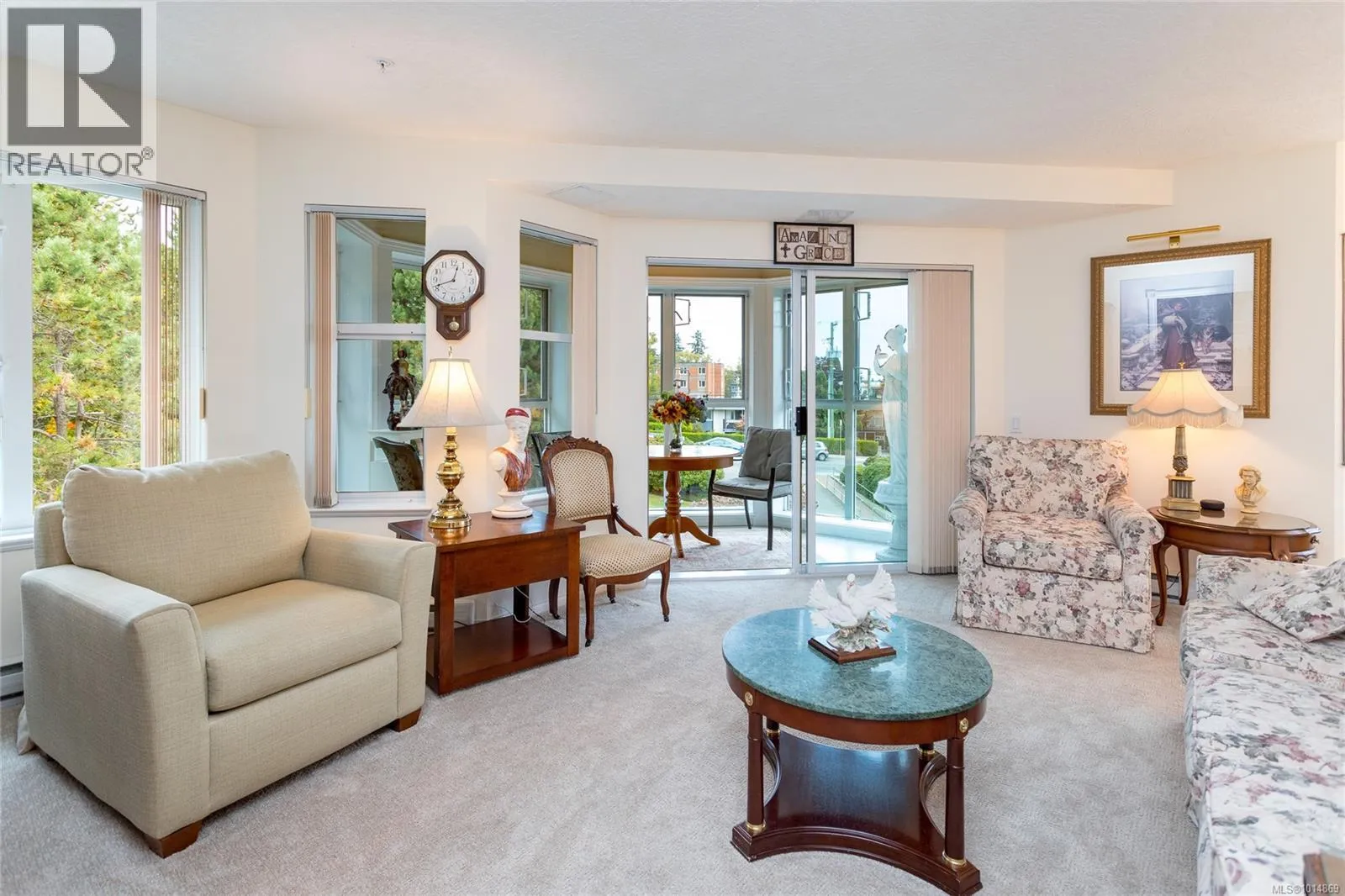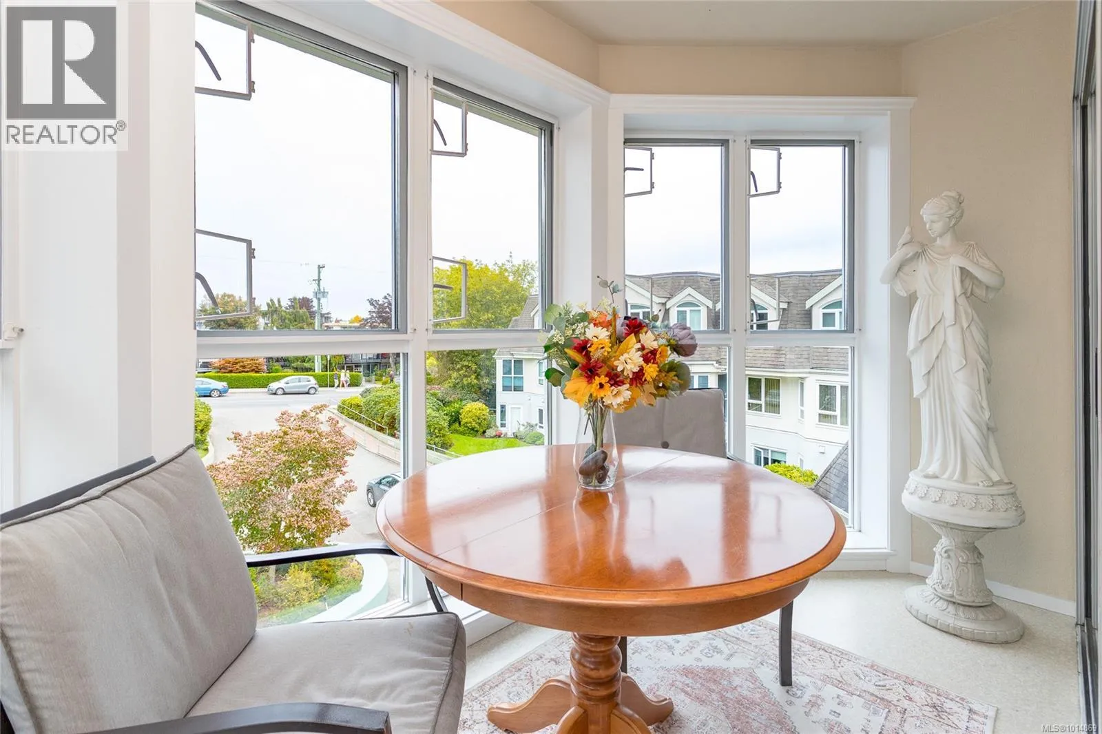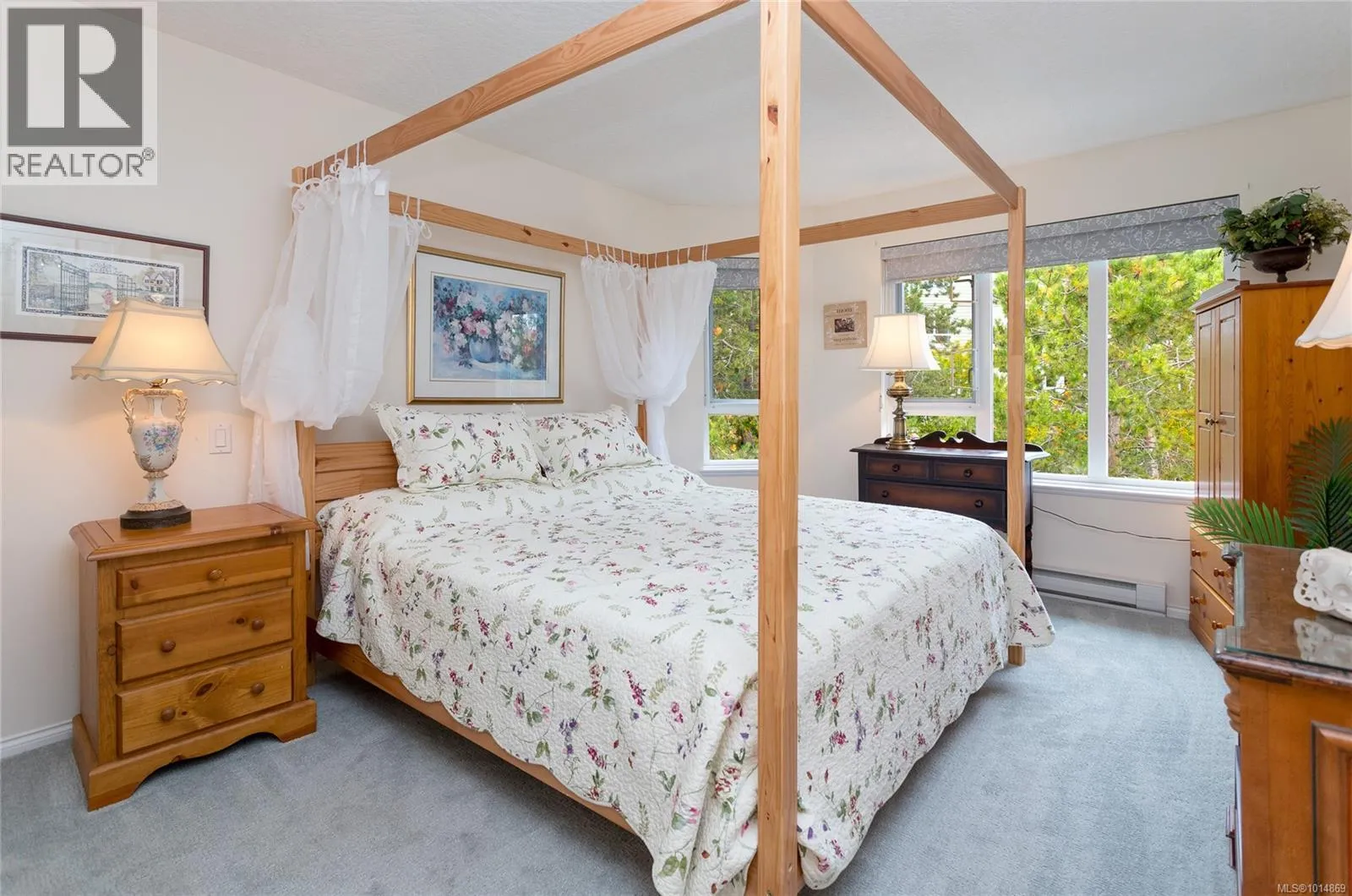 Bright and inviting, this top floor two bedroom, two bath suite offers expansive views and an abundance of natural light. The bedrooms sit on opposite sides of the living area for privacy, with the primary featuring a walk-in closet and full ensuite, while the second has a three-piece bath nearby. Updates include a new walk-in soaker tub, fresh carpet, modern window coverings, and newer flooring throughout the main living spaces. Skylights in the sunroom and entry add to the airy feel. Ophir Place is more than a building, itâs a community. Residents enjoy a fully equipped workshop, exercise and billiards rooms, extensive library, a guest suite, bike storage, and a refreshed event space. Strata fees cover hot water, basic cable, internet, telephone, landscaping, and management. Shops, restaurants, medical services, banks, and transit are all within walking distance. This pet-friendly 55+ community welcomes pets. (id:27476)