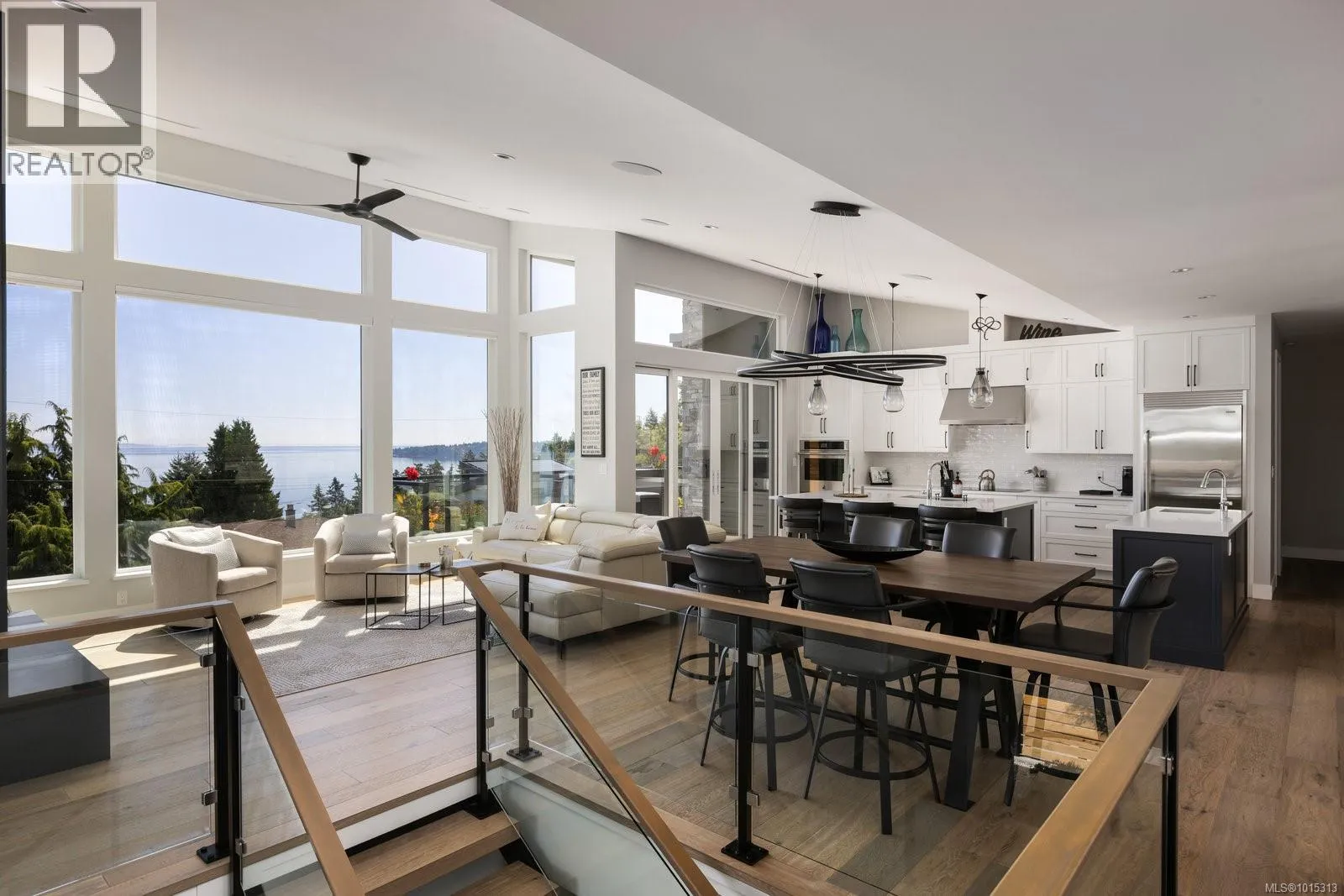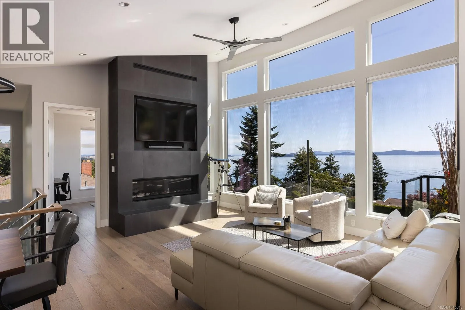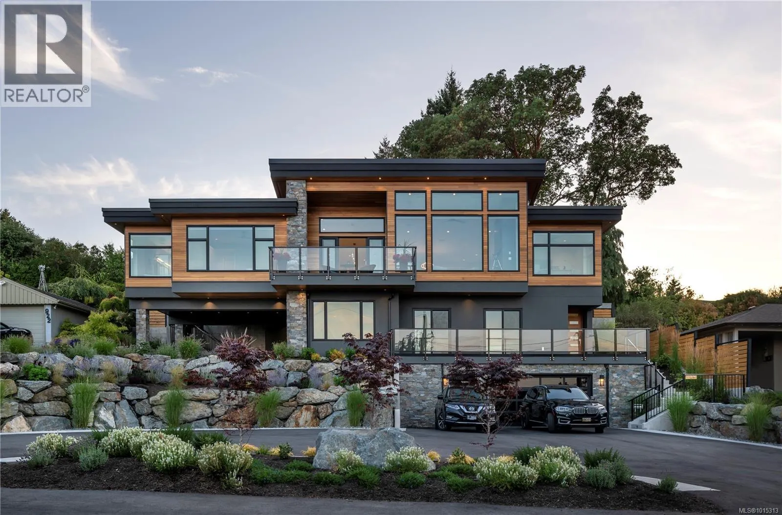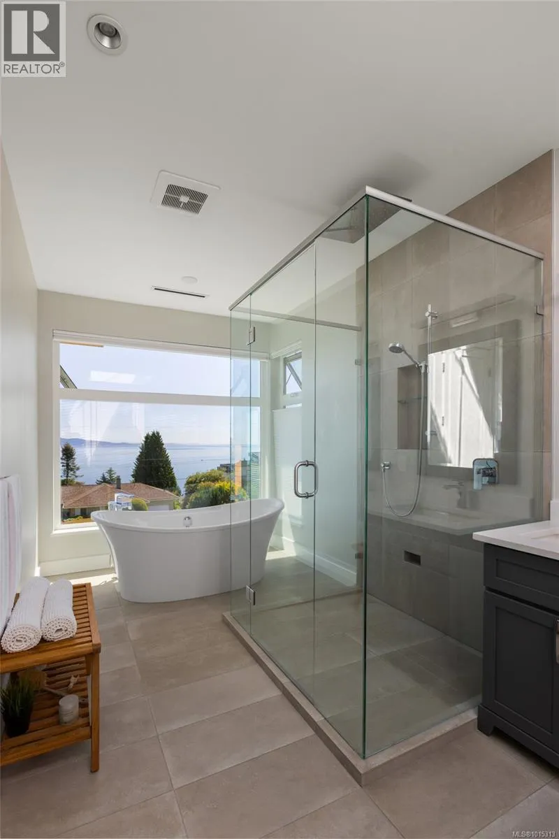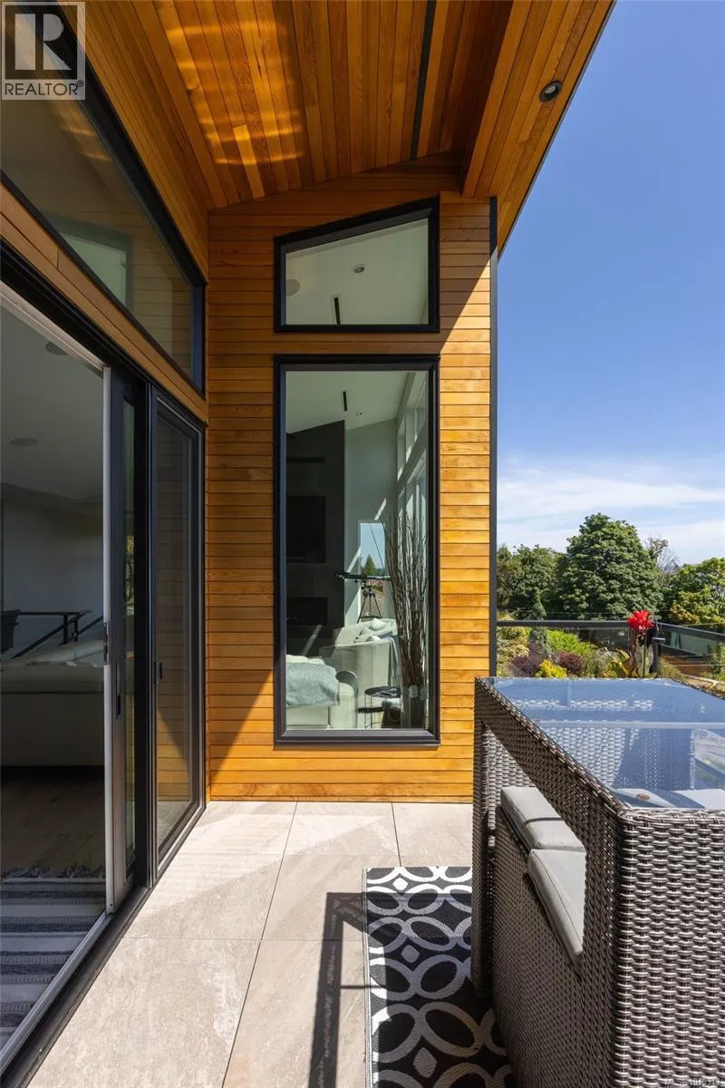 Discover refined coastal living in this expansive 3,700+ sq ft, three-level masterpiece with 4 bedrooms and breathtaking ocean and mountain views. A sweeping semi-circular driveway, bordered by sculpted rock-wall gardens, welcomes you home. Inside, grand windows and glass sliding doors bathe every living space in natural light and frame panoramic vistas from both front and rear decks. The cedar-covered back deck, complete with skylights, flows into a private, fenced, level yard with a serene walled garden. Relax in the infinity hot tub while gazing across the Salish Sea, North Shore peaks, and Mount Baker. A custom metal, wood, and glass staircase connects the levels, leading to elegant one-level living. The great roomâwith living, dining, and kitchenâshowcases dual islands, open flow and effortless indoor-outdoor access for entertaining. A bright corner office offers spectacular panoramic views. The master retreat is tucked away in privacy, featuring a spa-style ensuite with a soaker tub, oversized shower, heated tile floors, and power blindsâall insulated and sound-barred, with its own heat exchanger. A legal 1-bedroom suite with ocean views opens to a covered deckâalso insulated and sound-barred. Additional highlights include solar-ready and EV-ready infrastructure, landscape-lighting pre-wiring, rooftop plugs for holiday lights, and abundant storage. A large cement room off the garage is ideal for a gym, theatre, or games room. Just a short walk to Claremont High School, hiking trails, Mattickâs Farm, Cordova Golf Club, and Cordova Bay Beach. This home offers an ideal blend of privacy, luxury, and walkable convenience making it an extraordinary opportunityâone that defines West Coast living at its finest. (id:27476)