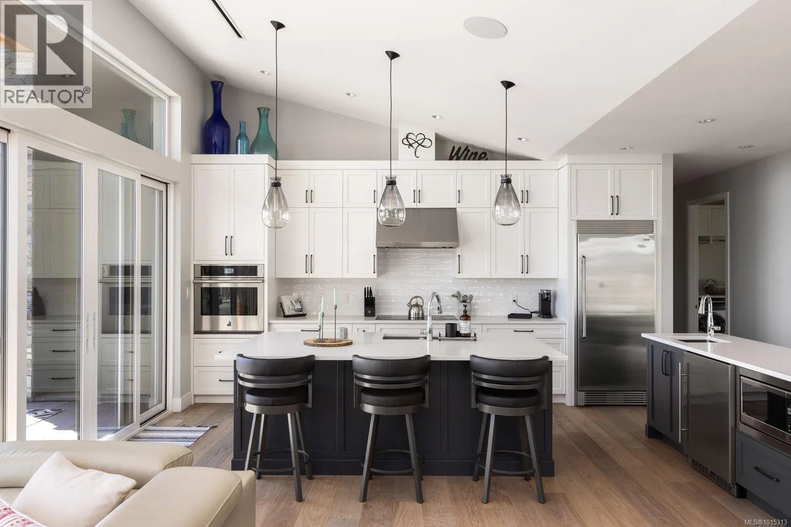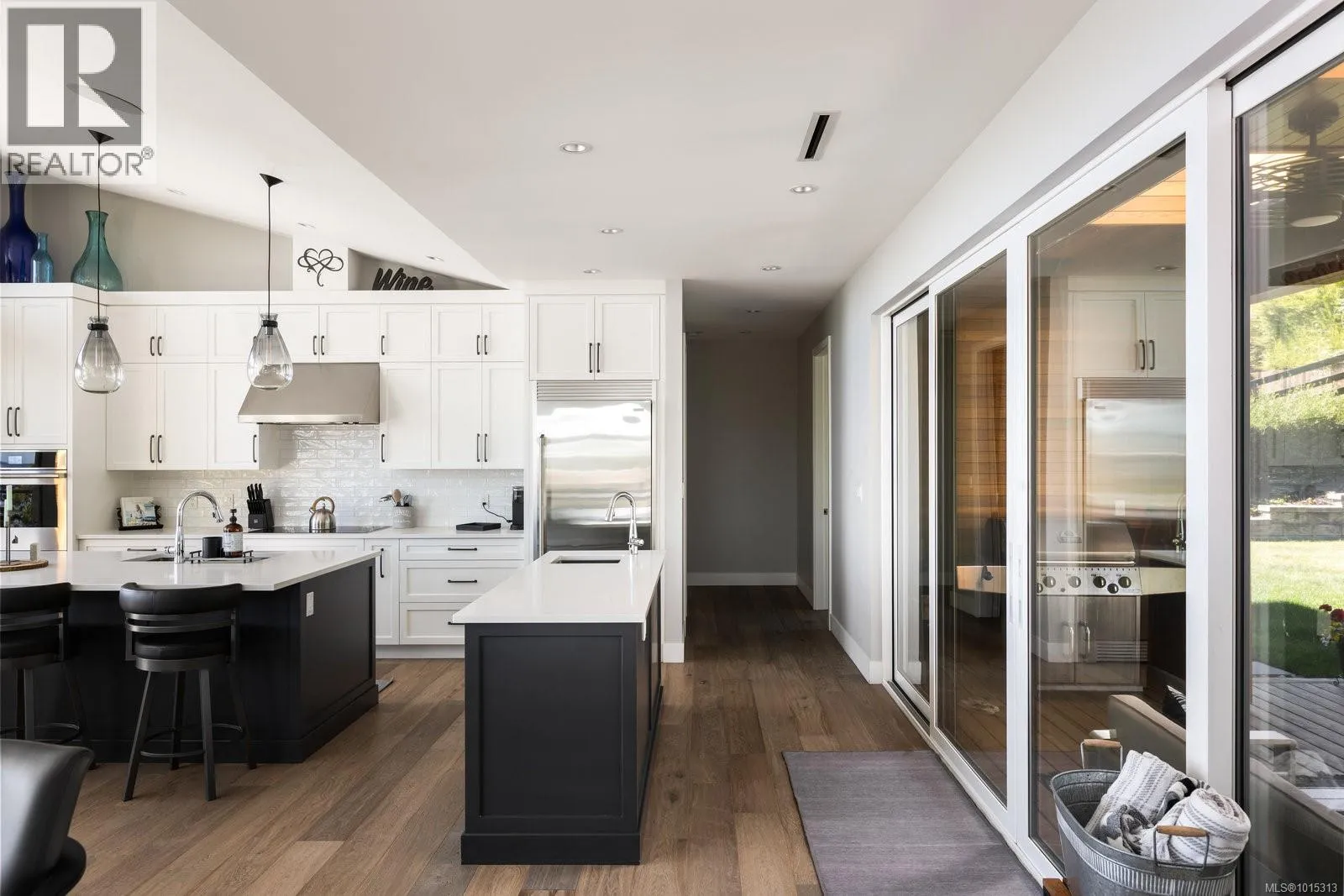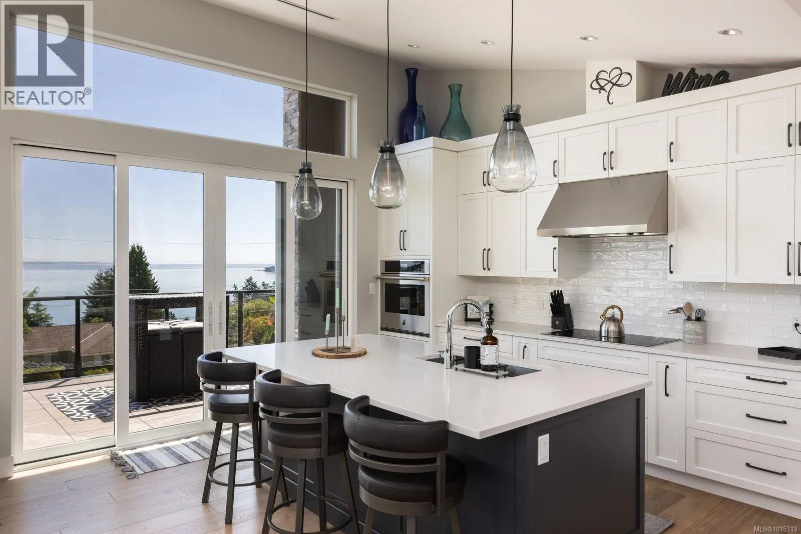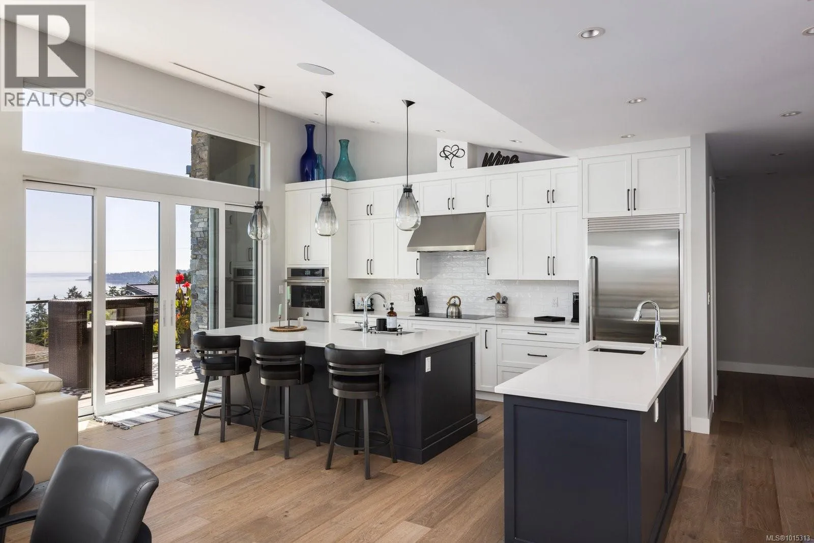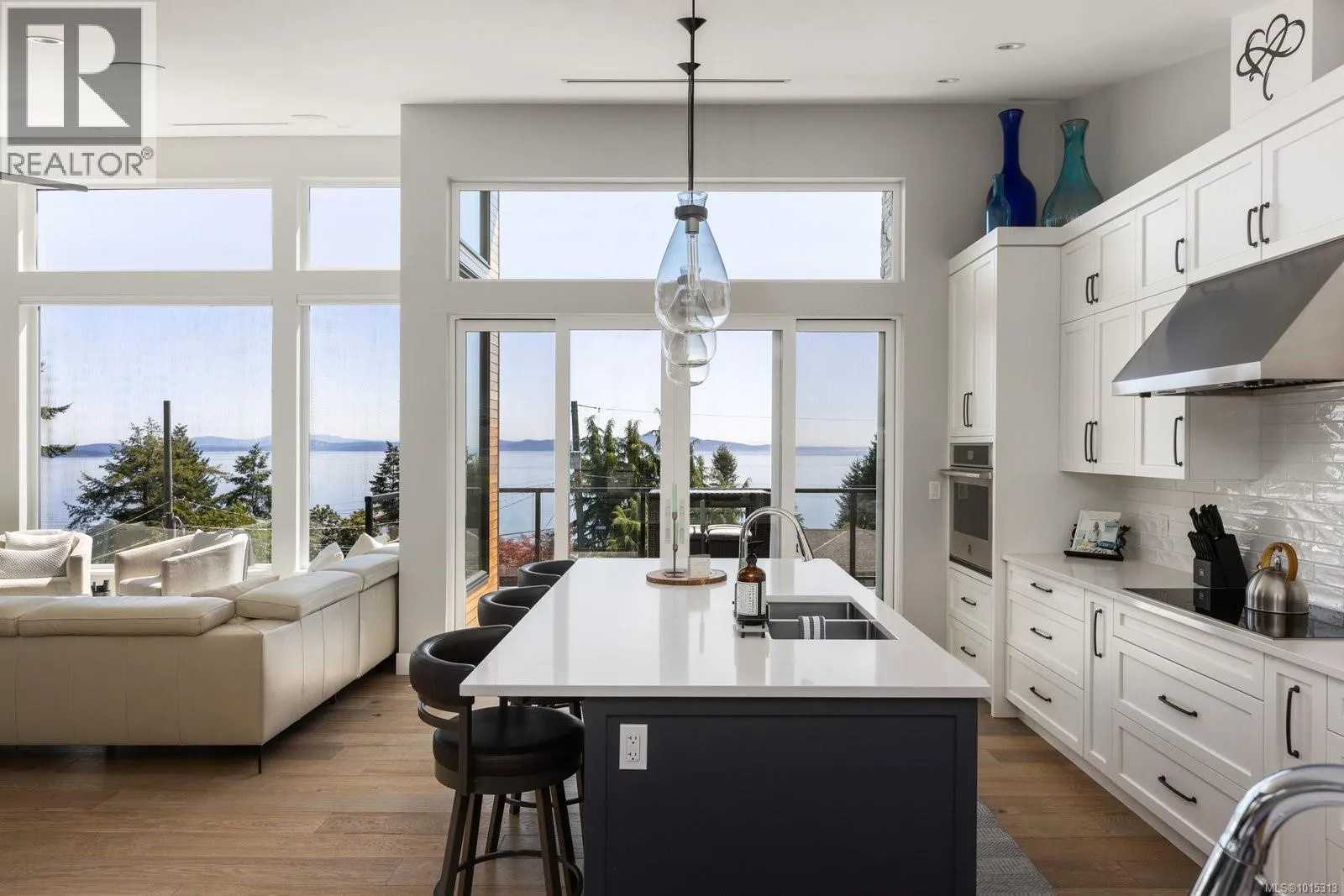 Discover refined coastal living in this expansive 3,700+ sq ft, three-level masterpiece with 4 bedrooms and breathtaking ocean and mountain views. A sweeping semi-circular driveway, bordered by sculpted rock-wall gardens, welcomes you home. Inside, grand windows and glass sliding doors bathe every living space in natural light and frame panoramic vistas from both front and rear decks. The cedar-covered back deck, complete with skylights, flows into a private, fenced, level yard with a serene walled garden. Relax in the infinity hot tub while gazing across the Salish Sea, North Shore peaks, and Mount Baker. A custom metal, wood, and glass staircase connects the levels, leading to elegant one-level living. The great roomâwith living, dining, and kitchenâshowcases dual islands, open flow and effortless indoor-outdoor access for entertaining. A bright corner office offers spectacular panoramic views. The master retreat is tucked away in privacy, featuring a spa-style ensuite with a soaker tub, oversized shower, heated tile floors, and power blindsâall insulated and sound-barred, with its own heat exchanger. A legal 1-bedroom suite with ocean views opens to a covered deckâalso insulated and sound-barred. Additional highlights include solar-ready and EV-ready infrastructure, landscape-lighting pre-wiring, rooftop plugs for holiday lights, and abundant storage. A large cement room off the garage is ideal for a gym, theatre, or games room. Just a short walk to Claremont High School, hiking trails, Mattickâs Farm, Cordova Golf Club, and Cordova Bay Beach. This home offers an ideal blend of privacy, luxury, and walkable convenience making it an extraordinary opportunityâone that defines West Coast living at its finest. (id:27476)