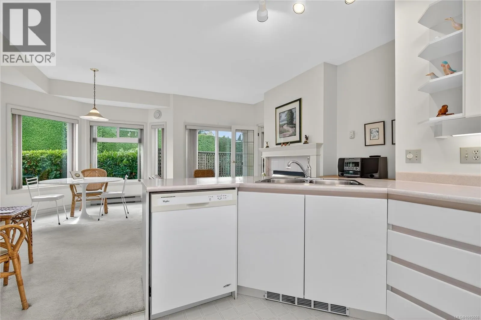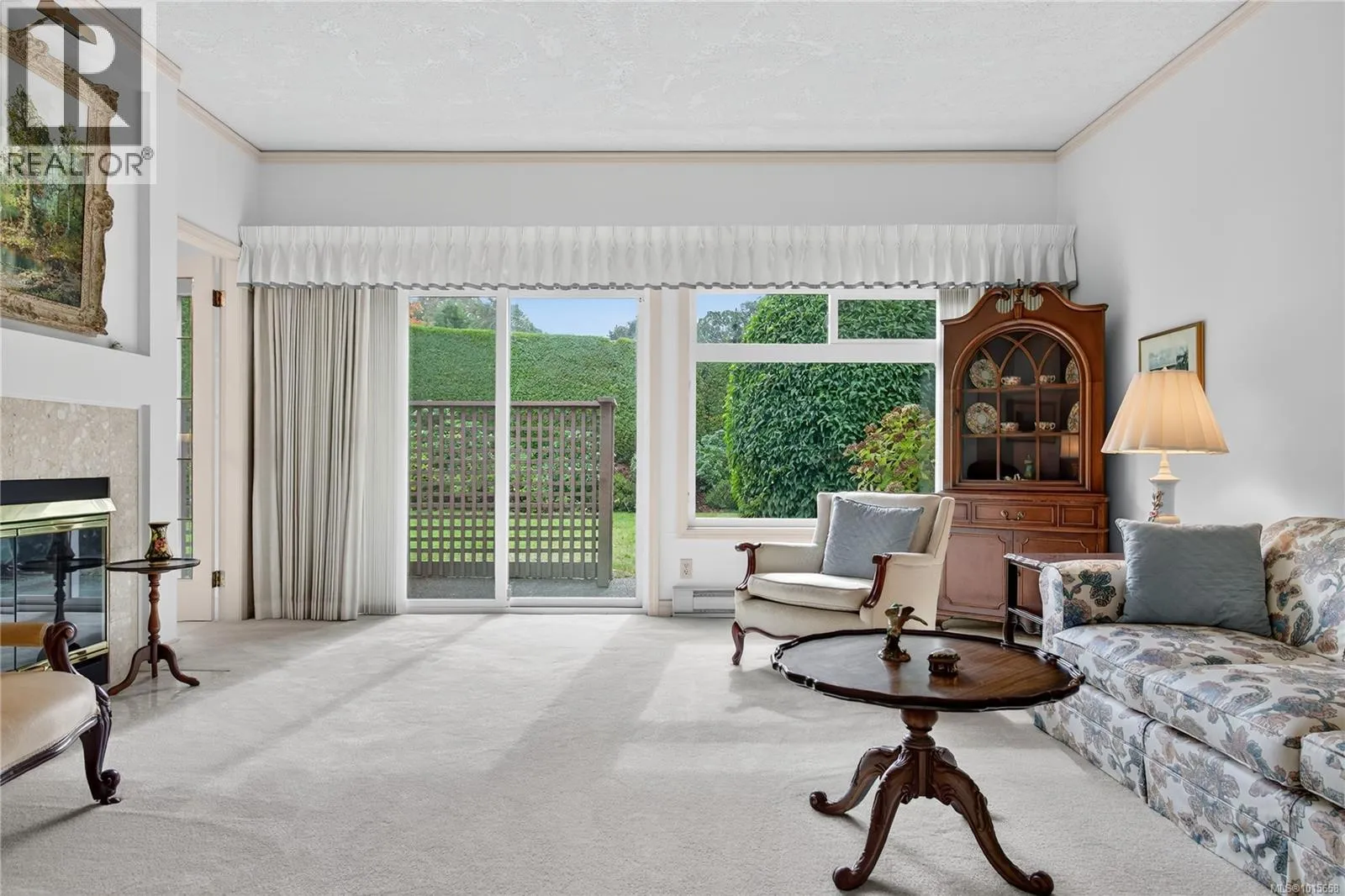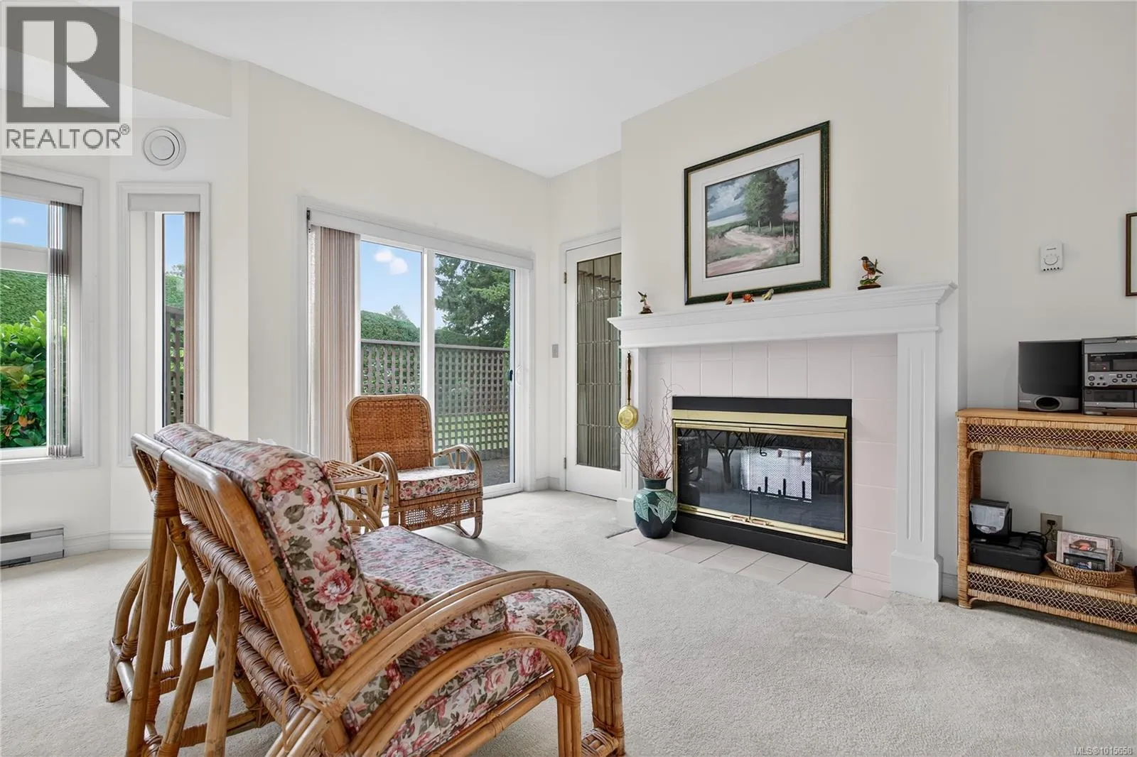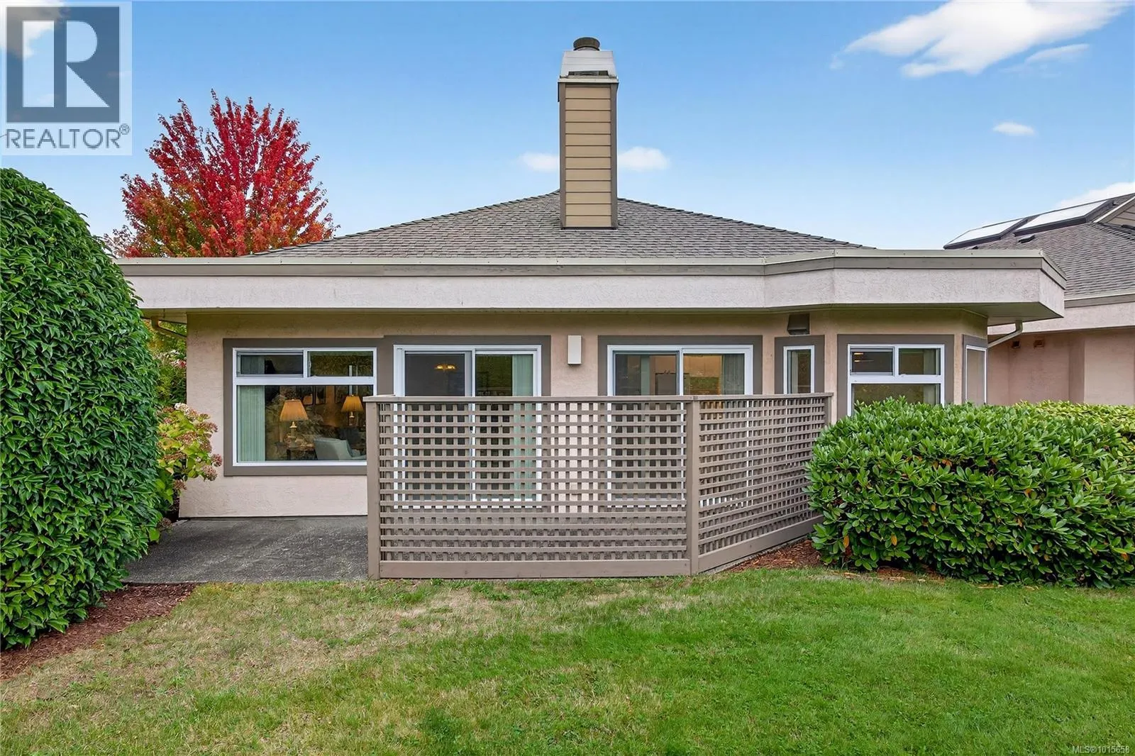 One-level rancher townhome located in the highly desirable Foxborough Hills complex in Broadmead. This upscale 55 plus community is known for its beautifully maintained gardens & outstanding amenities, including a recreation center with an indoor pool, hot tub, sauna, fitness room, library, games room, common kitchen, 2 guest suites for visiting family or friends. Residents also enjoy shared tennis/pickleball court. The complex borders the scenic trails of Rithet's Bog & is within walking distance to everyday amenities. This end-unit home features extra windows & just one shared wall, providing added natural light. Inside, you'll find two bedrooms, spacious formal living & dining area, bright kitchen that opens to a cozy family room with two-way fireplace & access to a south-facing patio surrounded by lush landscaping. The primary bedroom includes a generous 5-piece ensuite & a walk-in closet. Additional highlights include a full-size laundry room, double garage, crawlspace for extra storage & brand new windows & sliding glass doors in 2025. Come see why Foxborough Hills is the place to live. (id:27476)