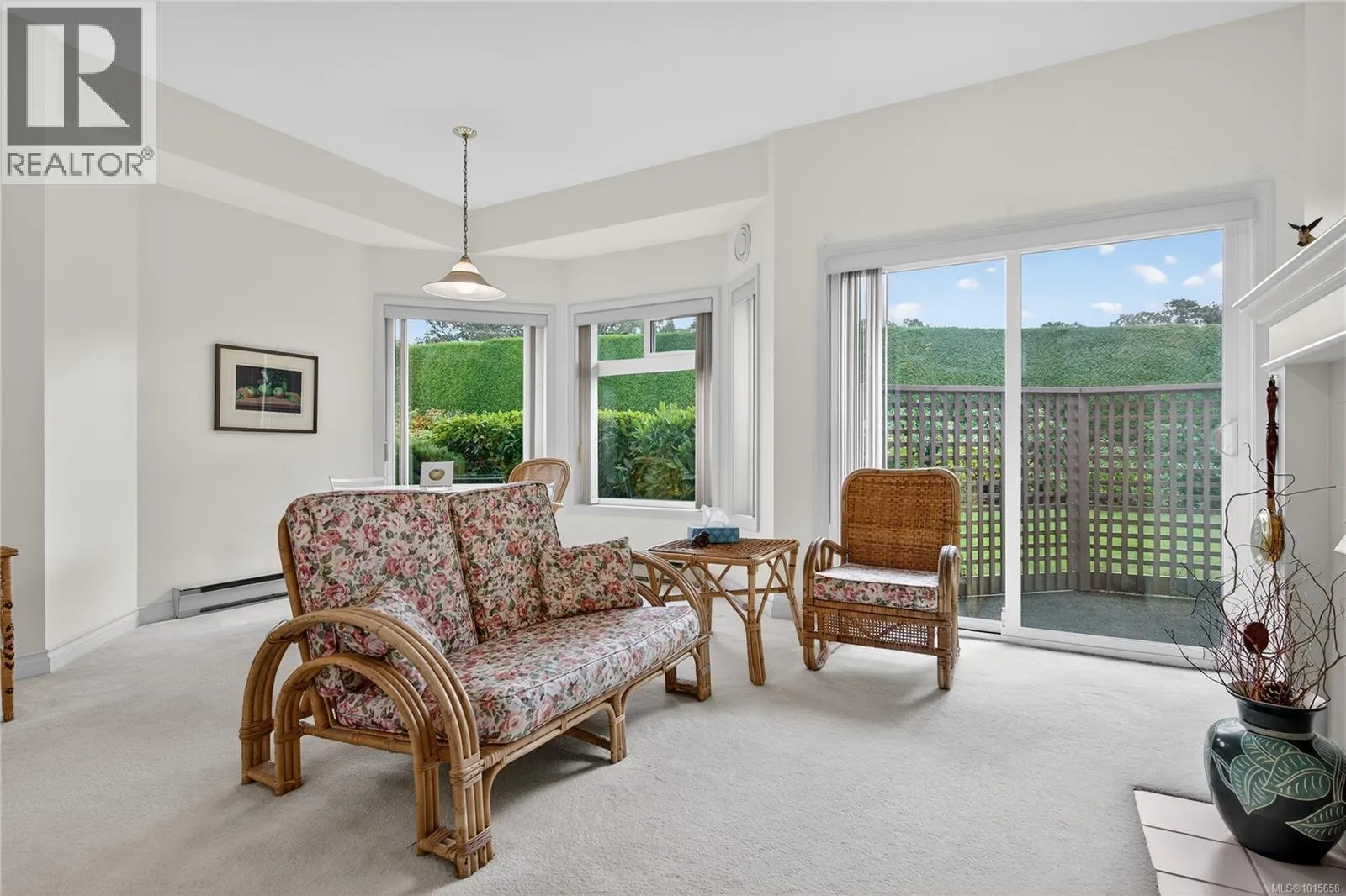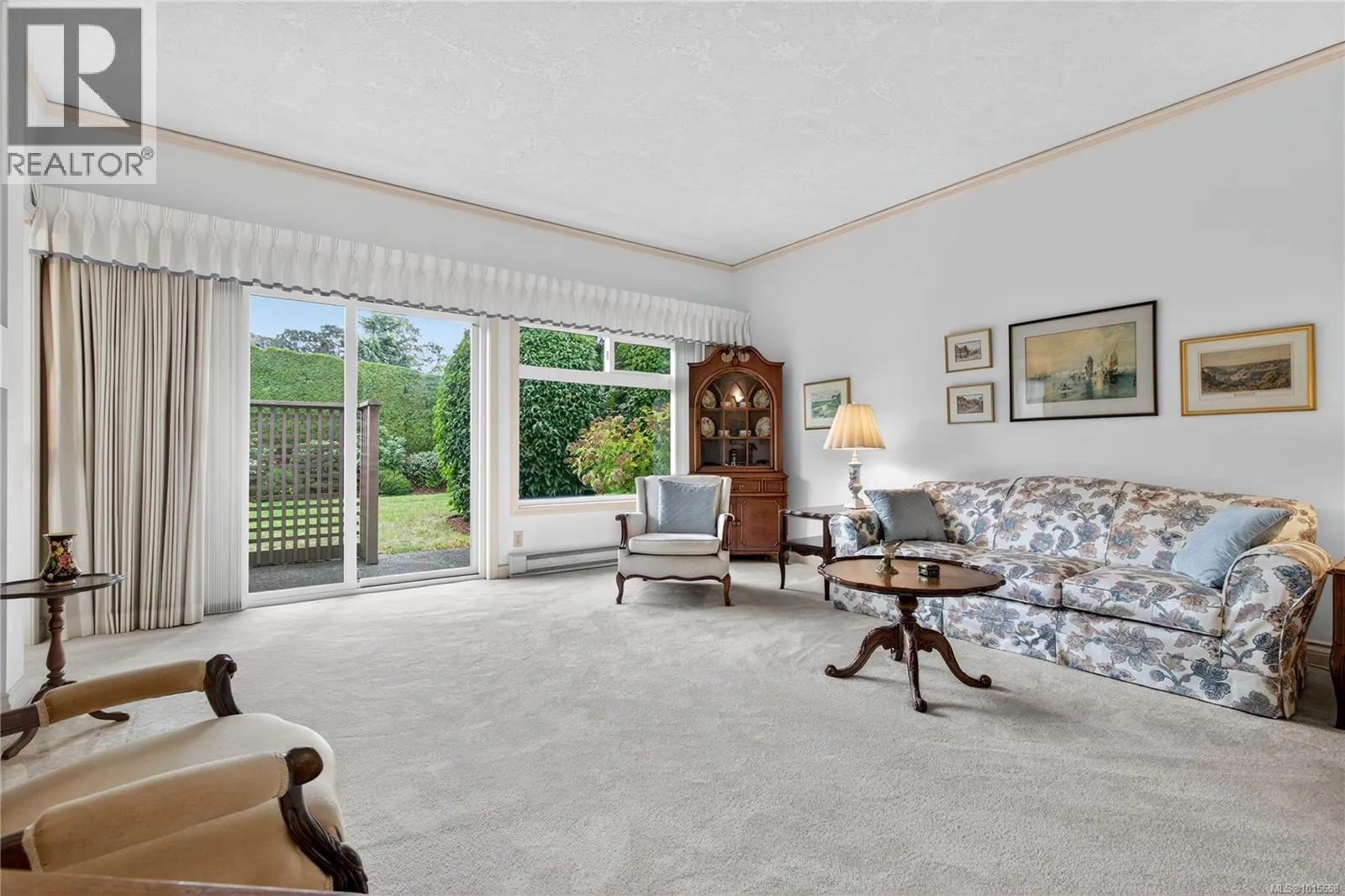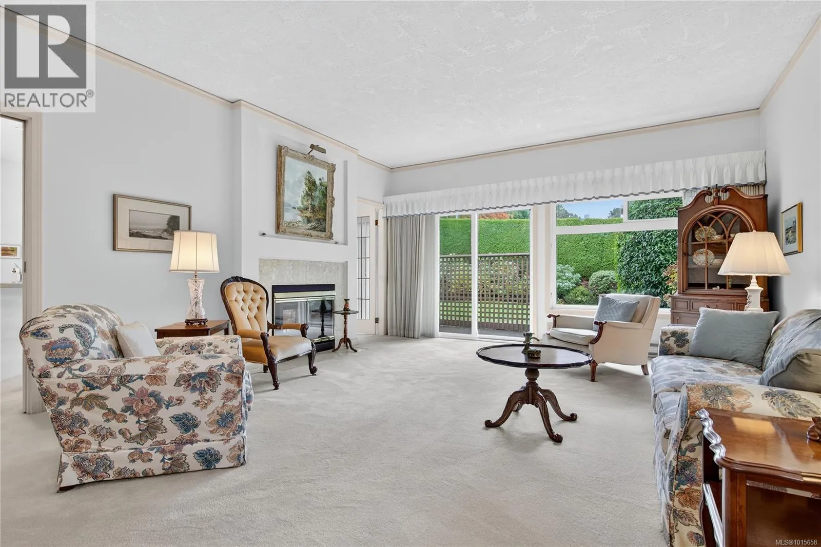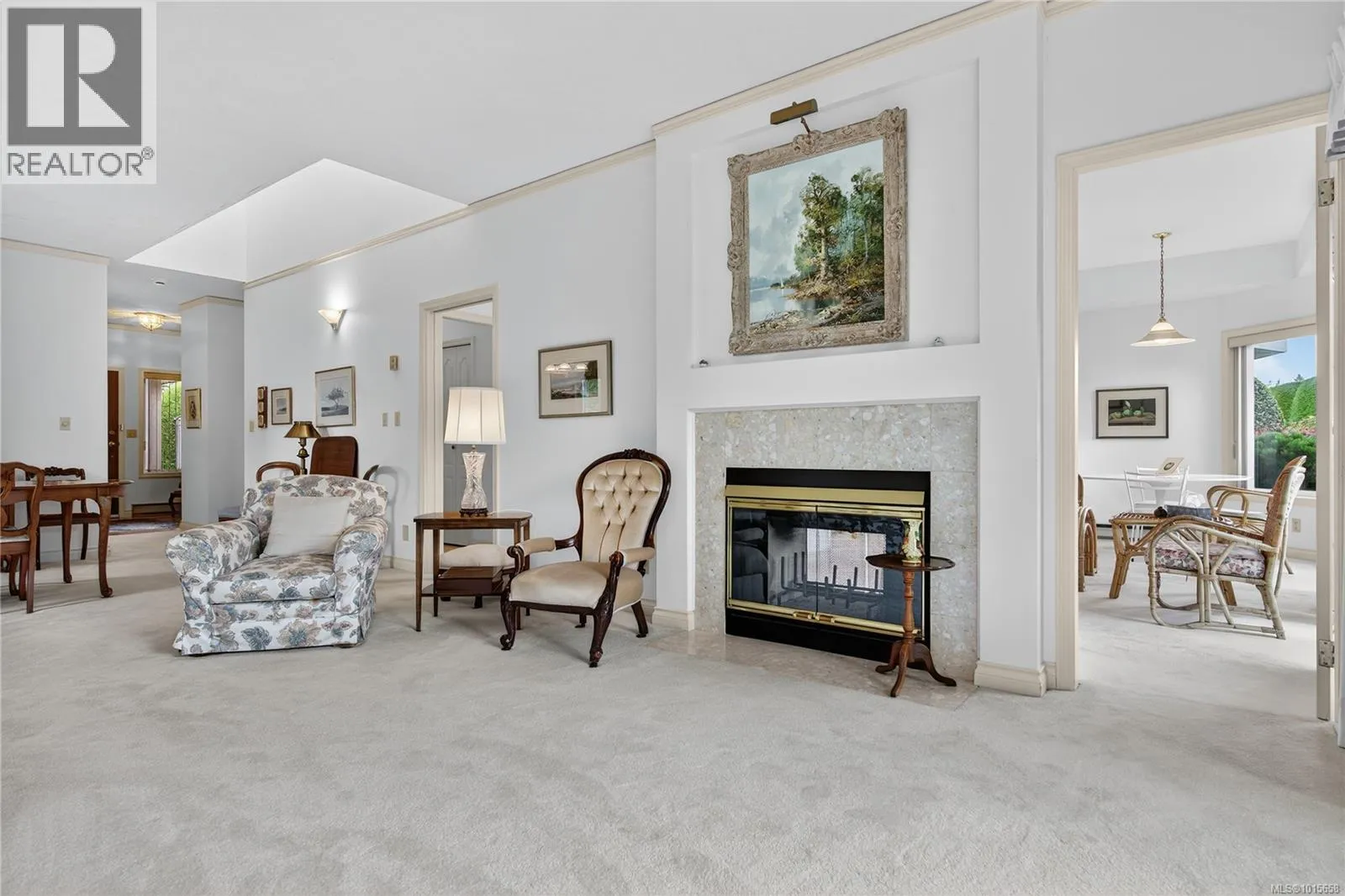 One-level rancher townhome located in the highly desirable Foxborough Hills complex in Broadmead. This upscale 55 plus community is known for its beautifully maintained gardens & outstanding amenities, including a recreation center with an indoor pool, hot tub, sauna, fitness room, library, games room, common kitchen, 2 guest suites for visiting family or friends. Residents also enjoy shared tennis/pickleball court. The complex borders the scenic trails of Rithet's Bog & is within walking distance to everyday amenities. This end-unit home features extra windows & just one shared wall, providing added natural light. Inside, you'll find two bedrooms, spacious formal living & dining area, bright kitchen that opens to a cozy family room with two-way fireplace & access to a south-facing patio surrounded by lush landscaping. The primary bedroom includes a generous 5-piece ensuite & a walk-in closet. Additional highlights include a full-size laundry room, double garage, crawlspace for extra storage & brand new windows & sliding glass doors in 2025. Come see why Foxborough Hills is the place to live. (id:27476)