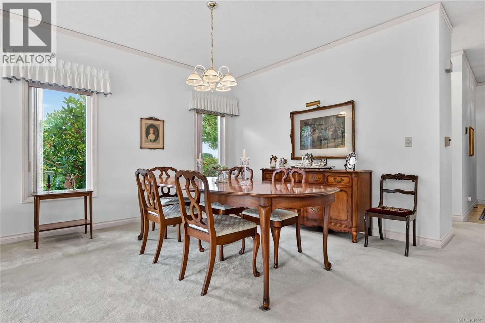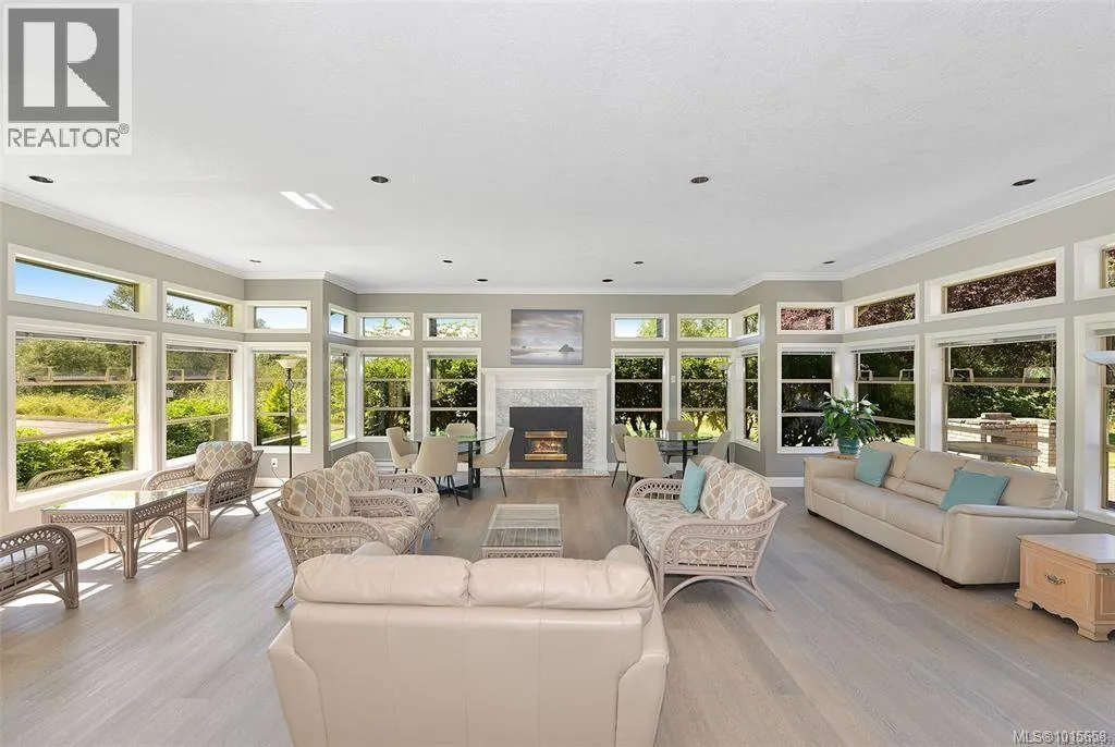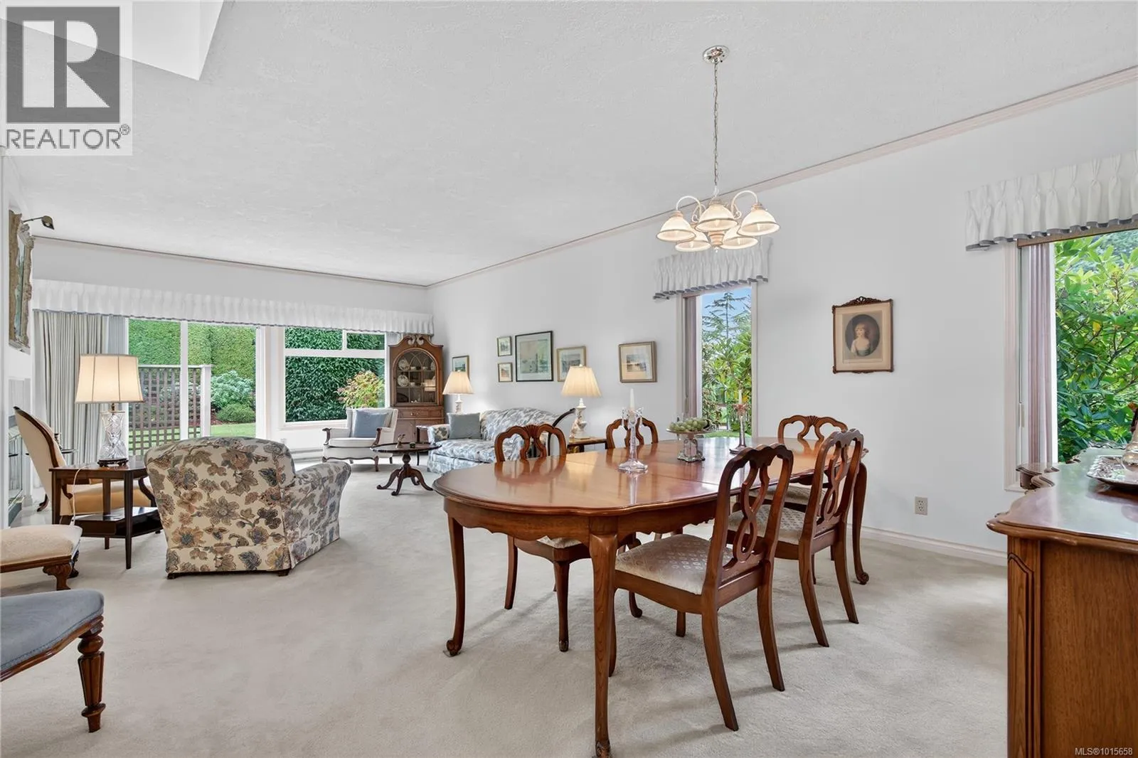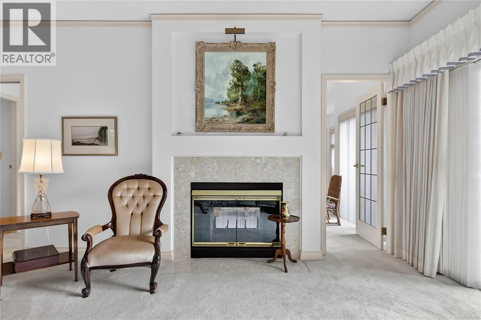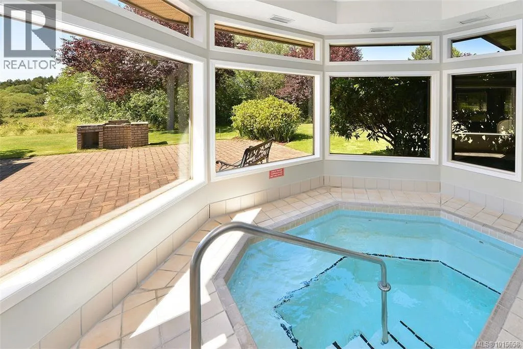 One-level rancher townhome located in the highly desirable Foxborough Hills complex in Broadmead. This upscale 55 plus community is known for its beautifully maintained gardens & outstanding amenities, including a recreation center with an indoor pool, hot tub, sauna, fitness room, library, games room, common kitchen, 2 guest suites for visiting family or friends. Residents also enjoy shared tennis/pickleball court. The complex borders the scenic trails of Rithet's Bog & is within walking distance to everyday amenities. This end-unit home features extra windows & just one shared wall, providing added natural light. Inside, you'll find two bedrooms, spacious formal living & dining area, bright kitchen that opens to a cozy family room with two-way fireplace & access to a south-facing patio surrounded by lush landscaping. The primary bedroom includes a generous 5-piece ensuite & a walk-in closet. Additional highlights include a full-size laundry room, double garage, crawlspace for extra storage & brand new windows & sliding glass doors in 2025. Come see why Foxborough Hills is the place to live. (id:27476)