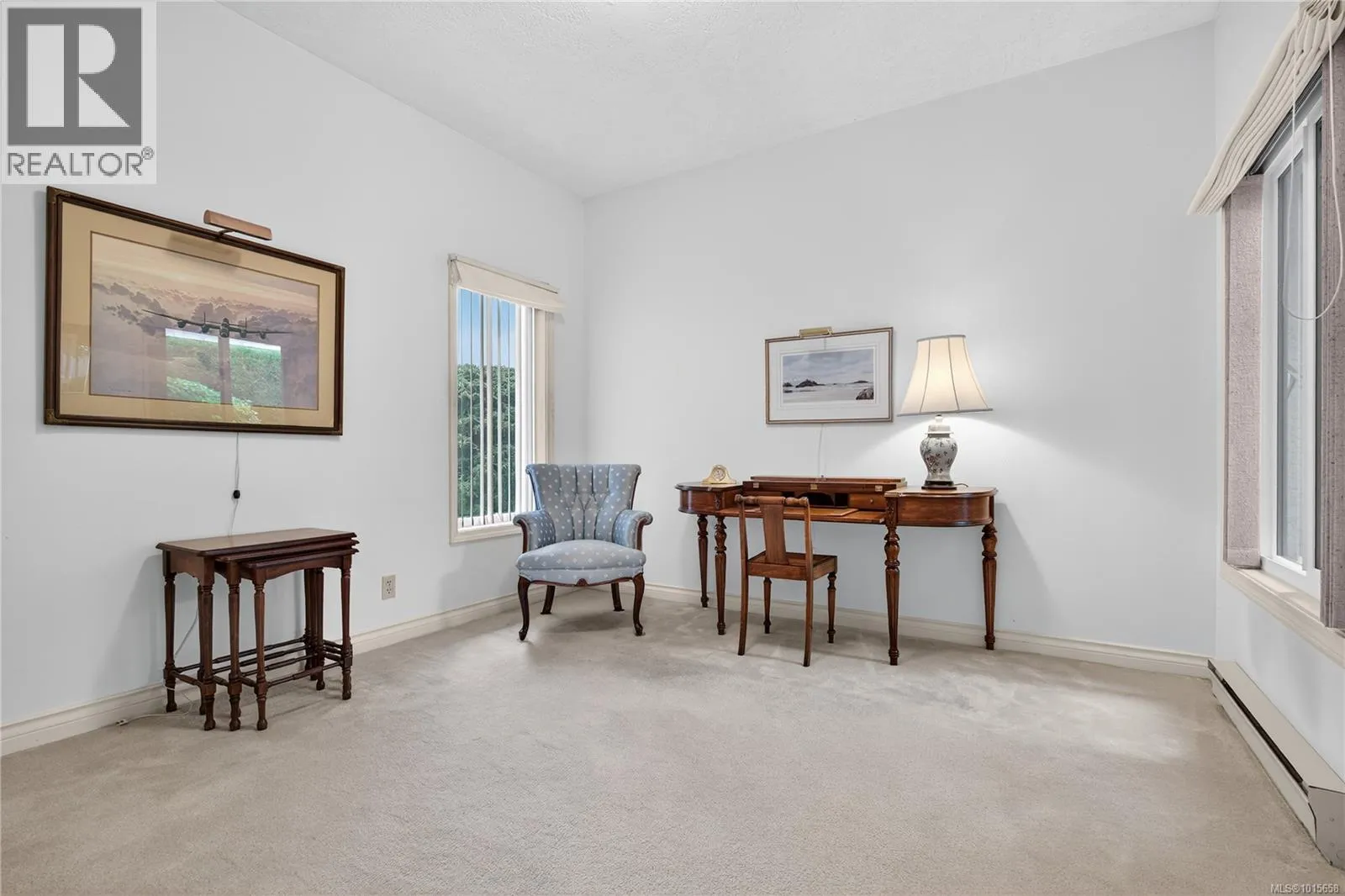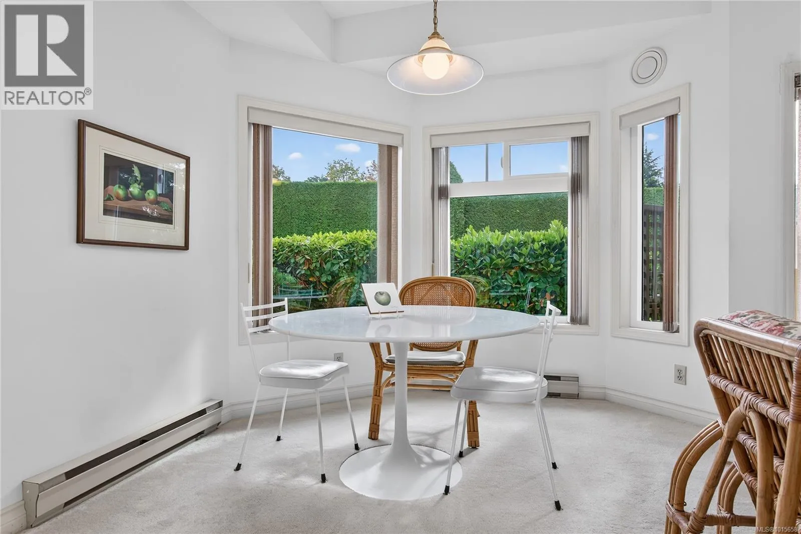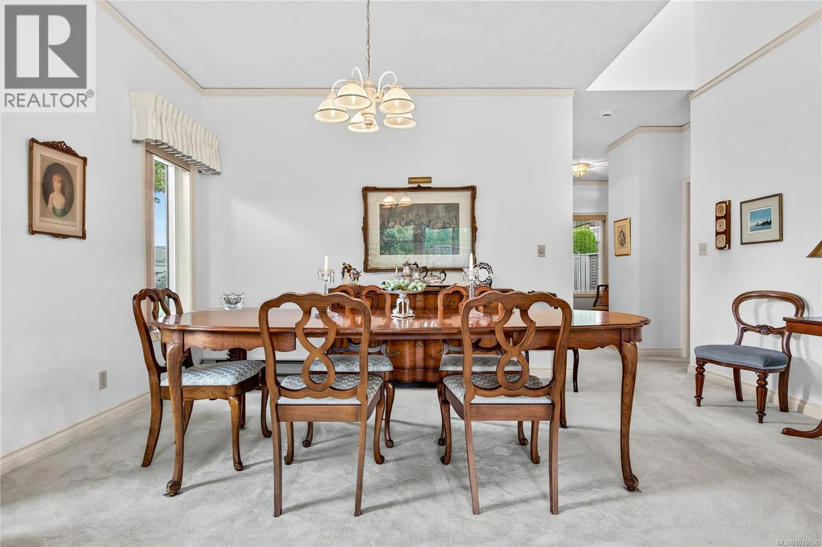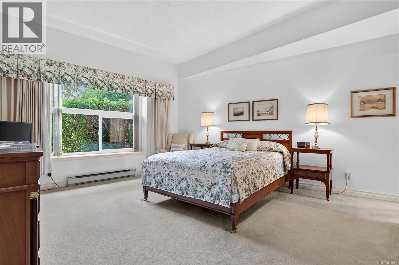 One-level rancher townhome located in the highly desirable Foxborough Hills complex in Broadmead. This upscale 55 plus community is known for its beautifully maintained gardens & outstanding amenities, including a recreation center with an indoor pool, hot tub, sauna, fitness room, library, games room, common kitchen, 2 guest suites for visiting family or friends. Residents also enjoy shared tennis/pickleball court. The complex borders the scenic trails of Rithet's Bog & is within walking distance to everyday amenities. This end-unit home features extra windows & just one shared wall, providing added natural light. Inside, you'll find two bedrooms, spacious formal living & dining area, bright kitchen that opens to a cozy family room with two-way fireplace & access to a south-facing patio surrounded by lush landscaping. The primary bedroom includes a generous 5-piece ensuite & a walk-in closet. Additional highlights include a full-size laundry room, double garage, crawlspace for extra storage & brand new windows & sliding glass doors in 2025. Come see why Foxborough Hills is the place to live. (id:27476)