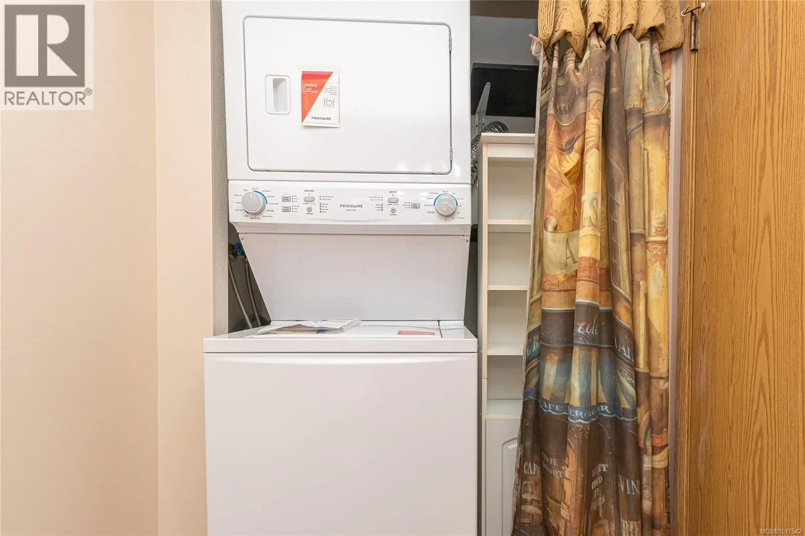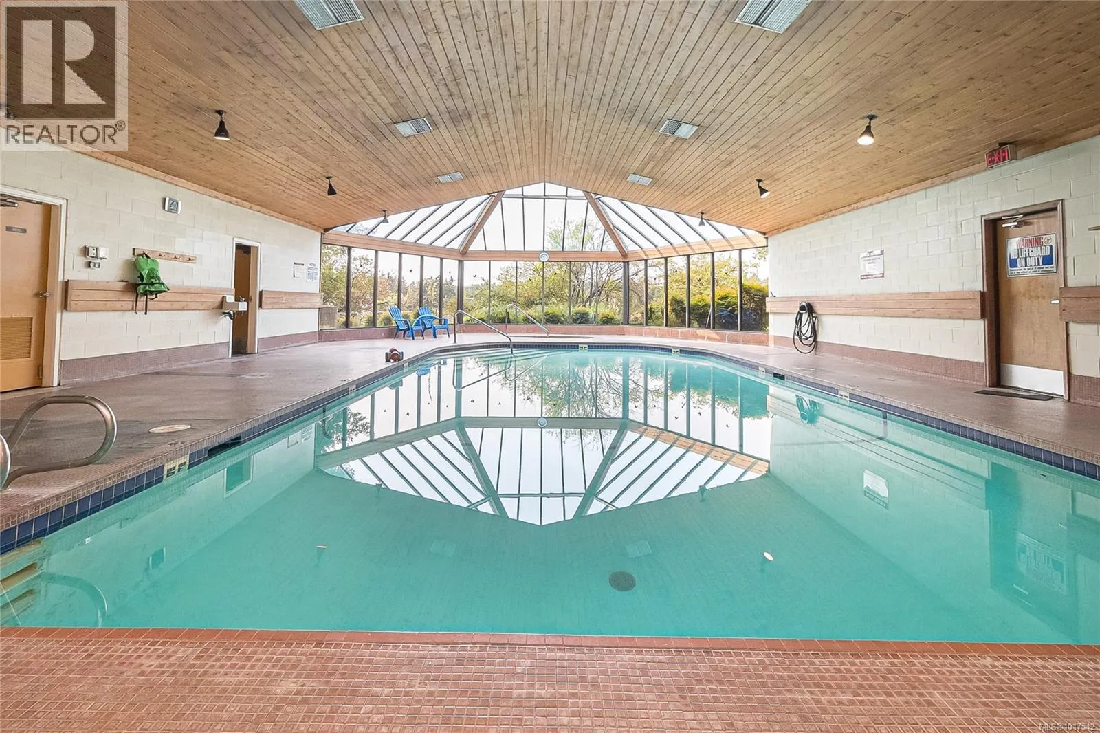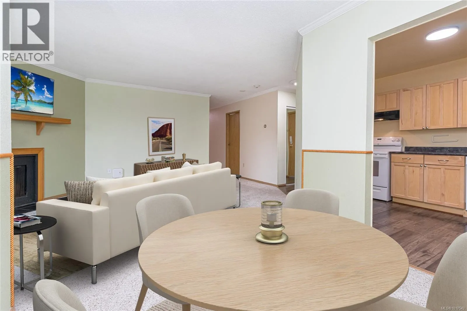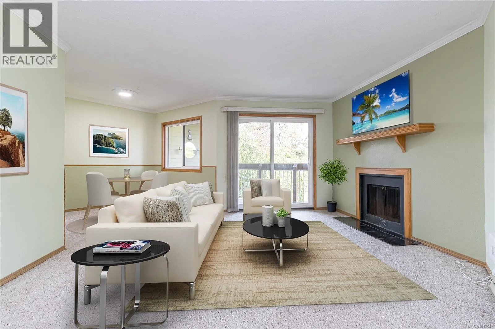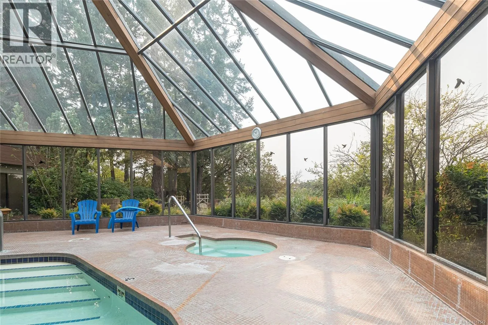 Hard to beat price! Top floor, spacious two bedroom, two bath condo just steps away from the Gorge Waterway. This 954 sq. ft. home offers maple cabinetry in an eat-in kitchen, separate dining room, wood burning fireplace in the living room, in-suite laundry, and tasteful cedar wainscotting features in the bedroom and walk-in closet. Seasonal water views from the balcony. This well managed complex (with on-site manager) offers many amenities: meeting room, swimming pool, hot tub, sauna and tennis courts so you can throw that costly gym membership away! (id:27476)